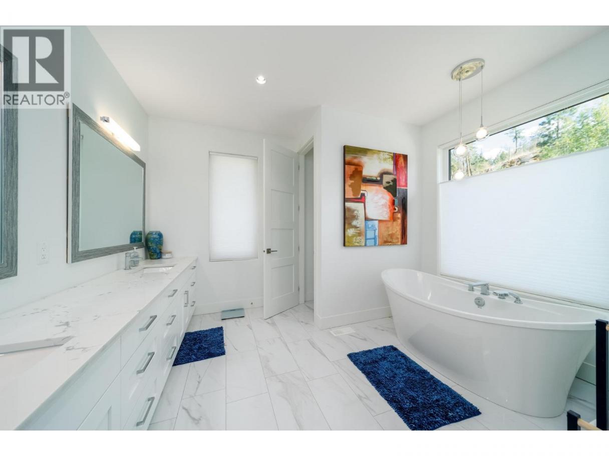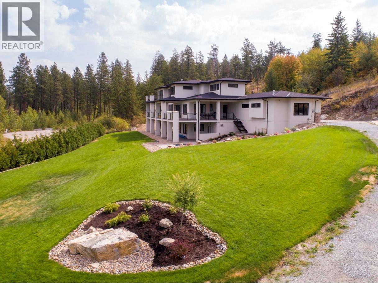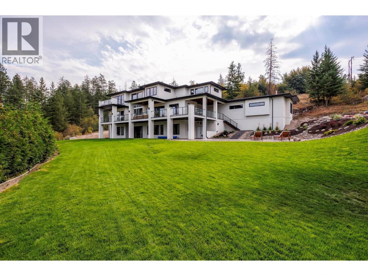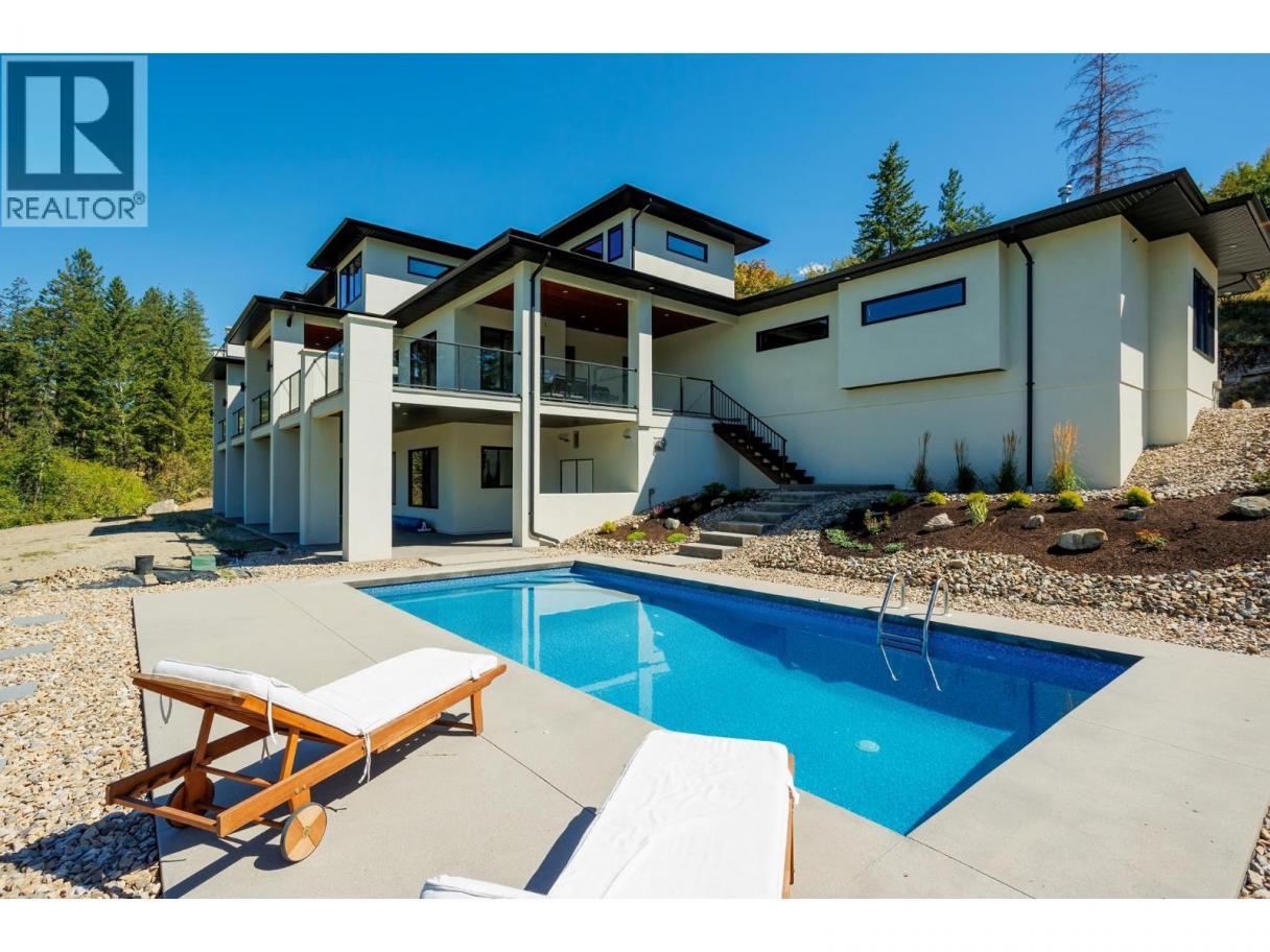 Welcome to 4451 Hayes Rd. – Modern Luxury Meets Okanagan Living! Set on 4.9 gated acres in one of Kelowna’s most prestigious enclaves, this~6,500 sq. ft. architectural estate captures panoramic views of the lake, city, and mountains. Inside, 24’ ceilings, dramatic floating stairs, and walls of glass create light-filled living. With 7 bedrooms and 5 bathrooms, the home blends everyday luxury with space for grand entertaining.*Gourmet Living A chef-inspired kitchen with quartz counters, butler’s pantry, and hardwood floors flows seamlessly to a 1,300 sq. ft. deck—ideal for al fresco dining. The flexible lower level is roughed-in for a second kitchen, perfect for extended family or a private suite. *Smart &Sustainable Highlights include a 4-car garage with EV charging, dual furnaces, 3 HVAC zones, 2 A/C units, Sonos sound, whole-home data, air &water filtration, hot water recirculating pump, upgraded insulation, and a 32-panel solar farm for true net-zero living. *Resort Lifestyle Enjoy a16x32 heated pool with auto cover, multiple outdoor lounges, and irrigated, low-maintenance landscaping. With carriage house zoning, this estate offers future opportunities for family, guests, or investment. *Built in 2019 by Custom Choice Builders, 4451 Hayes Rd. delivers the ultimate blend of modern design, sustainability, and luxury—just 10 minutes to downtown Kelowna. (id:6769)