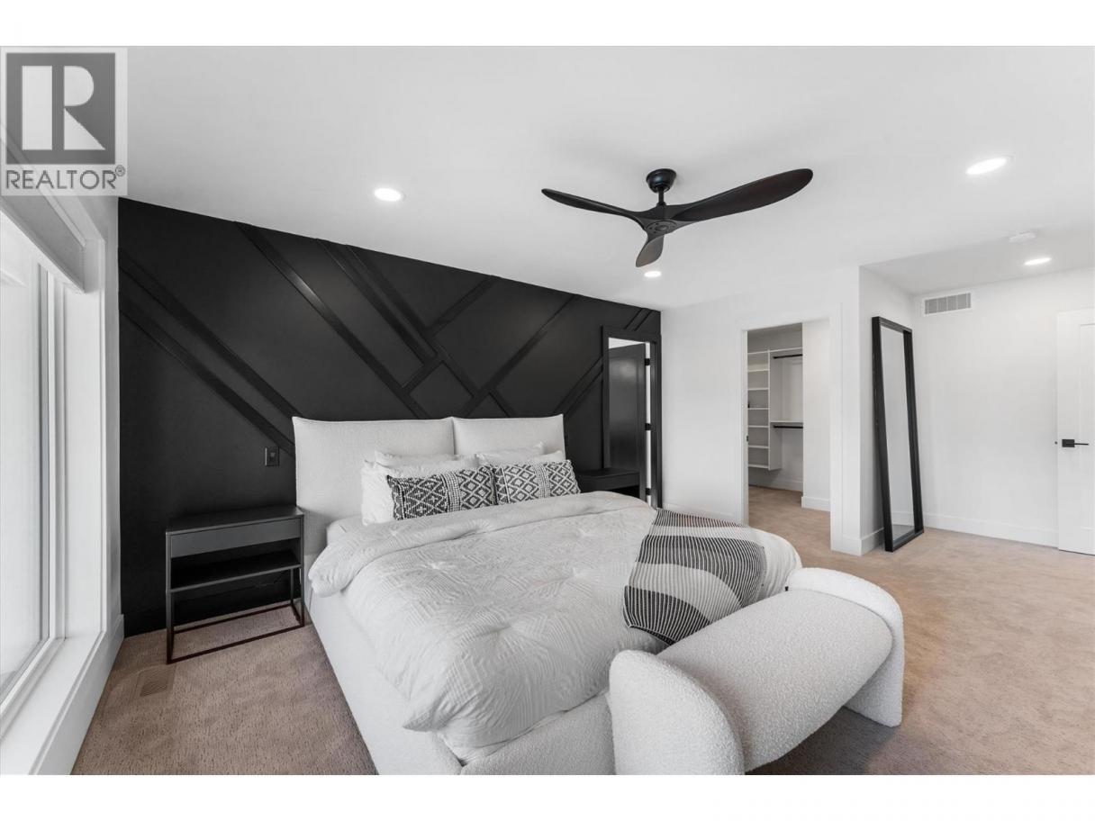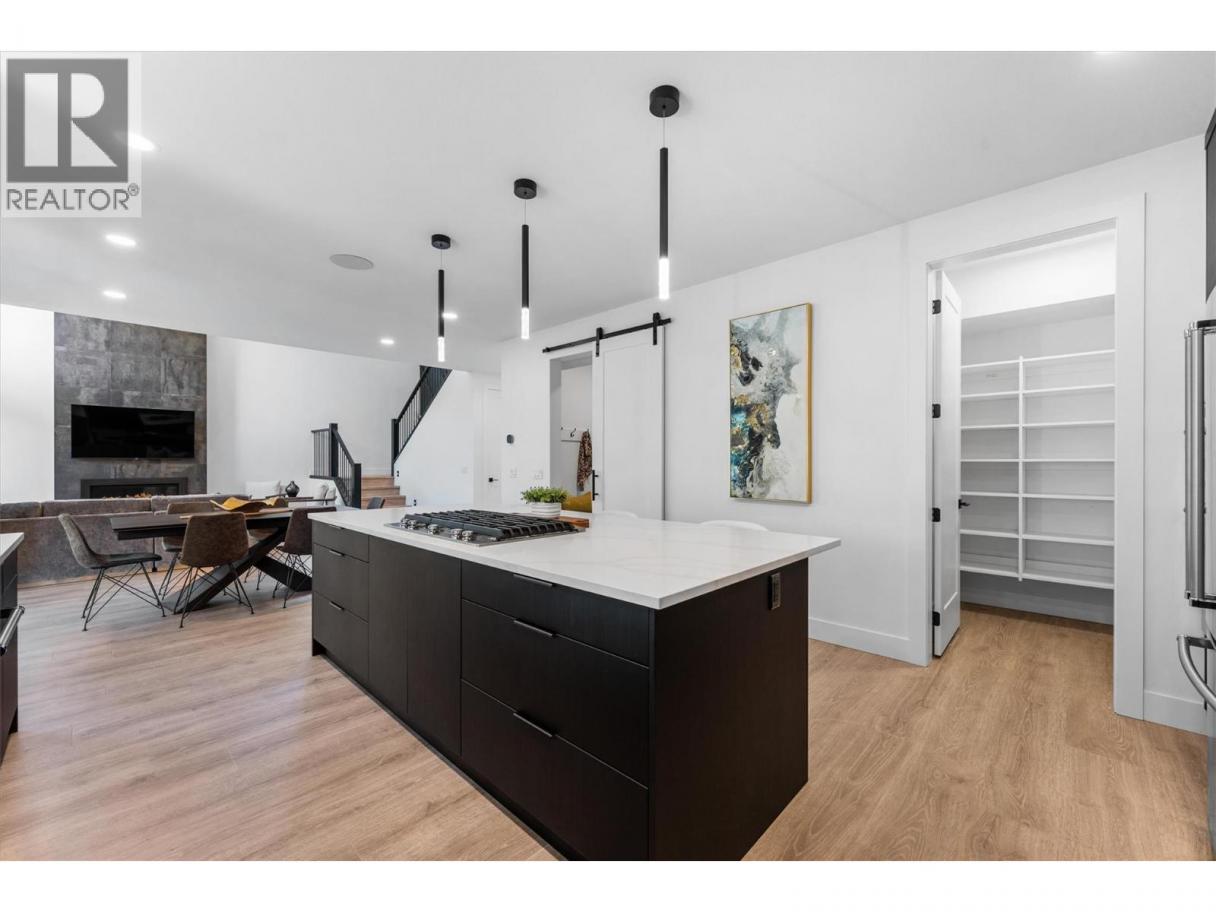 Gorgeous home in Vineyard Estates. This stunning custom home was built by Alder Projects, set in the sought-after Vineyard Estates neighborhood. This property is a perfect blend of luxury and functionality, offering 5 bedrooms, 5 bathrooms, including a legal 1-bedroom, 1-bath suite. Soaring 18' ceilings create a bright and open space while the floor-to-ceiling fireplace is a beautiful focal point in the room. The gourmet kitchen is a chef’s kitchen with an entertainment-sized island quartz island and a 5-burner gas stove, walk-in pantry, custom Westwood Fine Cabinetry and professional stainless-steel KitchenAid appliances. A stylish office, powder room, and mudroom complete the main level. Upstairs, the primary suite is a relaxing private retreat with a spa-inspired ensuite, heated floors, and a covered balcony. Two additional bedrooms, a bath, and a laundry room are on this level. Perfect for a growing family. The lower floor is ideal for entertaining and spending time with the family & friends . It features a large rec room with a gas fireplace, a fourth, full bath, and a 400+ sqft flex room ideal for a gym or home theatre. The 1-bedroom legal suite is thoughtfully designed with a private entrance, Whirlpool appliances, and separate yard space, ideal for income, in-laws, or guests. Enjoy breathtaking views of Boucherie Mountain and serene parkland from the oversized covered patio. Close to hiking trails, wine trail, golf courses, shopping and Okanagan Lake. No GST! (id:6769)