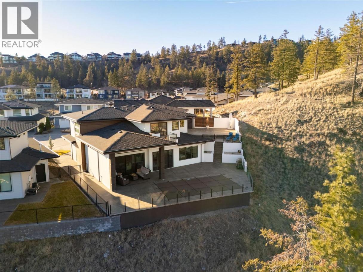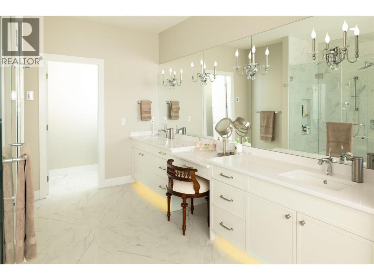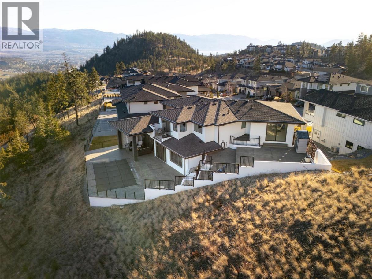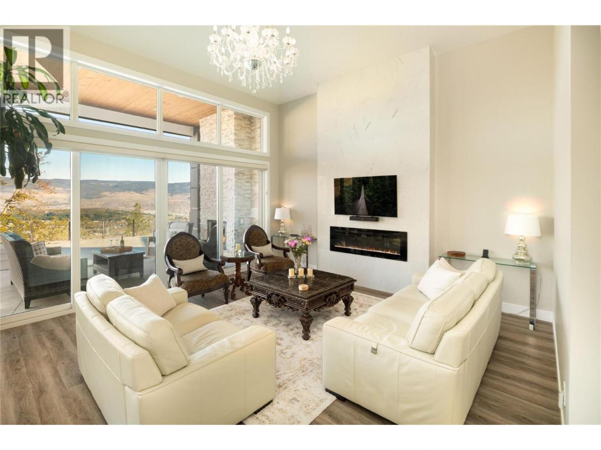 Designed with both elegance and livability in mind, this immaculate residence offers a versatile floor plan, refined finishes, and nearly 4,000 sq.ft. of beautifully curated living space. Throughout the main level, soaring 10-foot ceilings and expansive windows create an airy, light-filled atmosphere that highlights the home’s modern design and exceptional attention to detail. At the centre of the home, the kitchen is designed to gather people. Two-tone cabinetry is paired with a striking quartz island and a premium JennAir appliance package, while a dedicated butler’s pantry adds both function and additional prep space. The kitchen flows effortlessly into the spacious dining area and living room, where a dramatic floor-to-ceiling fireplace anchors the space and large windows frame soft peekaboo lake views. Custom lighting throughout the home includes real crystal chandeliers that capture the morning sun and create a beautiful spectrum of light across the interior, while electronic blinds offer both convenience and privacy. The thoughtful floor plan places the primary suite privately on the upper level, complete with its own balcony and a spa-inspired ensuite featuring heated flooring, a freestanding soaker tub, undermount cabinet lighting, and a generous walk-in closet. Three additional bedrooms provide excellent flexibility for family or guests, complemented by a spacious recreation room with wet bar — ideal for movie nights, games, or casual entertaining. Outdoor living is equally impressive. The backyard has been designed as a private retreat, featuring a saltwater pool, outdoor fireplace, and multiple seating and entertaining areas. The space is also roughed in for a future hot tub should one wish to further enhance the setting. Impeccably maintained and finished with a long list of upgrades, this home offers a rare combination of modern sophistication, privacy, and effortless indoor-outdoor living. (id:6769)