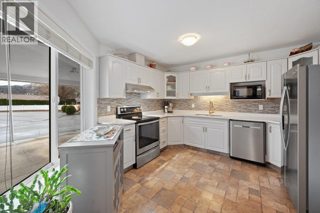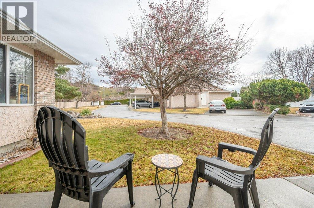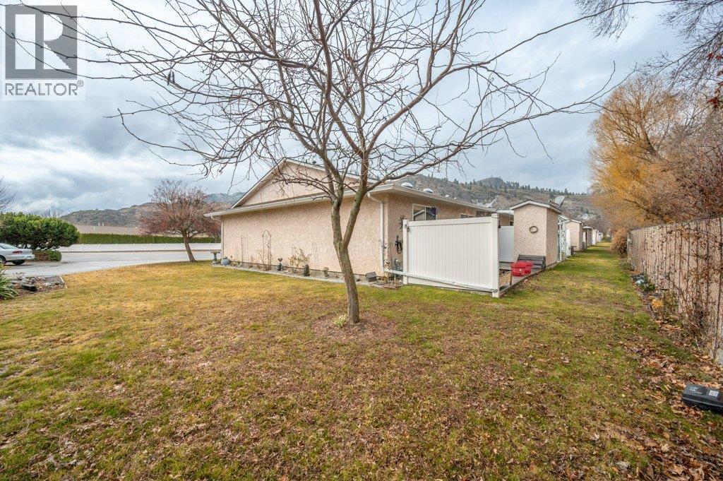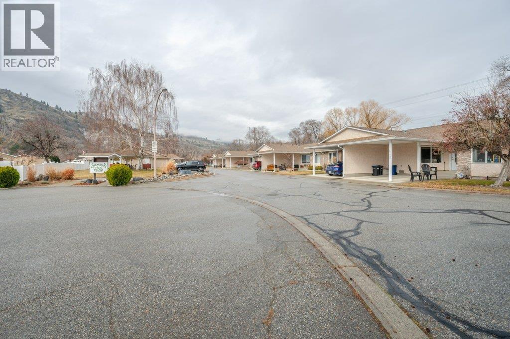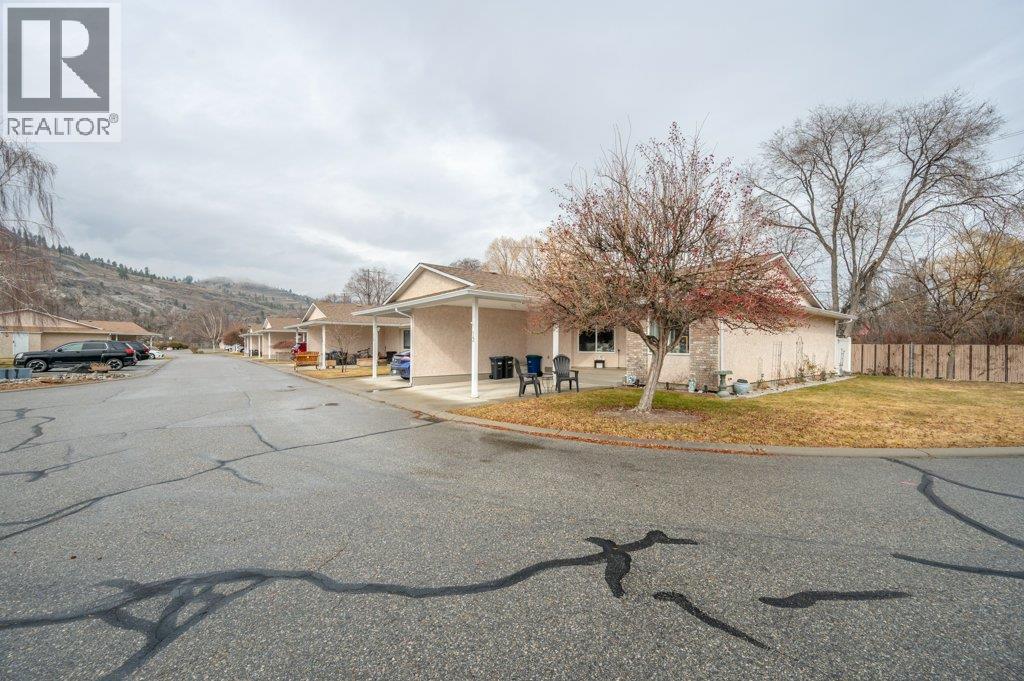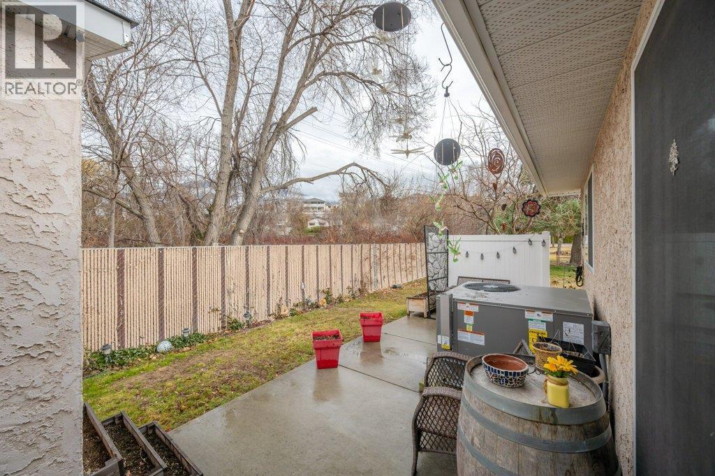 Welcome to Greenleaves, a well-maintained townhome community tucked away on a quiet no-through road in a fantastic location near the Okanagan River. Enjoy easy access to the nearby hike & bike trail, perfect for walking, cycling or simply taking in the natural beauty. This end-unit, one-level townhome offers 2 beds & 2 baths plus a generous 5-ft crawl space spanning the entire home for exceptional storage. The kitchen has been tastefully refreshed with quartz countertops, professionally painted cabinetry, updated hardware & stainless steel appliances. Bright & inviting, the open living & dining area features updated laminate flooring & an extra-large solar tube that fills the space with natural light. Spacious primary bedroom includes a walk-in closet & 2-piece ensuite, while the main bathroom is brightened by a skylight. Additional updates include plumbing, new heat pump (2026) and hot water tank (2025). Step outside to your private patio overlooking green space, with an extended concrete area ideal for seating, flowers or garden containers, plus a storage shed. Lovely rose bushes adorn the front & outer exterior wall. Enjoy extra green space out front with a corner location. Covered parking is out your front door, with additional guest parking & RV parking available in the complex. NO AGE RESTRICTIONS, up to 2 pets permitted. Strata fees of $363/month include maintenance & landscaping. A wonderful opportunity for easy, low-maintenance living in a peaceful Oliver community. (id:6769)