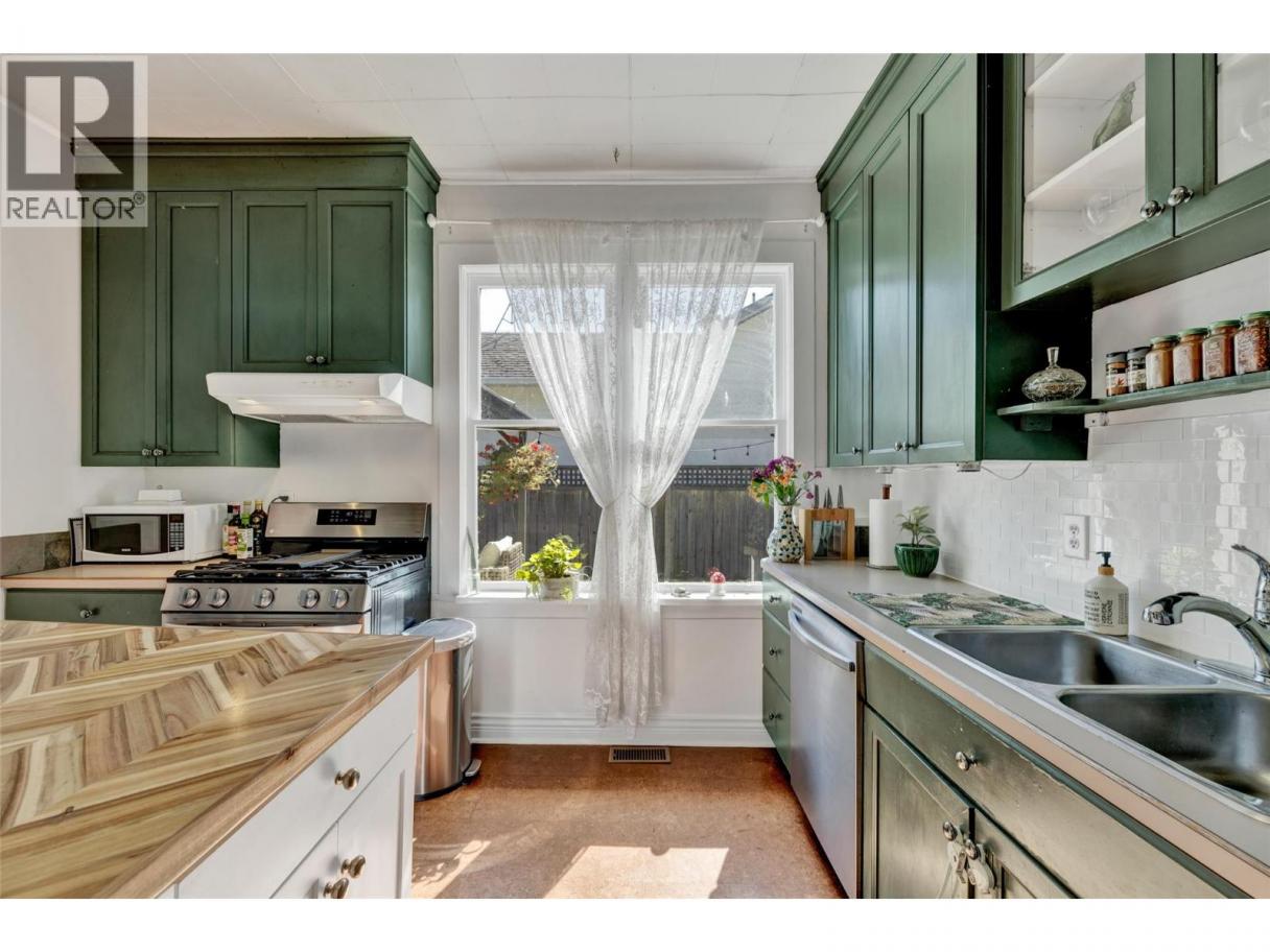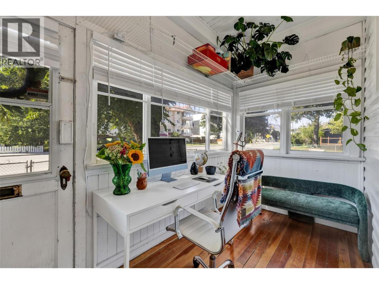 NEW ASHPHALT IN PARKING AREA ! This home has loads of Charm. Fantastic location downtown Kelowna. Why buy a condo ? you can own a great investment property with lots of parking. Incredible starter home with recent roofing upgrades. Very bright with lots of windows, separate front porch ( office ) area. Open kitchen with cork flooring and tastefully upgraded - ready to move in. Home has 2 bedrooms and attic space or den area. The single garage could also work as a shop. 5 appliances come with the home. Owner occupied for past 10 years. Owner has been approached by developers in the past. This home is in a major development area and is earmarked in OCP for multifamily zone. Richter street has a number of apartment building developed across the street. Great investment opportunity. (id:6769)