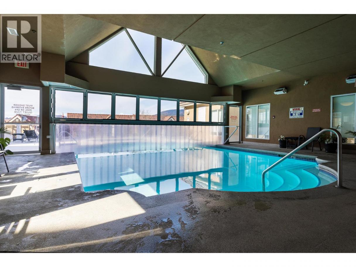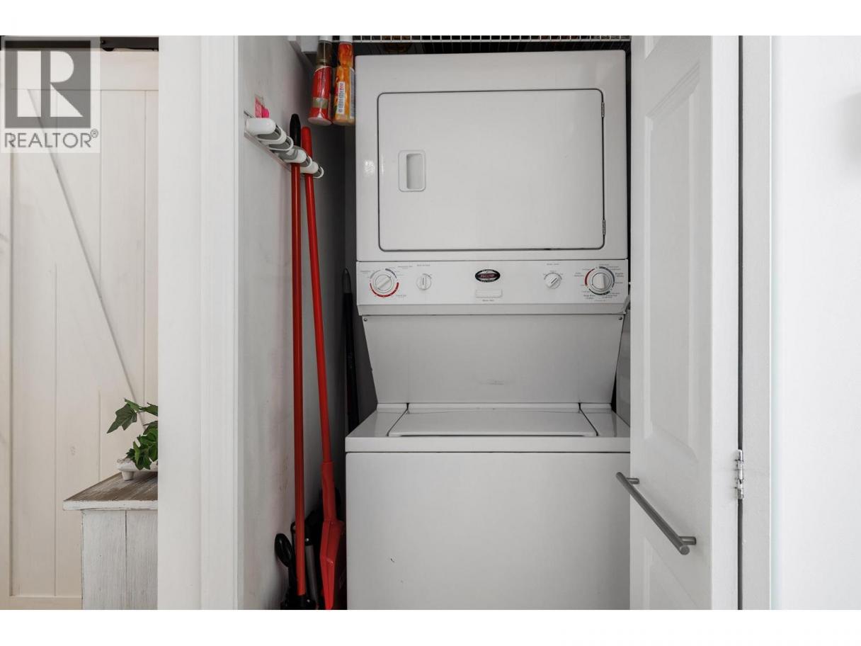 Welcome to Discovery Bay, a resort-style community in the heart of Kelowna, just steps from the waterfront. This bright top-floor 1-bedroom residence features vaulted ceilings, abundant natural light. Fully renovated and offered turn-key furnished, the home showcases timeless décor, hardwood flooring, a cozy gas fireplace, built-in speakers, and custom storage cabinetry. The well-equipped kitchen includes high-quality appliances, dishes, glassware, and new pots and pans—perfect for everyday living or continued Airbnb use, pending approval. The bedroom offers a walk-in closet with built-in storage, while Hunter Douglas window coverings and antique shutters add style and function. A barn door leads to the updated bathroom with vanity and walk-in shower. Additional highlights include in-suite laundry, central heating and cooling, underground parking, elevator access, and a private deck. Enjoy outstanding amenities including indoor/outdoor pool, hot tub, fitness centre, and expansive communal sun deck with BBQs. Pets allowed with size restrictions. A fantastic downtown opportunity! (id:6769)