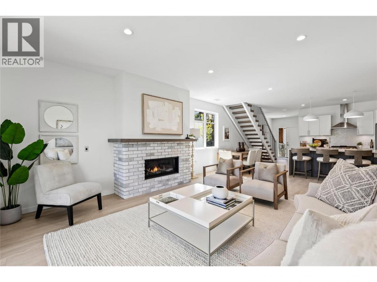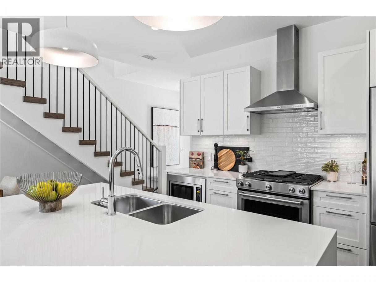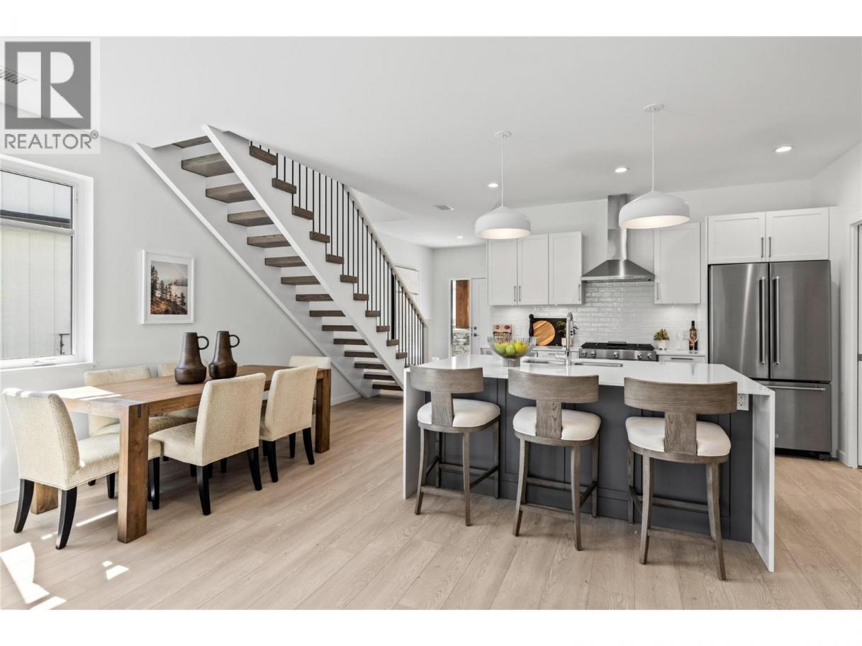 Priced to Sell. Move In Now. Last remaining homes starting from $799,900. This is your best opportunity to Live Where You Play. Located along the 18th hole at the Quail Golf Course, these award-winning townhomes ensure you can live the Kelowna lifestyle, with golf at your doorstep. Quiet but convenient location near YLW, UBC-Okanagan and the growing University/Airport district shopping/dining area. Approx.1,950 sq ft, featuring your primary bedroom on the main floor, with two additional bedrooms and a den/flex area upstairs. Designer details including the open tread wood staircase, German-made laminate flooring on the main floor, LED lights and an open floorplan. The kitchen includes KitchenAid appliances, 5-burner gas stove, quartz countertops, waterfall island with storage on both sides, and shaker cabinetry with under cabinet lighting. Your living extends outside to your covered patio with natural gas bbq hook up and Lake Views. Plus, take advantage of BUYING NEW with PTT Exemption of approx $13,998 (conditions apply). Virtual tour may be of a similar home in the community. Showings by appointment. Move In Now. (id:6769)