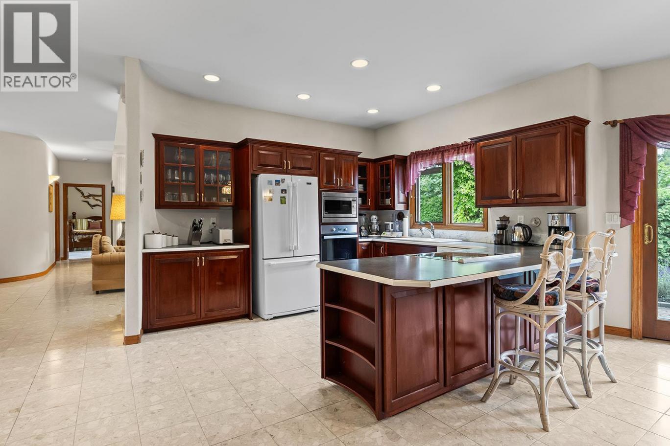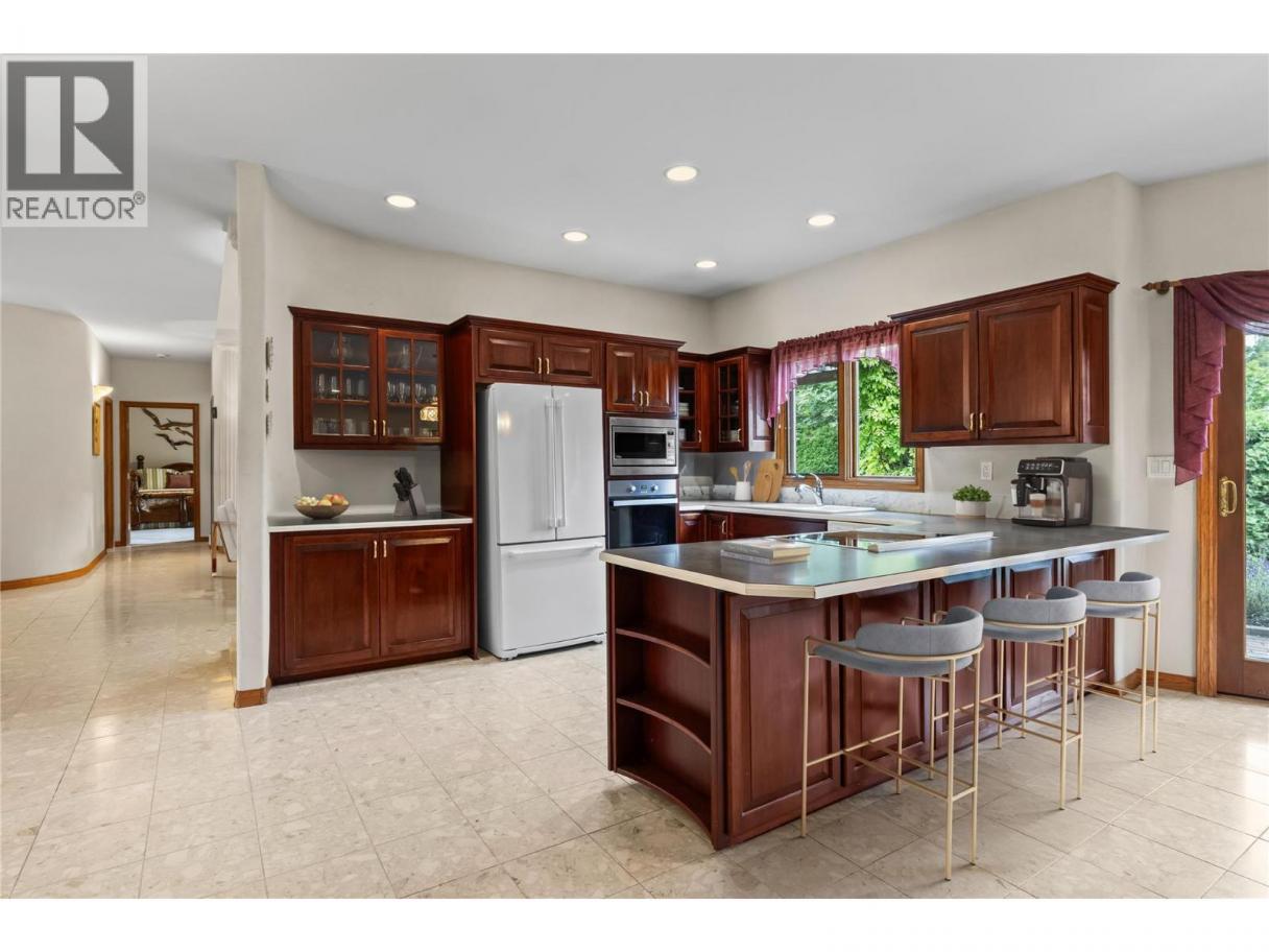 Set in the heart of Kelowna’s sought after Lower Mission, 463 Carona Crescent presents an elegant and beautifully maintained 3 bedroom home offering single level living across approximately 2,472 sq ft. Vaulted ceilings and expansive windows fill the formal living room with natural light, complemented by a gas fireplace and direct patio access for effortless indoor outdoor flow. A dedicated dining room creates the ideal backdrop for hosting. The kitchen showcases rich cherry wood cabinetry, a Miele wall oven, and a 3 year old induction cooktop, opening to a bright dining and family area with a second gas fireplace, breakfast nook, and patio access. The private primary bedroom features an ensuite with both tub and shower. Two additional bedrooms, one with its own ensuite, provide flexibility for guests, hobbies, or office space. Marble and carpet flooring, a tile roof, double car garage, and a spacious backyard designed for quiet enjoyment complete this timeless residence, just minutes to top rated schools, beaches, shopping, and everyday amenities in one of Kelowna’s most desirable neighbourhoods. (id:6769)