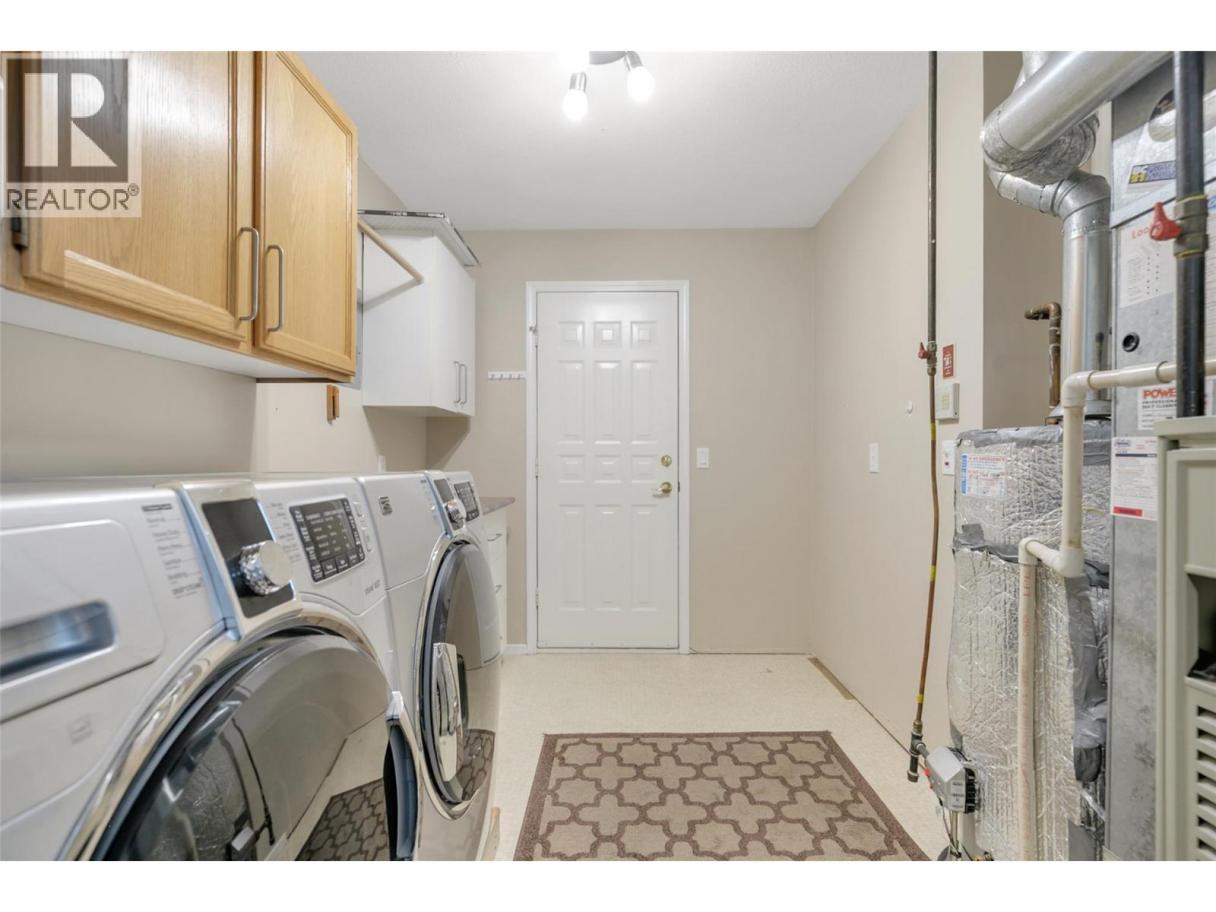 Beautiful resort style living in this 55+ centrally located complex. Sandstone is one of Kelowna's most sought after gated communities, and this clean well kept, 2 bed, 2 bath rancher is nicely tucked within it. Home is just under 1400 sq feet with tasteful upgrades, great appliances, lovely gas fireplace, central AC, built-in vac, double car garage and covered patio backing onto secluded green-space. Amazing clubhouse with library, games room, dance floor, hot tub, 2 pools and incredible huge patio area overlooking the tranquil waterscape and lush scenery. All necessary amenities are within walking distance. This unit is vacant and priced to sell. Come and see, you won't be disappointed! (id:6769)