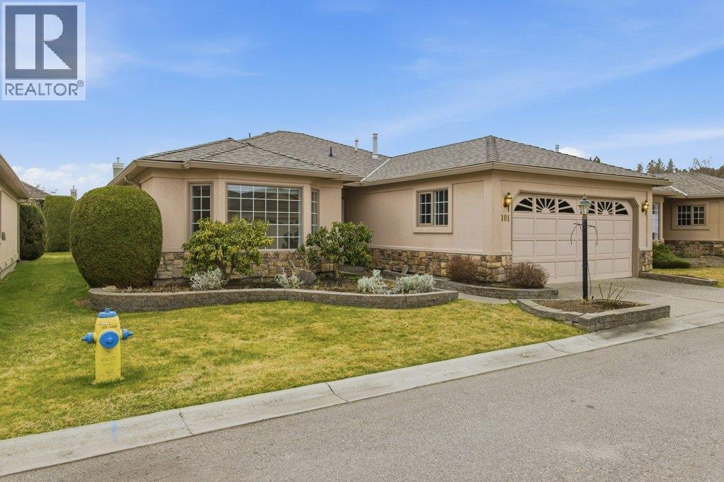 IMMEDIATE POSSESSION AVAILABLE!!! All Poly B plumbing has been removed, a brand new hot water tank has been installed, and the home has been freshly painted - ready for you to move right in! Beautifully maintained and immaculately clean this 2 bdrm/2bath home features a bright white kitchen with granite countertops, under cabinet lighting and stainless steel appliances. The spacious primary bedroom includes a walk-in closet and full ensuite, while the main bathroom offers a wheelchair accessible walk-in shower. Enjoy the comfortable family room off the kitchen with a cozy fireplace, large windows that bring in plenty of natural light, laminate flooring and updated light fixtures. Step outside to a private backyard with a spacious covered patio perfect for relaxing or entertaining. This 55+ gated community features beautifully landscaped grounds with tranquil water features as well as a clubhouse with indoor and outdoor pools and a hot tub. Pet restrictions: Up to 2 dogs, 2 cats, or 1 of each with a maximum height of 15"" at the shoulder. Located in one of Kelowna's most sought after retirement communities, this home offers comfort, convenience and a fantastic lifestyle! (id:6769)