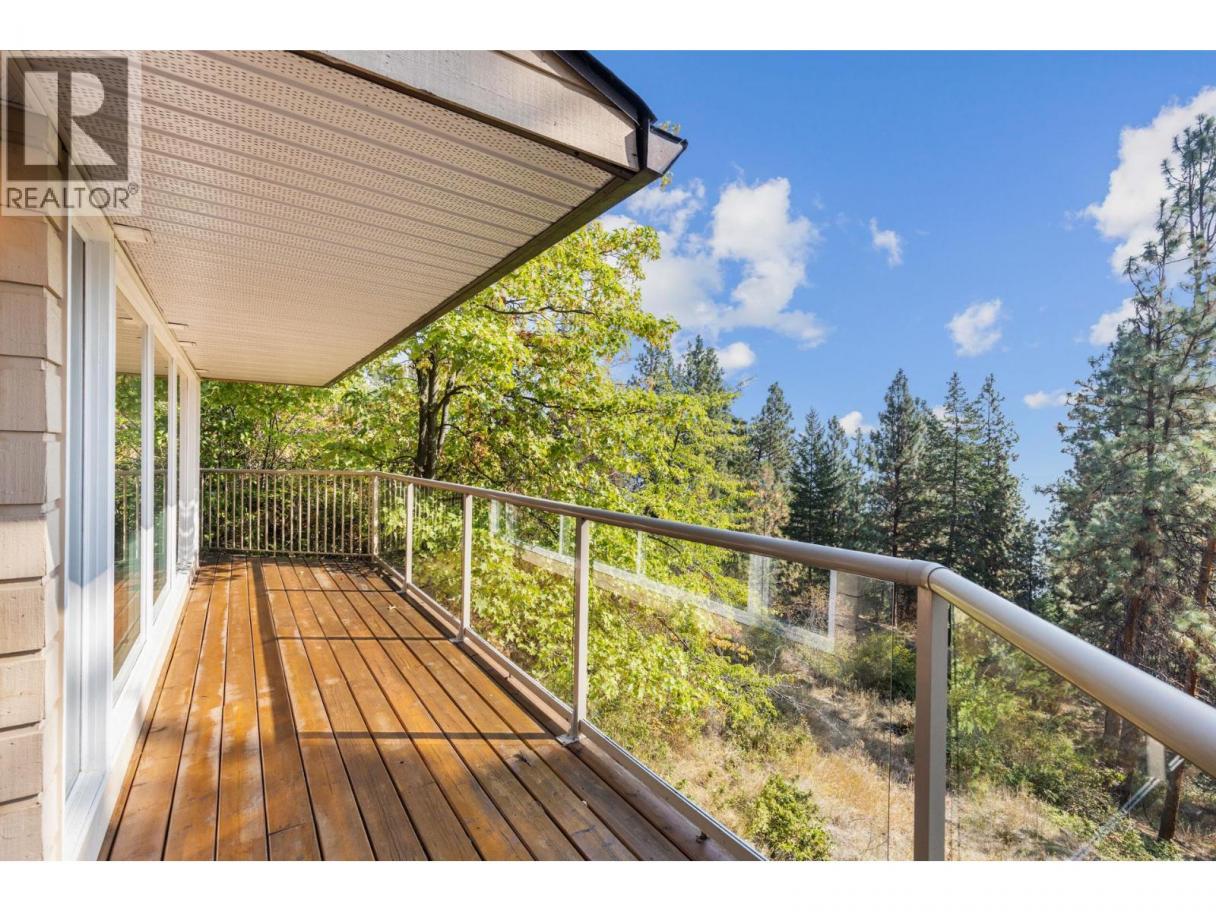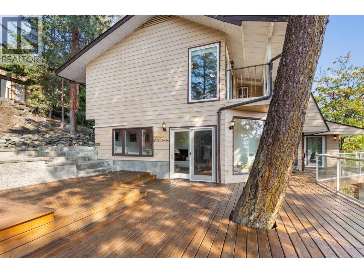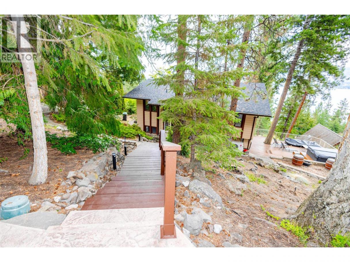 Welcome to Lakeview Heights, where panoramic lake views and a private setting define this 3-bedroom, 3-bathroom home. Nestled among the trees on a quiet street, this residence offers a treehouse feel with expansive wrap-around decks that are ideal for entertaining or enjoying the Okanagan lifestyle. The main floor is bright and functional, featuring a designer kitchen with premium finishes, an open dining space, and a temperature-controlled wine room. The cozy living room with gas fireplace flows seamlessly outdoors, showcasing views of Okanagan Lake and the city, perfect for hosting friends, family, or quiet evenings at home. Upstairs, the spacious primary suite includes a private deck, ensuite, and lake views. Two additional bedrooms—one bedroom complete with walk-in closet—share a 4-piece bathroom, creating a convenient and flexible layout for family, guests, or home office space. Outdoors, a detached double garage with 100-amp service and extra storage adds practicality, while RV/boat parking provides room for all your Okanagan toys. The landscaped half-acre+ lot features tiered gardens, mature trees, and shrubs that create a private setting and make the home blend naturally with its surroundings. Located within minutes from wineries, breweries, hiking trails, beaches, and everyday amenities, this property captures the best of Lakeview Heights living and provides a true connection between indoor comfort and the outdoor Okanagan lifestyle. (id:6769)