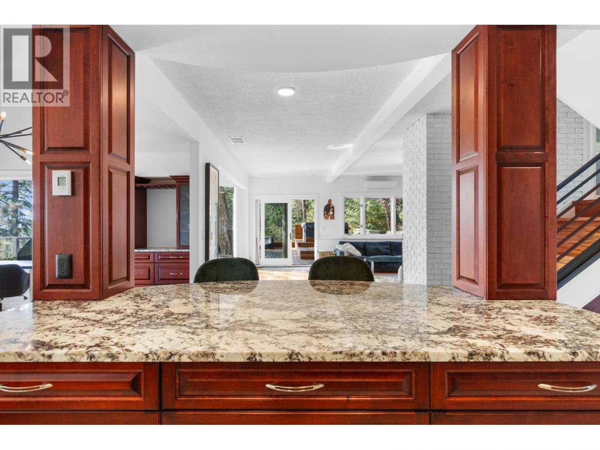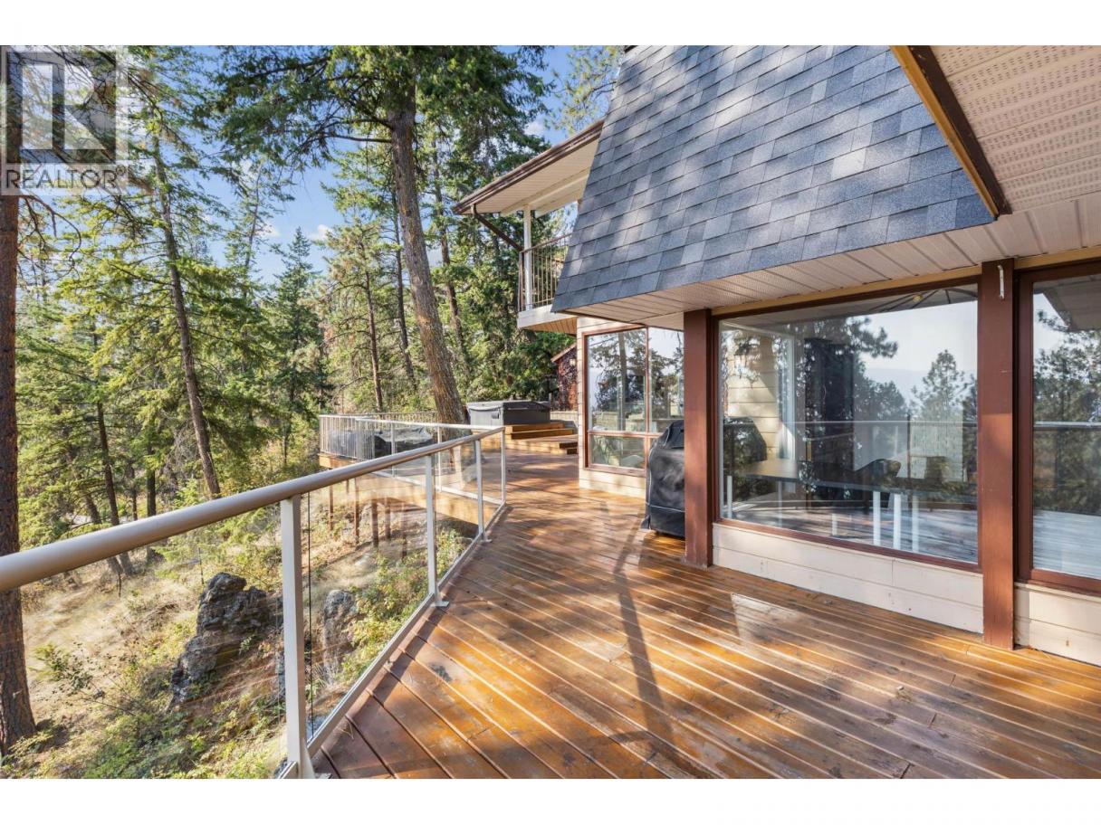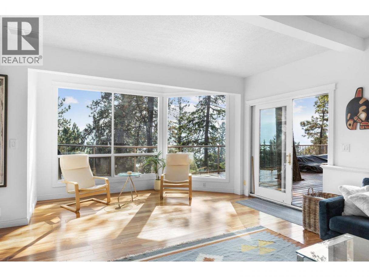 Welcome to Lakeview Heights, where panoramic lake views and a private setting define this 3-bedroom, 3-bathroom home. Nestled among the trees on a quiet street, this residence offers a treehouse feel with expansive wrap-around decks that are ideal for entertaining or enjoying the Okanagan lifestyle. The main floor is bright and functional, featuring a designer kitchen with premium finishes, an open dining space, and a temperature-controlled wine room. The cozy living room with gas fireplace flows seamlessly outdoors, showcasing views of Okanagan Lake and the city, perfect for hosting friends, family, or quiet evenings at home. Upstairs, the spacious primary suite includes a private deck, ensuite, and lake views. Two additional bedrooms—one bedroom complete with walk-in closet—share a 4-piece bathroom, creating a convenient and flexible layout for family, guests, or home office space. Outdoors, a detached double garage with 100-amp service and extra storage adds practicality, while RV/boat parking provides room for all your Okanagan toys. The landscaped half-acre+ lot features tiered gardens, mature trees, and shrubs that create a private setting and make the home blend naturally with its surroundings. Located within minutes from wineries, breweries, hiking trails, beaches, and everyday amenities, this property captures the best of Lakeview Heights living and provides a true connection between indoor comfort and the outdoor Okanagan lifestyle. (id:6769)