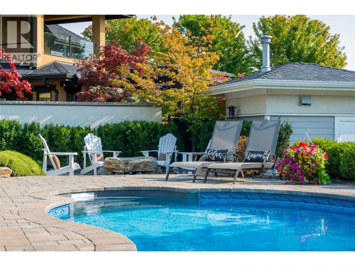 This exceptional home blends luxury design with resort-style living. The main level features cork flooring and dramatic 18-ft vaulted bleached wood ceilings, as well as a cozy gas fireplace and electric blinds throughout. The dining room is wrapped in windows on three sides, offering beautiful views of the pool, while the chef’s kitchen boasts quartz and granite counters, JennAir appliances, a 36"" gas range, and a walk-in pantry. Step through the folding glass doors to the incredible outdoor space with a covered patio, built-in BBQ, water misters, gas fire pit, POOL, and synthetic lawn with putting green—perfect for entertaining. A functional mudroom off garage includes a sink, bench, and hooks, while the convenient full bath with exterior access and change area is perfect for pool guests. Upstairs, the primary suite features a private mountain-view deck overlooking the pool, a walk-in closet, and a spa-inspired ensuite with dual sinks, heated floors, water closet, and a shower with bench and body jets. Two additional bedrooms and a full bath complete the level. The lower level includes a theatre room with raised seating, 9.1 surround sound, 3D projector, and equipment closet, plus a gym behind barn doors, another bedroom with large window, and a full bath with glass and tile shower. Enjoy geothermal heating and cooling, the oversized garage offers two bays extended to 29’ with 11-ft ceilings, epoxy floors, a tile dog wash, & workshop area with cabinets & bench. (id:6769)
