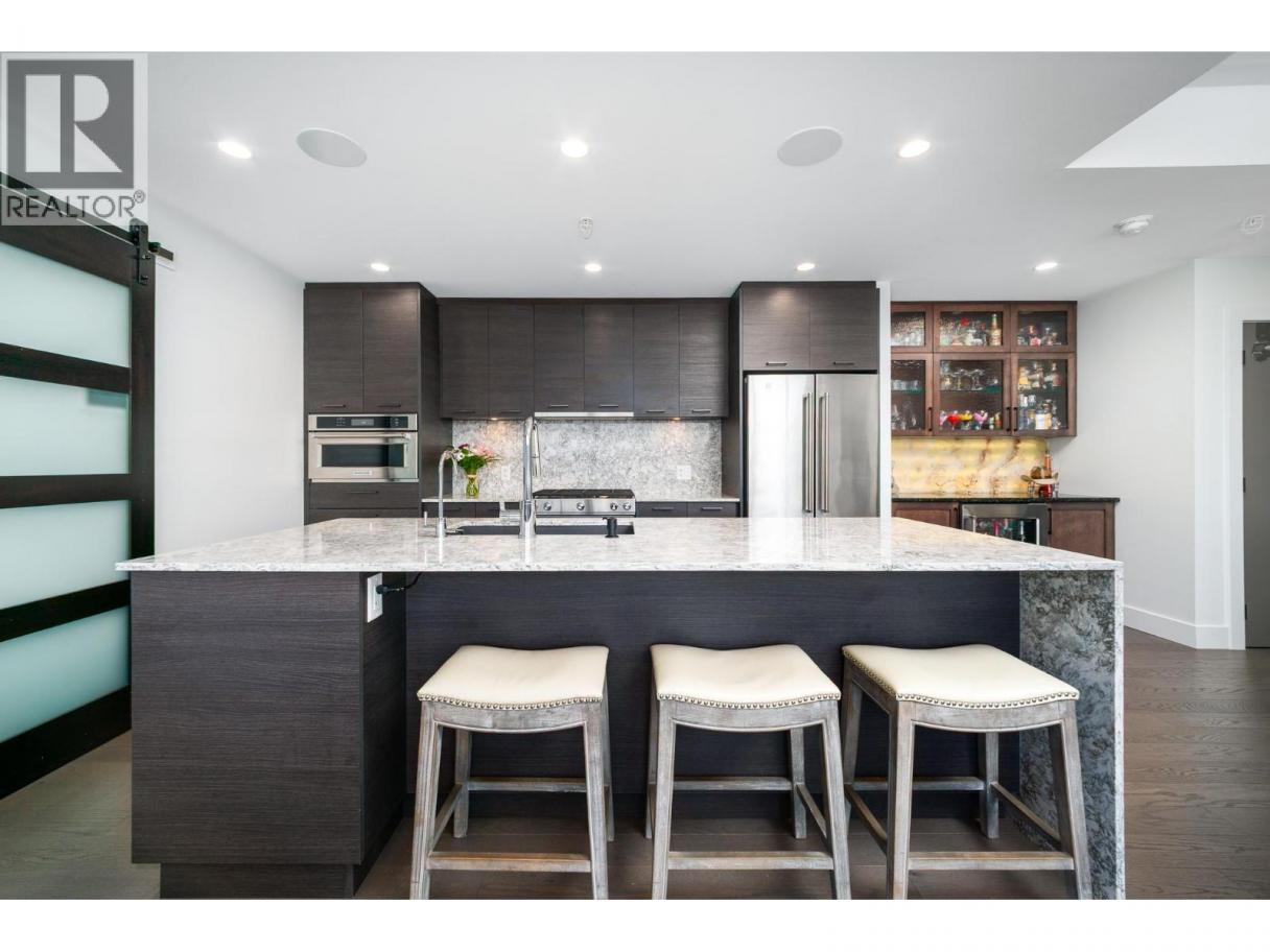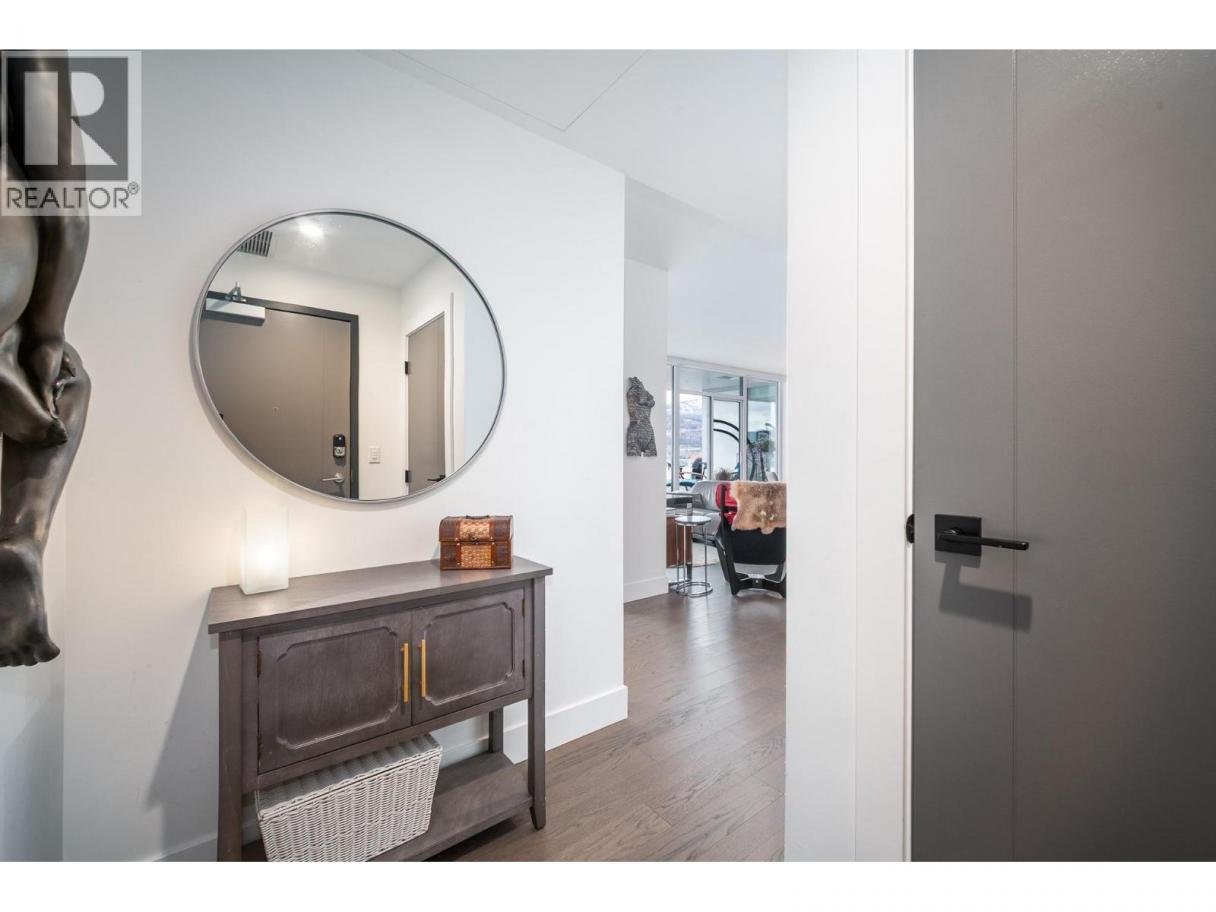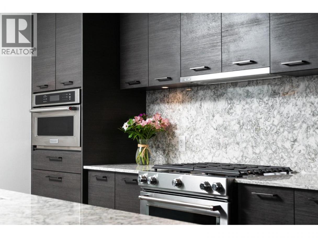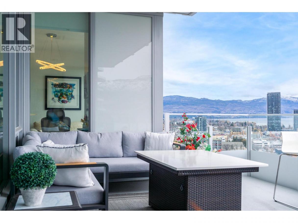 Perched on the 21st floor, this upgraded residence offers exceptional privacy and sweeping views from a large outdoor deck designed for entertaining and relaxation with a natural gas outlet and a truly unobstructed vantage point — a rare combination of elevation, privacy, and outdoor living. Inside, oak hardwood floors and floor-to-ceiling windows create a bright, refined living space that seamlessly blends modern design with smart functionality. The kitchen is a standout with waterfall-edge counters, granite sink, gas range, KitchenAid appliances and combi oven. A built-in bar with dual-zone KitchenAid beverage fridge adds an entertaining hub with a striking LED backlit onyx backsplash. Smart home features are integrated throughout, including touchscreen controls for lighting and music, along with built-in ceiling speakers in the kitchen and primary bedroom. Extra insulation along common walls enhances comfort and quiet. The primary suite offers a spacious walk-in closet and a stylish 3-piece ensuite with glass and tile shower. A generous second bedroom features large floor-to-ceiling windows and a full closet. The main bath includes a 4-piece layout with tile surround to the ceiling. Additional highlights include stacked laundry with added storage, and thoughtful upgrades throughout that elevate everyday living. Resort-style amenities including two pools, hot tub, fitness club with gym and yoga studio, pickleball court, dog park, BBQ and fire pit areas, and more! (id:6769)