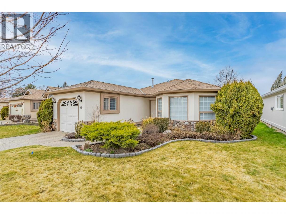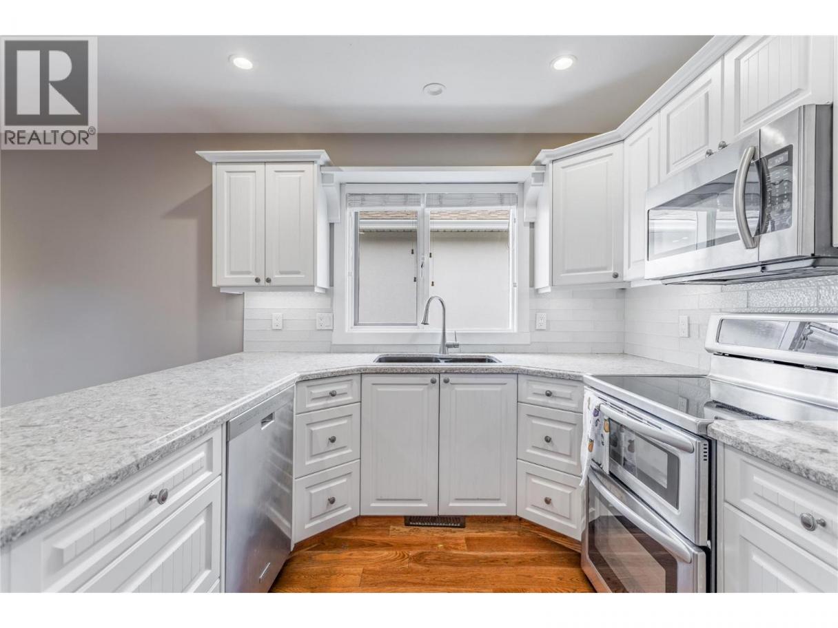 OPEN HOUSE: Sat March 21 from 10am - 12 noon. Welcome to Sandstone, one of the most desirable 55+ gated communities in Kelowna - it feels like a resort! Close to shopping, parks, and all city amenities. This clean and well kept rancher with 2 spacious bedrooms and 2 baths has been tastefully updated along with the flooring and kitchen, to meet today's discerning buyer. Stainless appliances (fridge, stove, microwave, dishwasher), all window coverings (2"" wood slat blinds throughout), washer, dryer, closet organizer where shown, apple TV over gas fireplace in the family room, A/C, central vac. Your private patio backs onto the quiet waterscape that Sandstone is known for. Amenities-rich complex with both an indoor pool and an outdoor pool, hot tub, a big patio, and a clubhouse with games room & library. (id:6769)