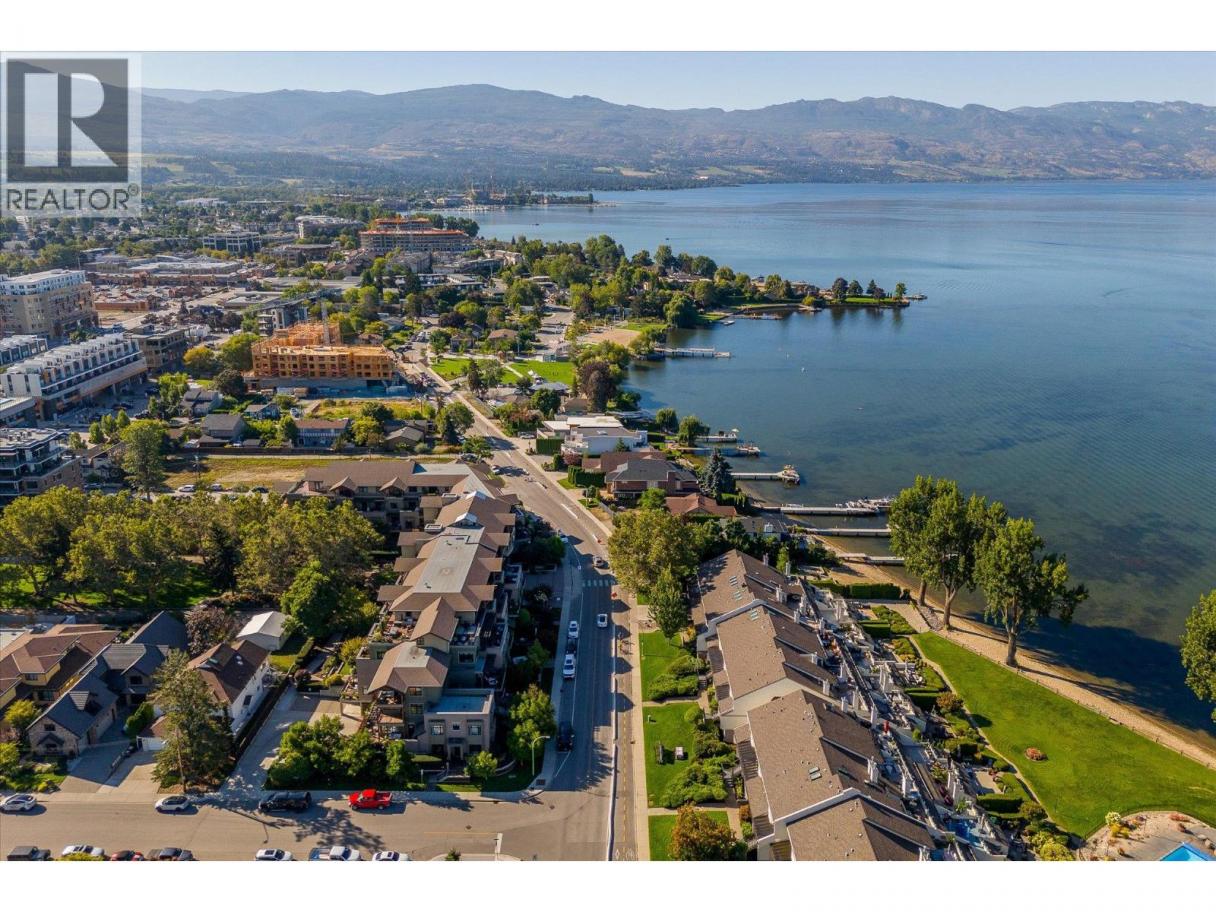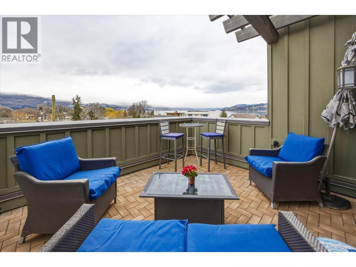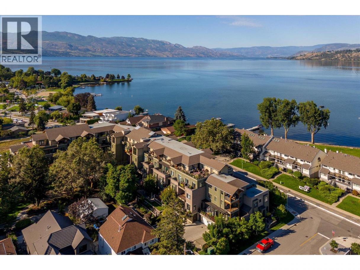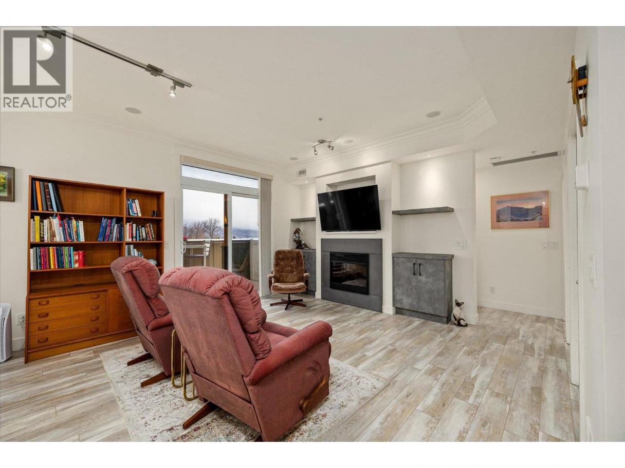 South-Facing Condo at The Abbott House with Partial Lake Views! Located in the highly desirable Abbott Street corridor, this beautifully maintained condo offers exceptional walkability to nearby beaches, the Lake, boutique shops, professional services and restaurants. This bright and spacious 2-bedroom + den, 2-bathroom residence is enhanced by abundant natural light with partial lake and mountain views. The open-concept kitchen, dining/living area features updated stainless- steel appliances (dishwasher, stove, above range microwave), a kitchen island with additional under-storage, a walk-in pantry and a cozy fireplace plus recent custom built-in cabinetry. Additional highlights include wide-plank laminate flooring and new custom window coverings throughout. The open den provides flexible space, perfect for a home office, a creative space or study area. The split-bedroom floor plan offers comfort and privacy, with both primary bedrooms featuring attached ensuites and located on opposite sides of the home—ideal for guests or family. Enjoy outdoor living with two large private patios—one accessed from a primary bedroom and the other from the living and dining area. An additional feature includes one secured underground parking stall, conveniently located near a designated storage room. Welcome to #304 at the Abbott House-where comfort, style and an unbeatable location come together. (id:6769)