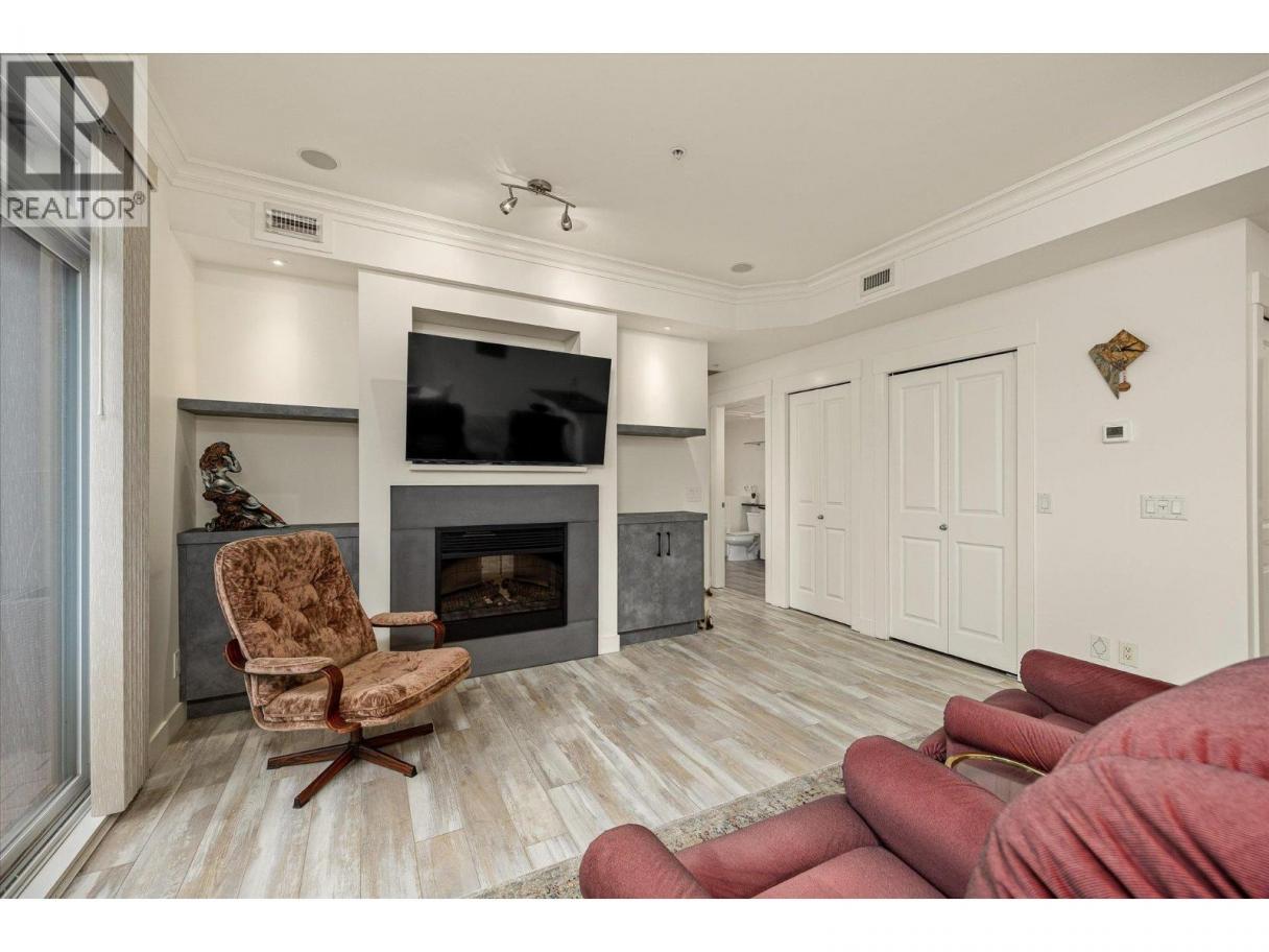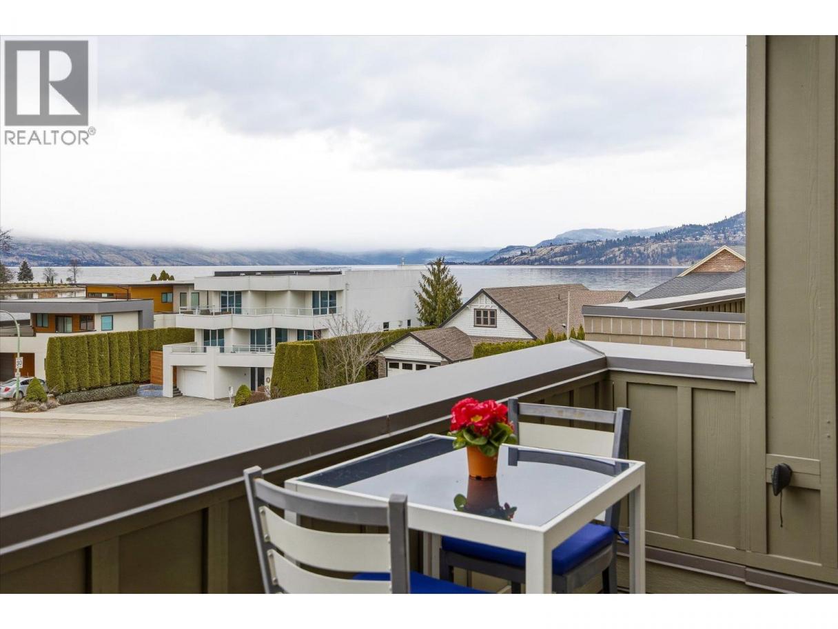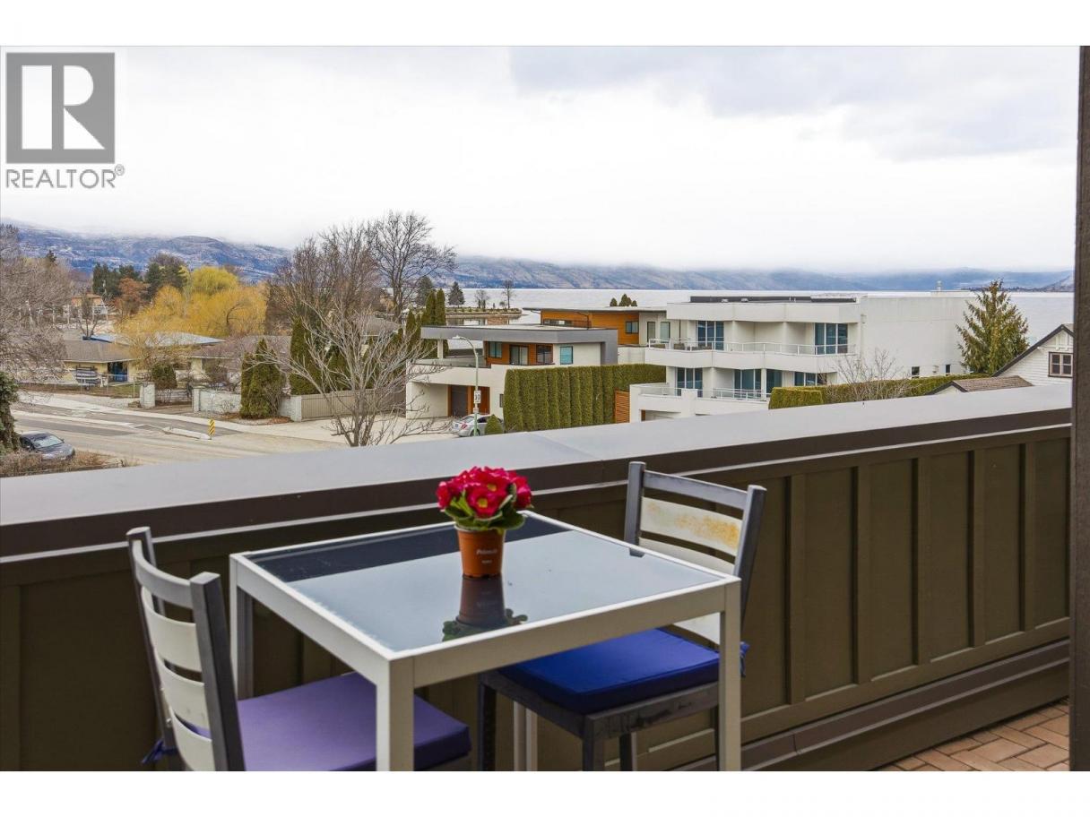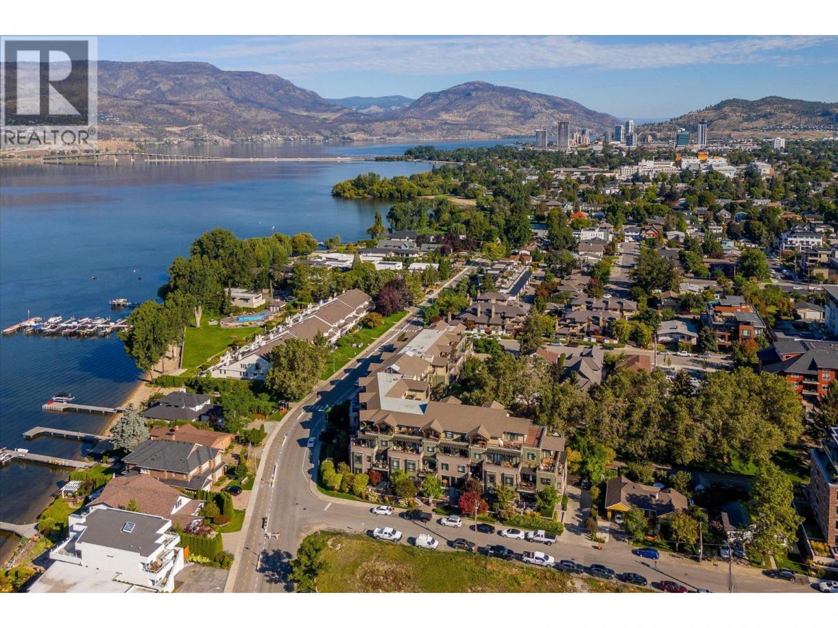 South-Facing Condo at The Abbott House with Partial Lake Views! Located in the highly desirable Abbott Street corridor, this beautifully maintained condo offers exceptional walkability to nearby beaches, the Lake, boutique shops, professional services and restaurants. This bright and spacious 2-bedroom + den, 2-bathroom residence is enhanced by abundant natural light with partial lake and mountain views. The open-concept kitchen, dining/living area features updated stainless- steel appliances (dishwasher, stove, above range microwave), a kitchen island with additional under-storage, a walk-in pantry and a cozy fireplace plus recent custom built-in cabinetry. Additional highlights include wide-plank laminate flooring and new custom window coverings throughout. The open den provides flexible space, perfect for a home office, a creative space or study area. The split-bedroom floor plan offers comfort and privacy, with both primary bedrooms featuring attached ensuites and located on opposite sides of the home—ideal for guests or family. Enjoy outdoor living with two large private patios—one accessed from a primary bedroom and the other from the living and dining area. An additional feature includes one secured underground parking stall, conveniently located near a designated storage room. Welcome to #304 at the Abbott House-where comfort, style and an unbeatable location come together. (id:6769)