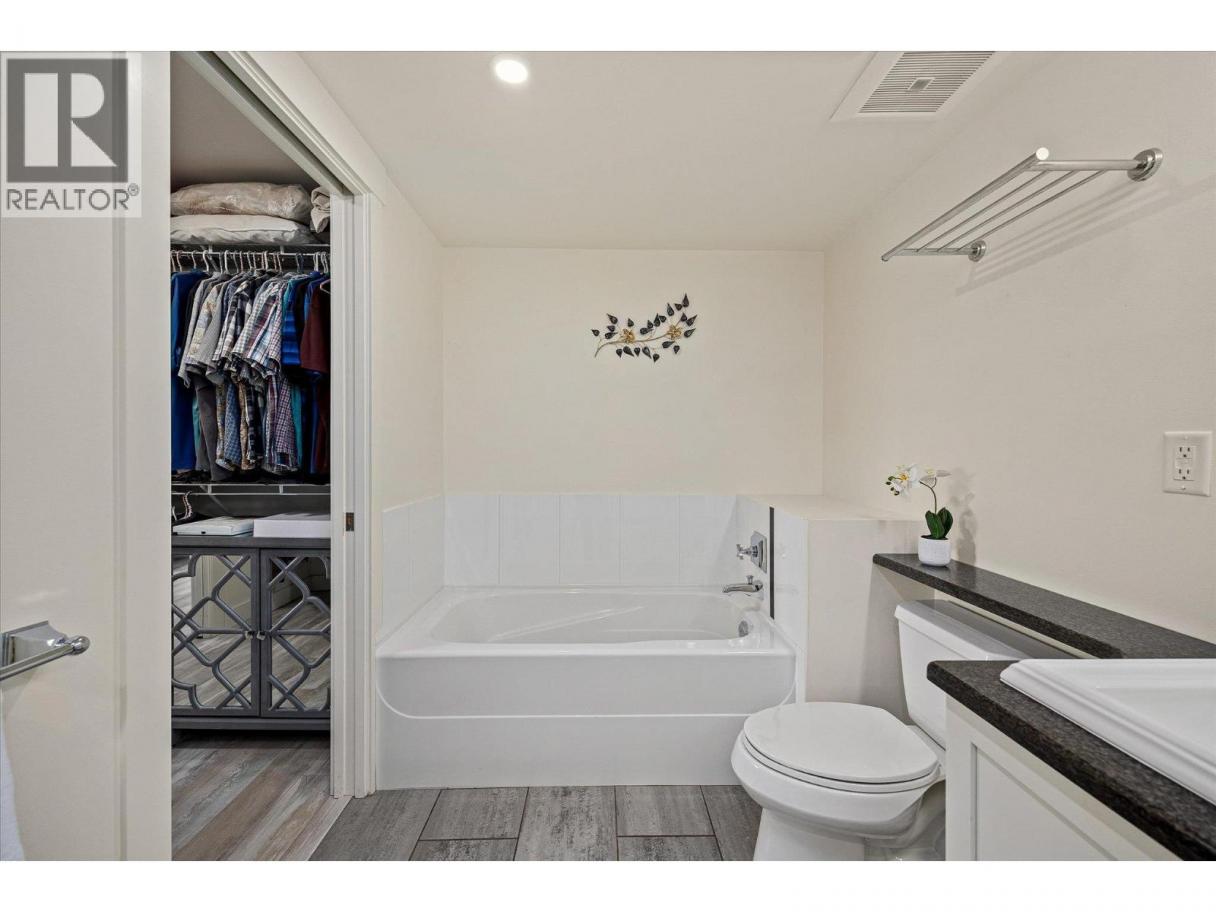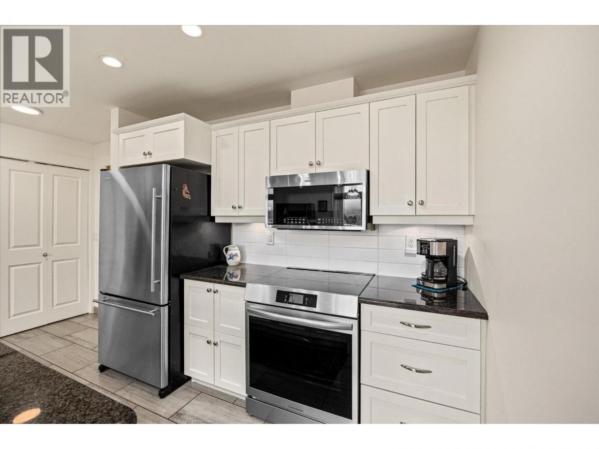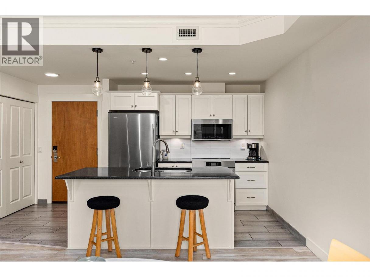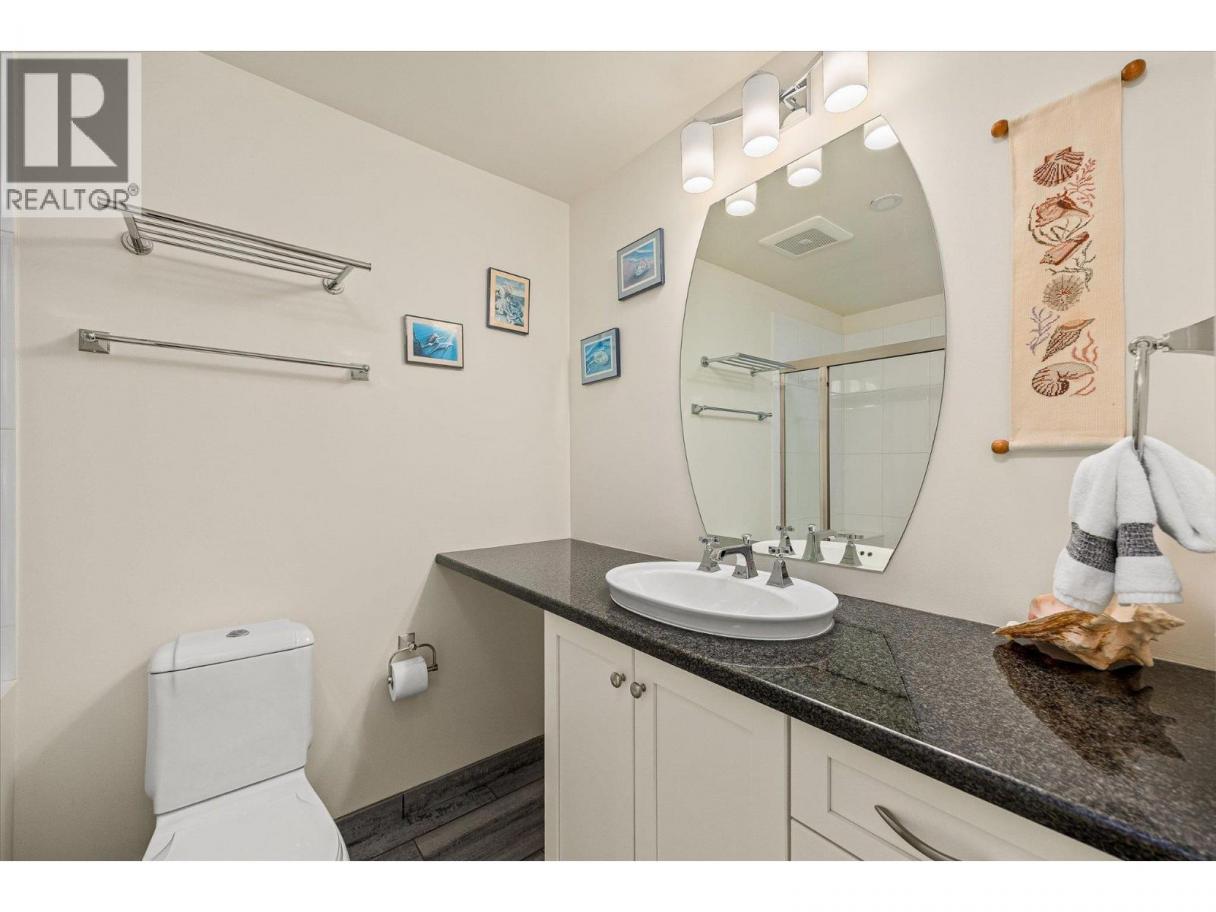 South-Facing Condo at The Abbott House with Partial Lake Views! Located in the highly desirable Abbott Street corridor, this beautifully maintained condo offers exceptional walkability to nearby beaches, the Lake, boutique shops, professional services and restaurants. This bright and spacious 2-bedroom + den, 2-bathroom residence is enhanced by abundant natural light with partial lake and mountain views. The open-concept kitchen, dining/living area features updated stainless- steel appliances (dishwasher, stove, above range microwave), a kitchen island with additional under-storage, a walk-in pantry and a cozy fireplace plus recent custom built-in cabinetry. Additional highlights include wide-plank laminate flooring and new custom window coverings throughout. The open den provides flexible space, perfect for a home office, a creative space or study area. The split-bedroom floor plan offers comfort and privacy, with both primary bedrooms featuring attached ensuites and located on opposite sides of the home—ideal for guests or family. Enjoy outdoor living with two large private patios—one accessed from a primary bedroom and the other from the living and dining area. An additional feature includes one secured underground parking stall, conveniently located near a designated storage room. Welcome to #304 at the Abbott House-where comfort, style and an unbeatable location come together. (id:6769)