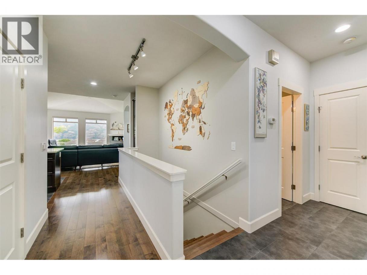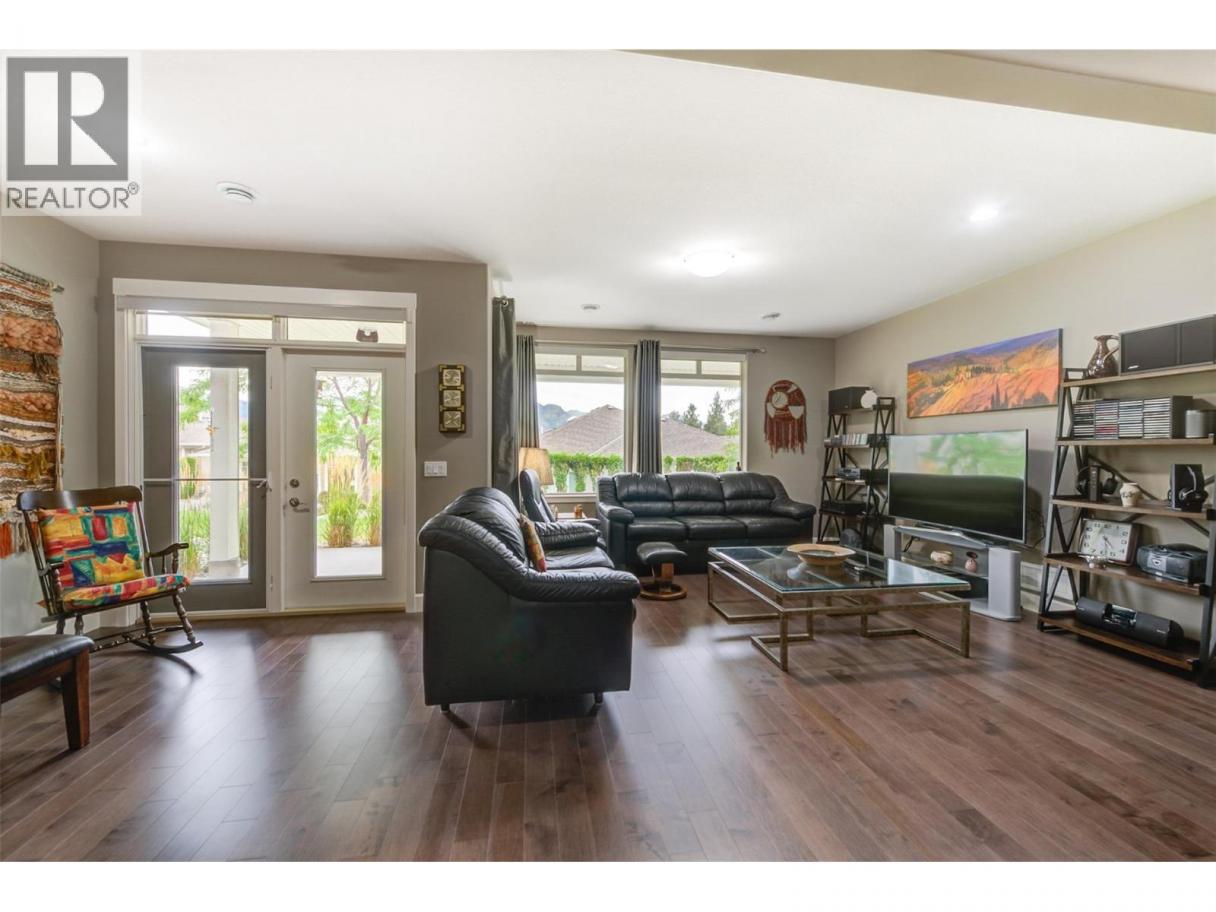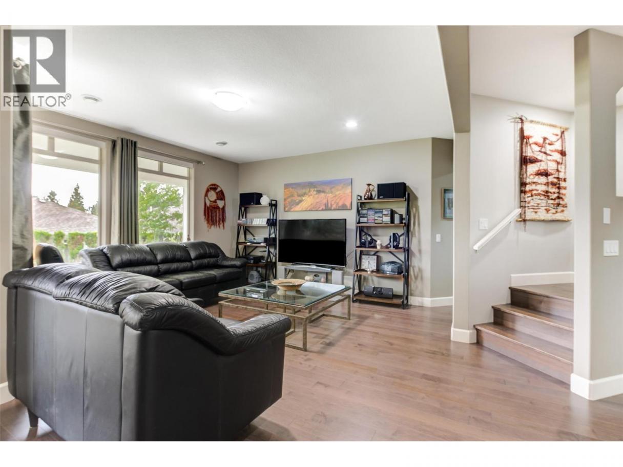 Discover refined comfort and effortless living in this impeccably maintained former show home, ideally located in the sought-after Canyon Ridge 55+ gated community. Thoughtfully designed and move-in ready, this 3-bed, 3-bath home offers open-concept living, a versatile den, and inviting outdoor spaces. Step inside to warm hardwood floors, vaulted ceilings, and abundant natural light. The spacious living room features expansive windows framing beautiful mountain views with a glimpse of the lake, creating a bright, airy feel. The gourmet kitchen is both stylish and functional, with granite countertops, a generous island, stainless steel appliances, and ample cabinetry. A skylight enhances the space, while the gas cooktop and wall oven make cooking a pleasure. The main-floor primary suite offers a peaceful retreat with a walk-in closet and well-appointed ensuite. A front-facing den is perfect for a home office or flex space, while a second bedroom, full bath, and laundry complete the main level. Downstairs, the finished lower level adds flexibility with a spacious family room and games area, separated by a striking double-sided gas fireplace ~ ideal for relaxing or hosting. Outdoor living shines with a large deck showcasing mountain and partial-lake views, plus a lower patio extending your living space. Residents enjoy a clubhouse with lounge, kitchen, banquet room, and library. Minutes to Glen Canyon Regional Park, Okanagan Lake, and amenities, this home blends tranquility, convenience, and low-maintenance living. (id:6769)