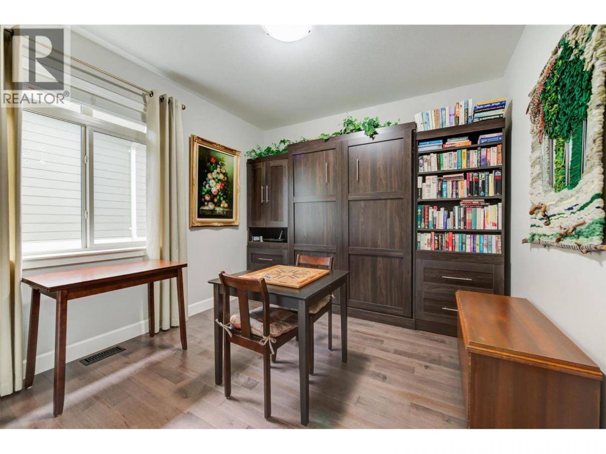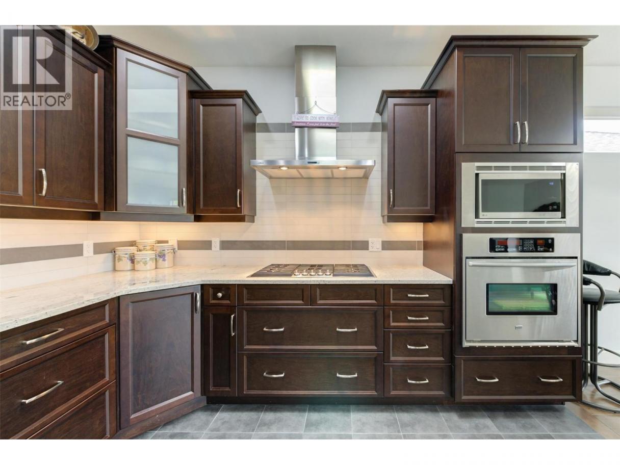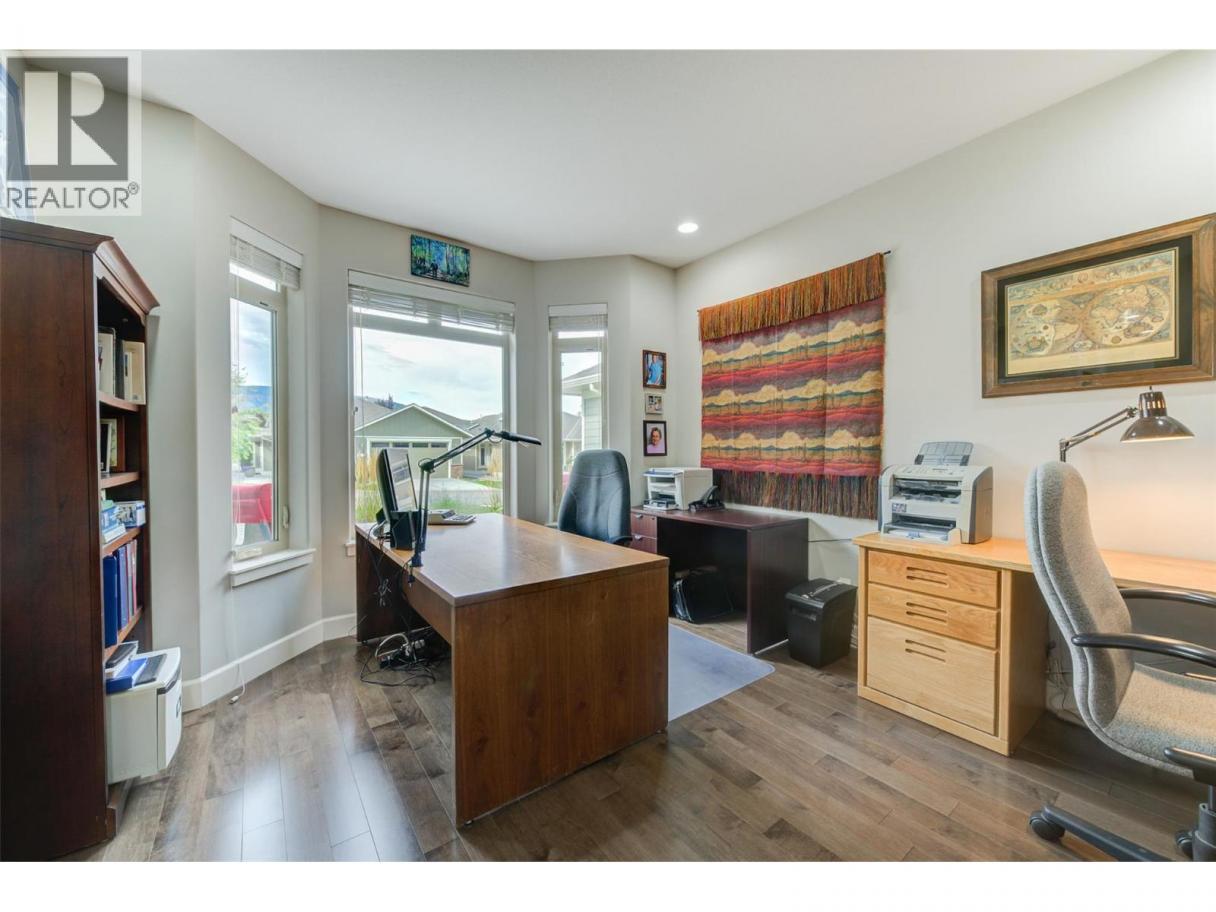 Discover refined comfort and effortless living in this impeccably maintained former show home, ideally located in the sought-after Canyon Ridge 55+ gated community. Thoughtfully designed and move-in ready, this 3-bed, 3-bath home offers open-concept living, a versatile den, and inviting outdoor spaces. Step inside to warm hardwood floors, vaulted ceilings, and abundant natural light. The spacious living room features expansive windows framing beautiful mountain views with a glimpse of the lake, creating a bright, airy feel. The gourmet kitchen is both stylish and functional, with granite countertops, a generous island, stainless steel appliances, and ample cabinetry. A skylight enhances the space, while the gas cooktop and wall oven make cooking a pleasure. The main-floor primary suite offers a peaceful retreat with a walk-in closet and well-appointed ensuite. A front-facing den is perfect for a home office or flex space, while a second bedroom, full bath, and laundry complete the main level. Downstairs, the finished lower level adds flexibility with a spacious family room and games area, separated by a striking double-sided gas fireplace ~ ideal for relaxing or hosting. Outdoor living shines with a large deck showcasing mountain and partial-lake views, plus a lower patio extending your living space. Residents enjoy a clubhouse with lounge, kitchen, banquet room, and library. Minutes to Glen Canyon Regional Park, Okanagan Lake, and amenities, this home blends tranquility, convenience, and low-maintenance living. (id:6769)