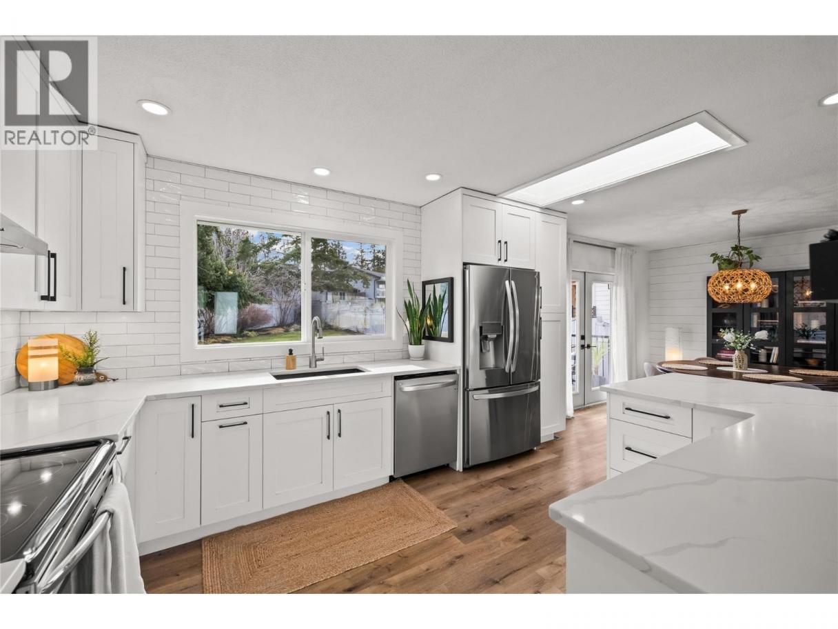 Beautifully updated and full of natural light, this modern West Kelowna home is set in a peaceful community just minutes from local wineries, Okanagan Lake, and everyday amenities. The main level features a bright open-concept living space with large windows and a charming brick surround wood-burning fireplace. The wrap-around kitchen is both stylish and functional with stainless steel appliances, a built-in pantry, and dine-up bar seating. Down the hall you’ll find a 4-piece main bathroom with a tile surround tub/shower combo and three bedrooms, including the spacious primary suite with a private 3-piece ensuite featuring a walk-in glass and tile shower. Downstairs, the freshly painted basement provides plenty of additional living space with a large family room featuring a freestanding gas fireplace, a rec room with a cozy wood-burning fireplace, an oversized fourth bedroom, generous storage, and a spacious laundry room with backyard access. The fully fenced backyard offers an abundance of greenspace, refreshed landscaping, and a storage shed. Additional highlights include central air, an attached garage, and plenty of extra parking, including space for your RV! (id:6769)
