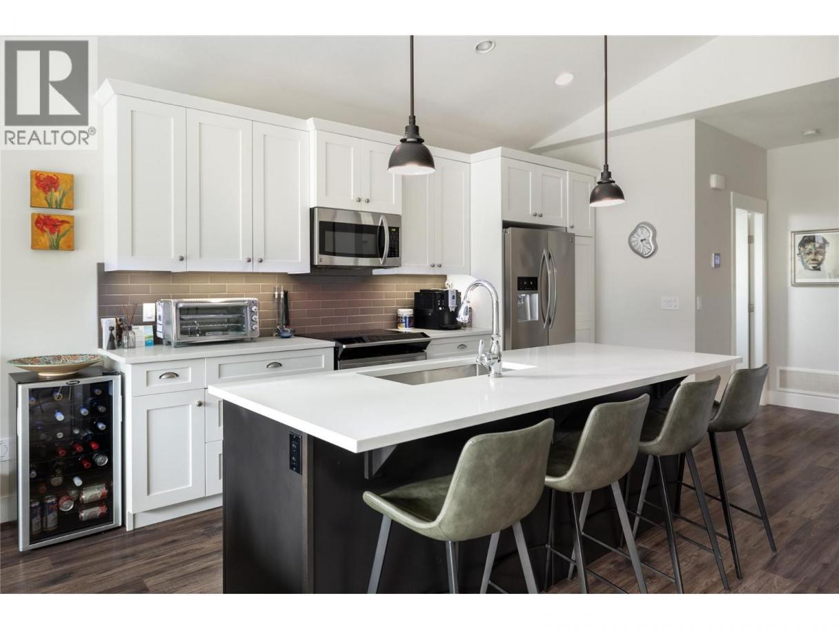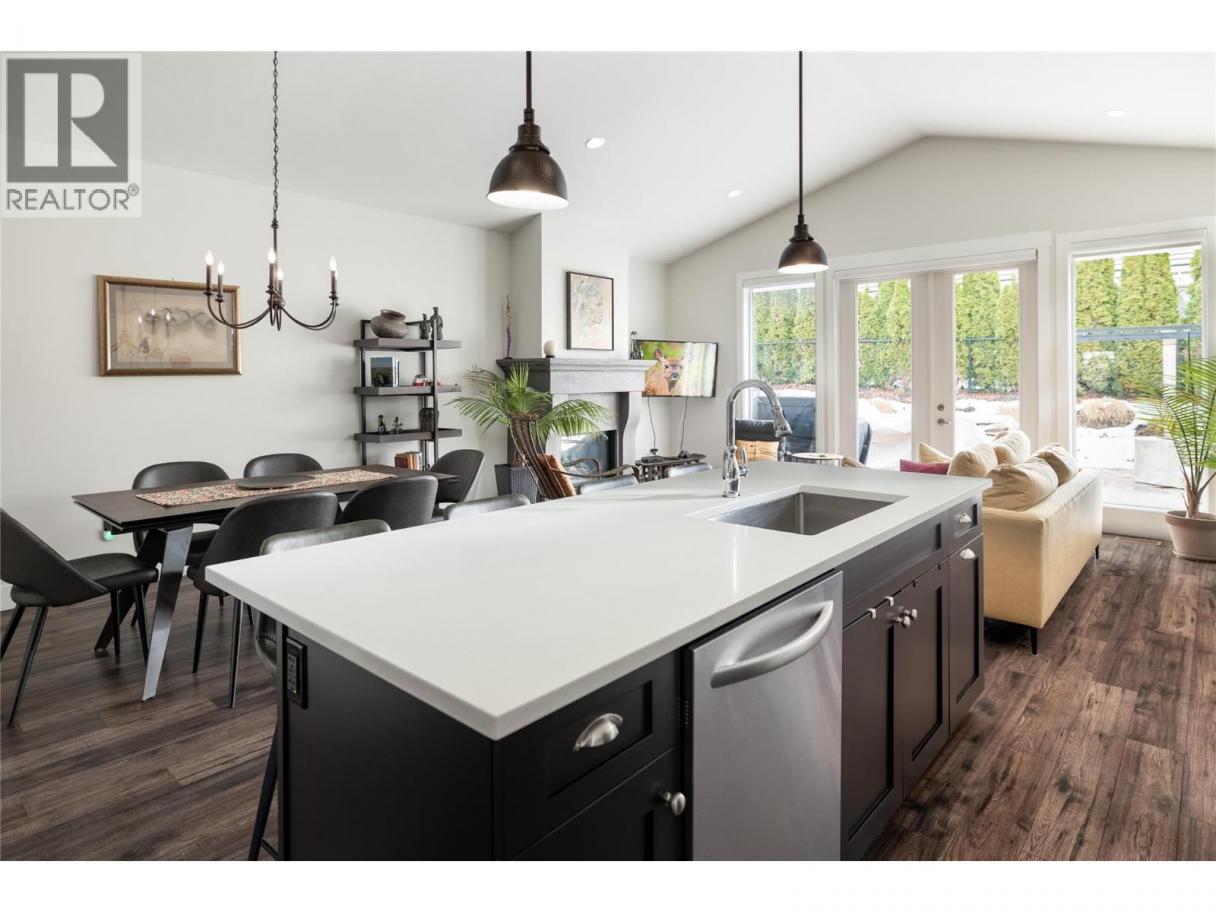 Located in the sought-after community of Trafalgar Square, this immaculate property is a must-see. Greeted by natural light, soaring ceilings and notable detail, you are drawn into the expansive main living space with vaulted ceilings. The gourmet kitchen provides effortless living with a large island perfectly positioned to flow into the dining and living areas with a gas fireplace. The outdoor oasis with southern exposure is private, offering multiple areas to enjoy, surrounded by mature greenery and beautiful landscaping. The king-sized primary suite boasts a walk-in closet and an ensuite complete with a soaker tub, double vanities, heated flooring, and a walk-in shower. An exceptional design features a main floor office/bedroom, guest bathroom, and laundry equipped with a sink. The lower level is ideal for growing families or guests with 2 bedrooms, a full bathroom, and a generous family/rec room. With strata fees including geothermal heating and cooling, water, irrigation, landscaping maintenance, and snow removal (street only). This prized neighbourhood is steps to schools, parks, and amenities, yet only a short distance to shopping, restaurants, beaches, and more. And brand-new, custom-designed kids’ theme park is just a short distance away at the corner of Gordon Drive and DeHart Road, adding exciting future value and even more family-friendly appeal to this already exceptional location. PHOTOS WERE TAKEN PRIOR TO TENANTS MOVING-IN (id:6769)
