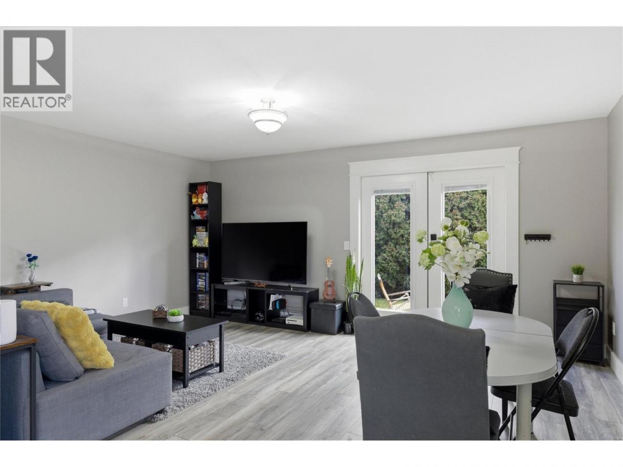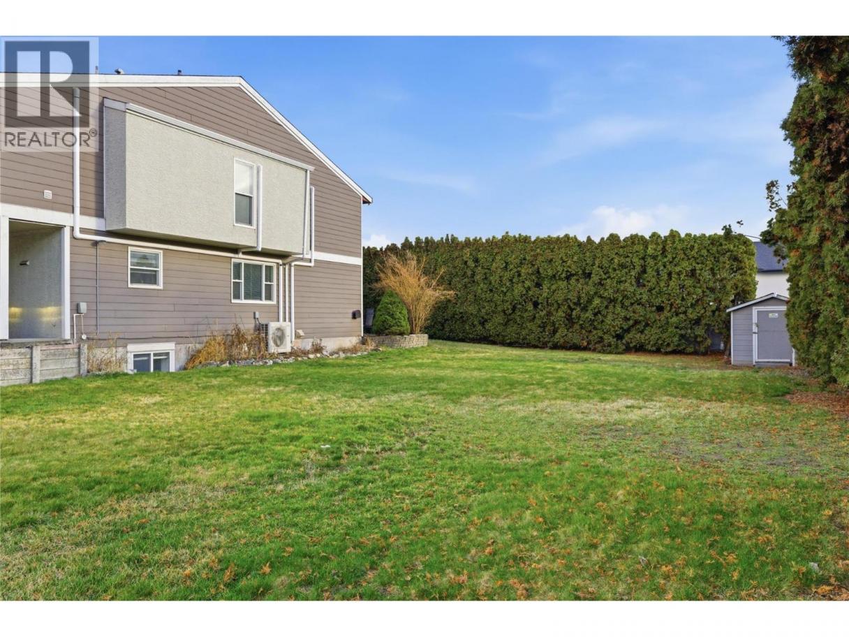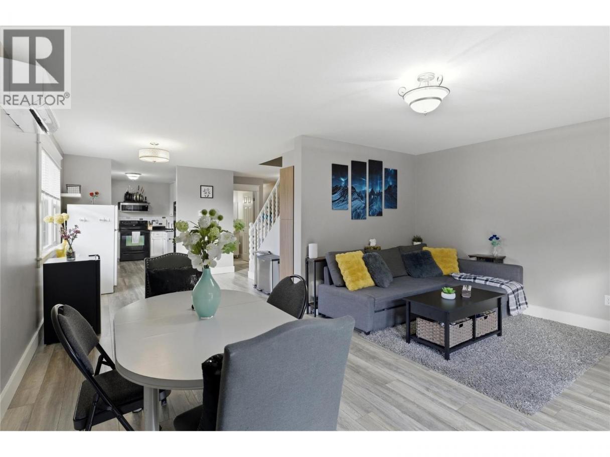 Kelowna's most affordable move-in-ready five bedroom home awaits. Nothing to do but move in to this beautifully updated, bright end-unit townhouse offering mountain views, generous living space, and a great layout for families. Recently upgraded for year-round comfort with efficient heat pumps for heating & cooling. The main floor features a seamless flow from the stylish galley kitchen through the dining area into a spacious living room with quality laminate flooring and a modern colour palette. French doors open to a small patio, garden space, and green area. Upstairs offers three well-sized bedrooms, including a primary suite with a walk-in closet and a 3-piece ensuite. The large second bedroom features French doors with access to a balcony, also accessible from the convenient upper-level laundry room. A full bathroom completes this level. The fully finished basement expands the home further with two bedrooms and flexible space ideal for a family room, office, gym, or hobby area, plus ample storage. Additional highlights include a double carport, garden shed, and access to a great common area with a playground. Located close to shopping, parks, schools, and amenities, with quick highway access to UBC, YLW, Orchard Park and the rest of Kelowna, this is a rare opportunity to own a spacious, turn-key five-bedroom home in a convenient location and an up & coming neighbourhood. MF2 zoning provides great underlying land value should the time come for redevelopment. (id:6769)