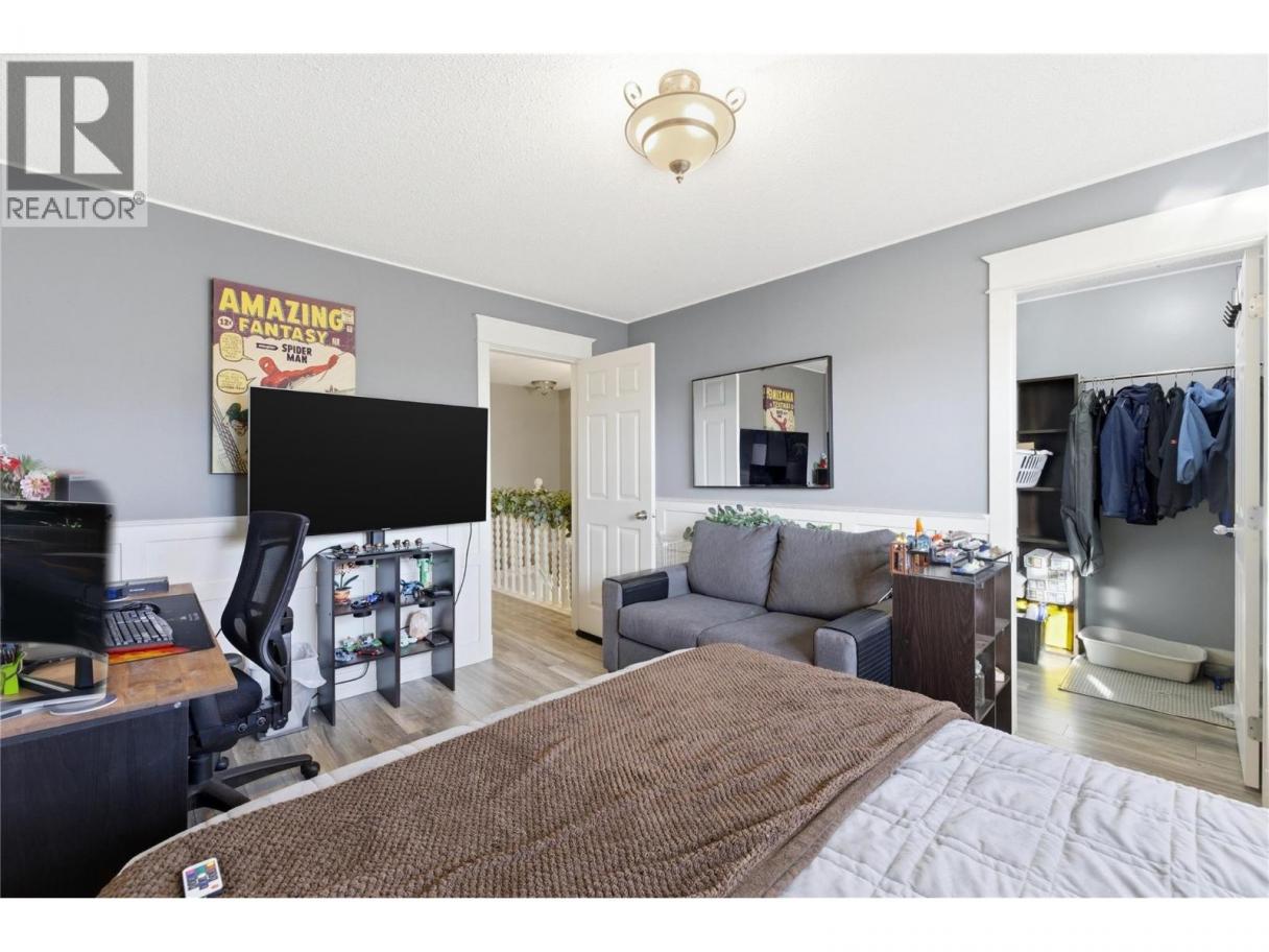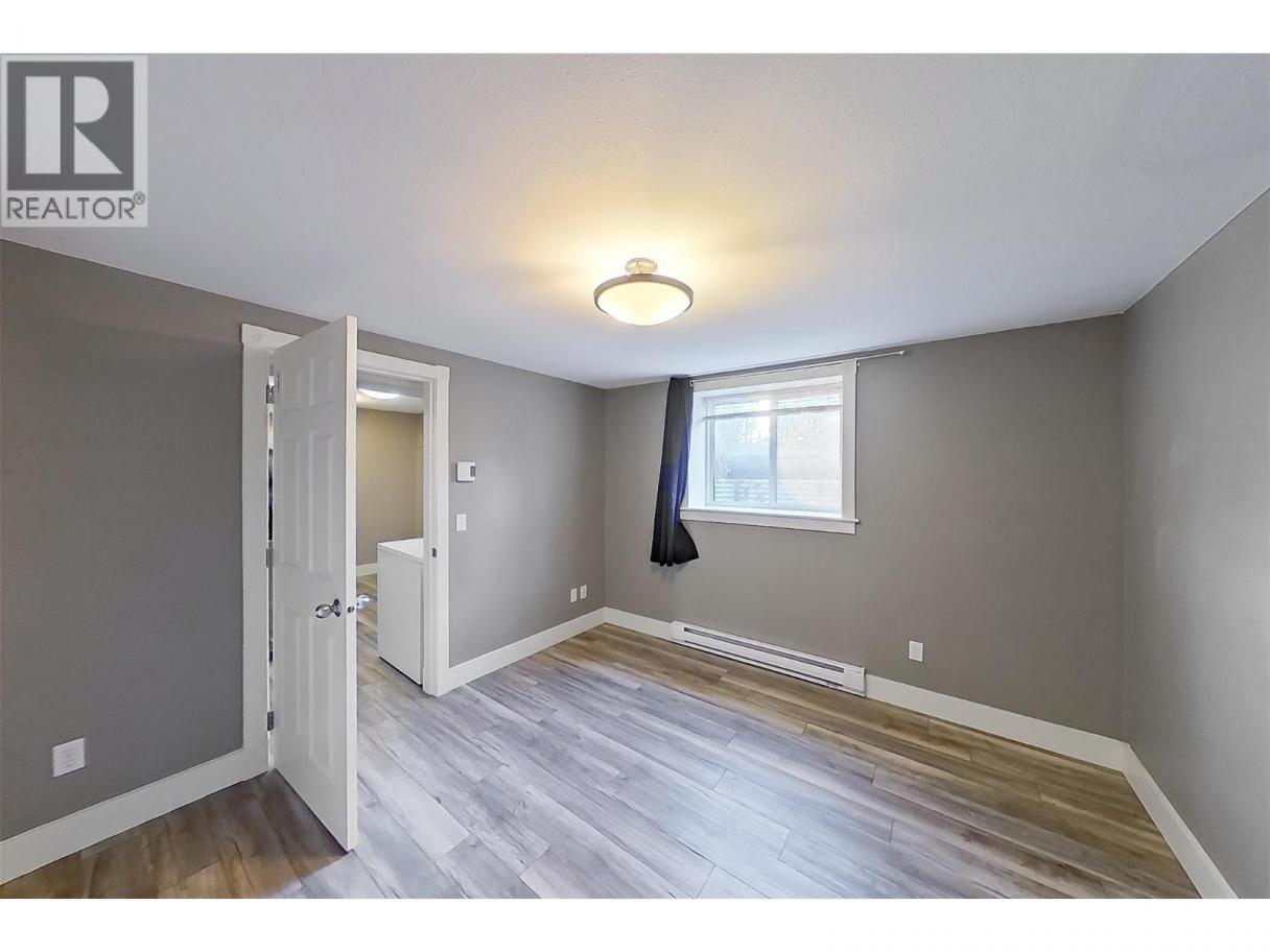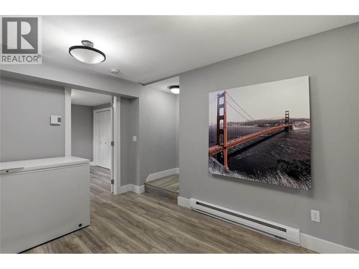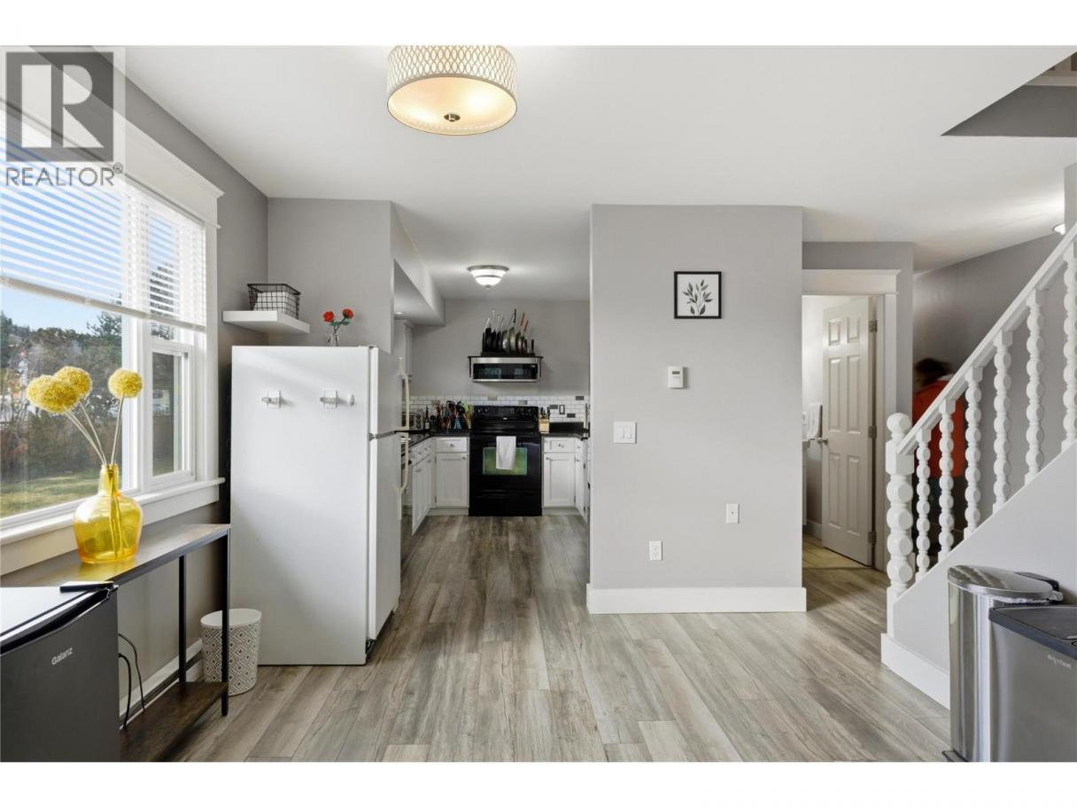 Kelowna's most affordable move-in-ready five bedroom home awaits. Nothing to do but move in to this beautifully updated, bright end-unit townhouse offering mountain views, generous living space, and a great layout for families. Recently upgraded for year-round comfort with efficient heat pumps for heating & cooling. The main floor features a seamless flow from the stylish galley kitchen through the dining area into a spacious living room with quality laminate flooring and a modern colour palette. French doors open to a small patio, garden space, and green area. Upstairs offers three well-sized bedrooms, including a primary suite with a walk-in closet and a 3-piece ensuite. The large second bedroom features French doors with access to a balcony, also accessible from the convenient upper-level laundry room. A full bathroom completes this level. The fully finished basement expands the home further with two bedrooms and flexible space ideal for a family room, office, gym, or hobby area, plus ample storage. Additional highlights include a double carport, garden shed, and access to a great common area with a playground. Located close to shopping, parks, schools, and amenities, with quick highway access to UBC, YLW, Orchard Park and the rest of Kelowna, this is a rare opportunity to own a spacious, turn-key five-bedroom home in a convenient location and an up & coming neighbourhood. MF2 zoning provides great underlying land value should the time come for redevelopment. (id:6769)