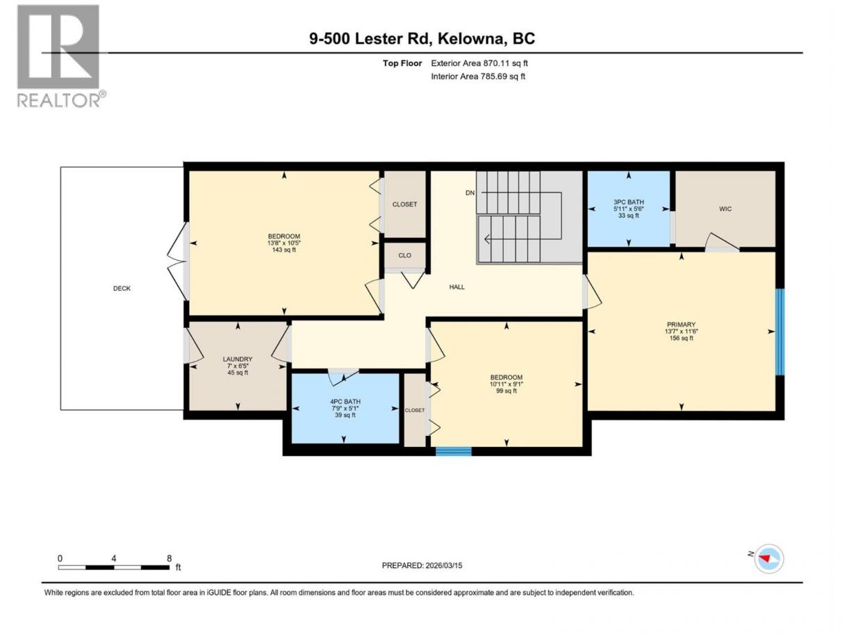 | Primary Bedroom | Second level | 13'7'' x 11'6'' |