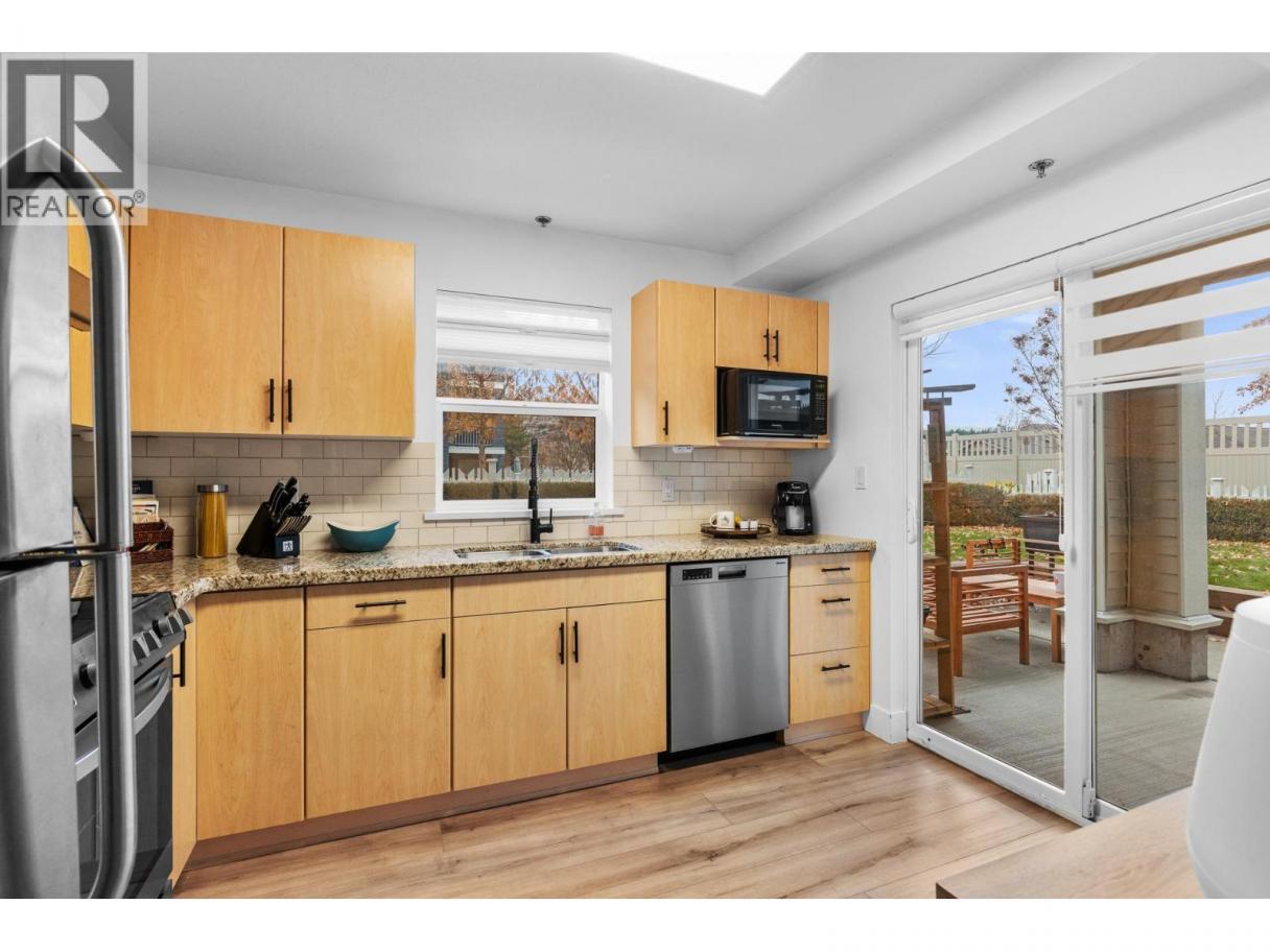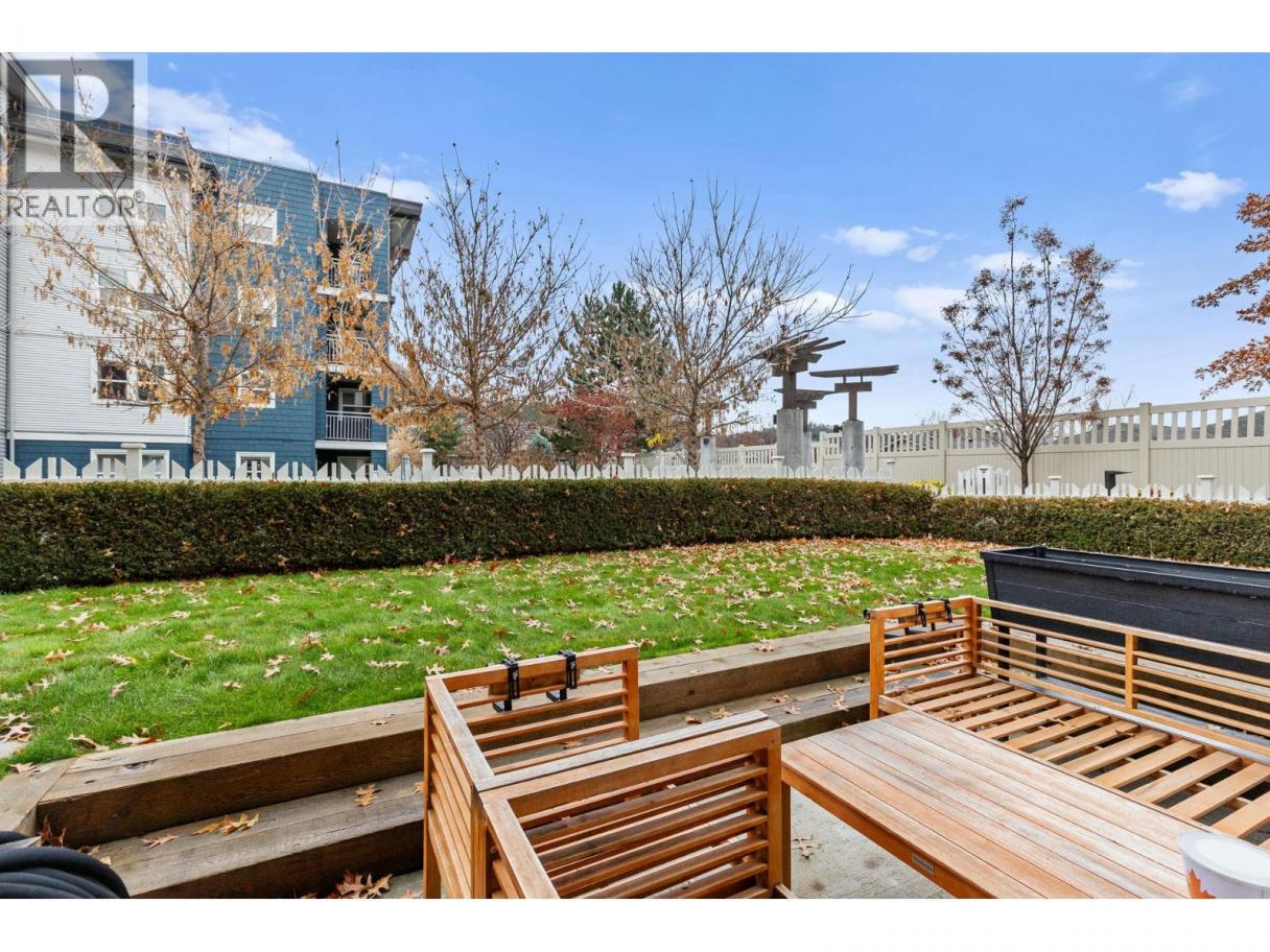 Rarely does a ""unicorn"" property like this hit the market at The Verve, offering a high-demand lifestyle that feels more like a detached home than a condo. Commanding a coveted south-east corner location, this ground-floor sanctuary is defined by its truly enormous, fully-fenced private yard, a one-of-a-kind outdoor space that is nearly impossible to find in a strata development. This oversized haven serves as a premier private park for children, a secure run for pets, and a sprawling stage for hosting unforgettable summer gatherings. Move-in ready and meticulously updated, the interior shines with premium upgrades, including a newer induction stove, custom cabinetry, modern flooring, and designer lighting and bath fixtures. The Verve is renowned for its pet-friendly atmosphere and resort-style amenities, including a sparkling outdoor pool, sand volleyball court, and a dedicated fenced dog park. Beyond the gates, you are steps from the scenic Brandt’s Creek Linear Trail, leading to local dining and shops, with rapid access to UBCO and Downtown Kelowna. Adding to this unit’s extreme rarity are two side-by-side parking stalls located just steps from the entrance and a dedicated storage locker. With its unique combination of corner privacy, a great outdoor space, and double parking, this is a limited-opportunity residence for the discerning buyer or savvy investor. Ask your REALTOR for details on the pet policy and secure this rare gem before it's gone. (id:6769)