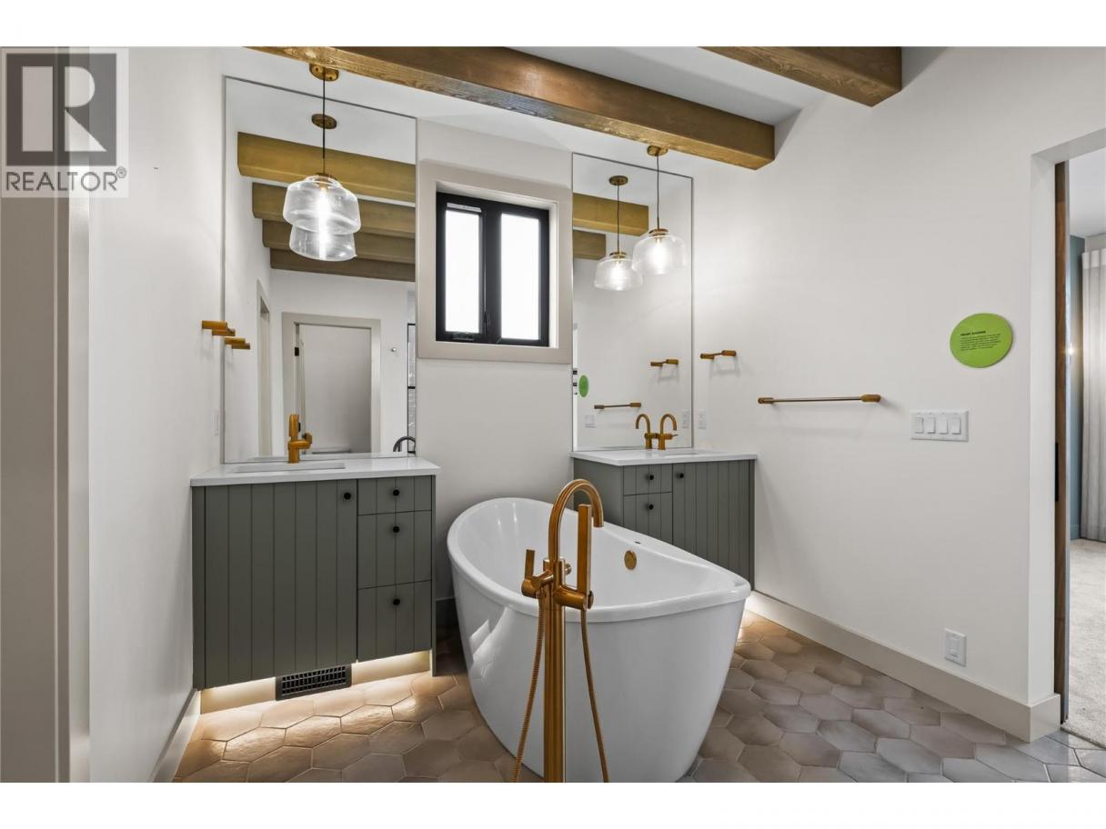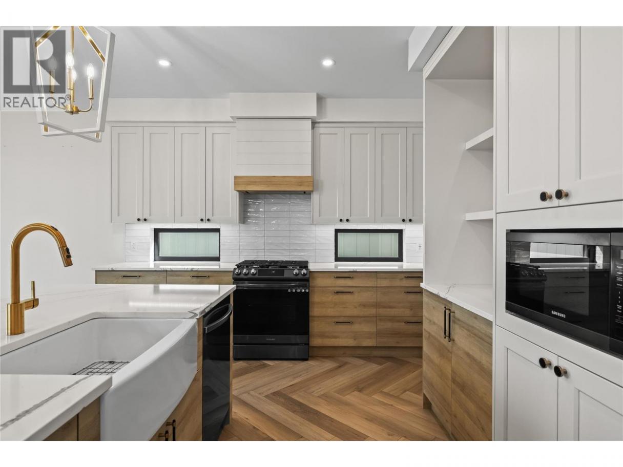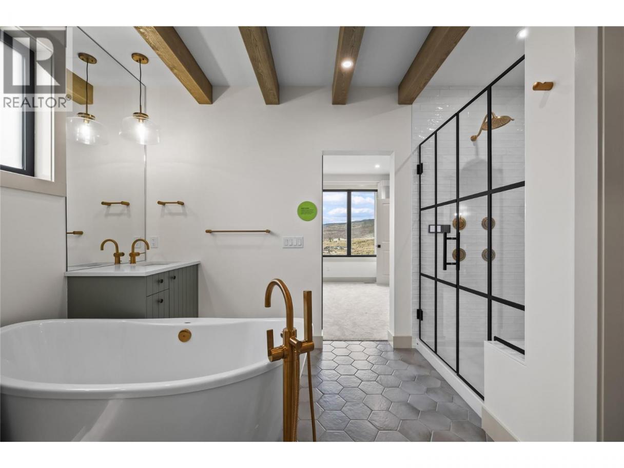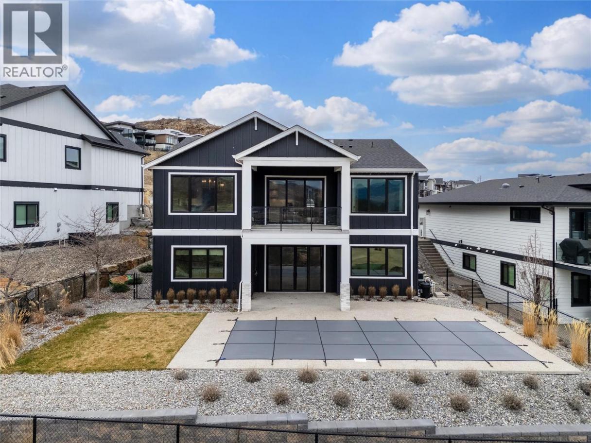 Discover this stunning former show home by Carrington Homes, now available in Trailhead at The Ponds, one of the most sought-after communities featuring Upper Mission Kelowna This stunning new build offers luxury living, thoughtful design, and exceptional indoor outdoor lifestyle in the heart of Upper Mission Kelowna real estate. The main level features a bright open concept layout with soaring ceilings, expansive windows, and a designer kitchen with quartz countertops, premium appliances, oversized island, and stylish dry bar, perfect for entertaining. Step onto the covered deck and enjoy breathtaking valley and mountain views. The main floor primary suite is a private retreat with a spa inspired five piece ensuite and walk in closet. The walkout basement is built for lifestyle and entertainment, offering a cozy family room plus a dedicated golf simulator room under a suspended slab with its own wet bar. Outside, your backyard oasis awaits with a 12x28 saltwater pool, auto cover, deck jets, and covered patio ideal for enjoying Okanagan summers all with a beautiful lakeview! Thoughtfully designed for modern living, featuring a mudroom dog wash, built-in pet station, and functional storage throughout. Located near top schools, parks, and trails, this is a rare opportunity in Upper Mission Kelowna. Simply move in and Enjoy Kelowna Life. (id:6769)