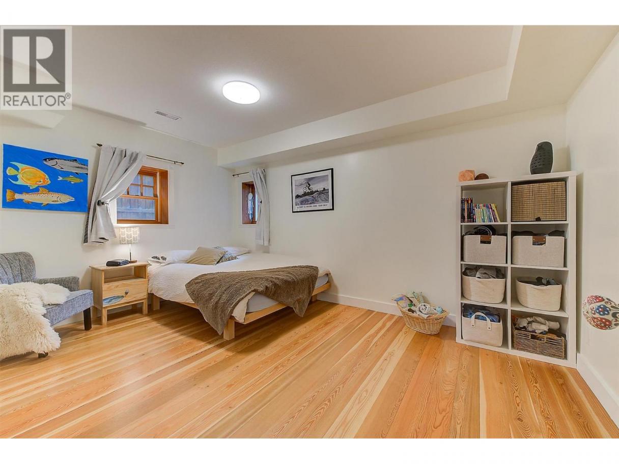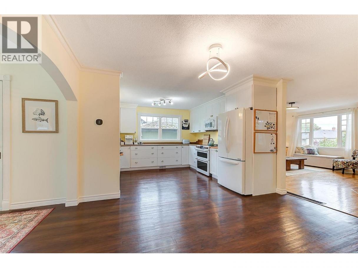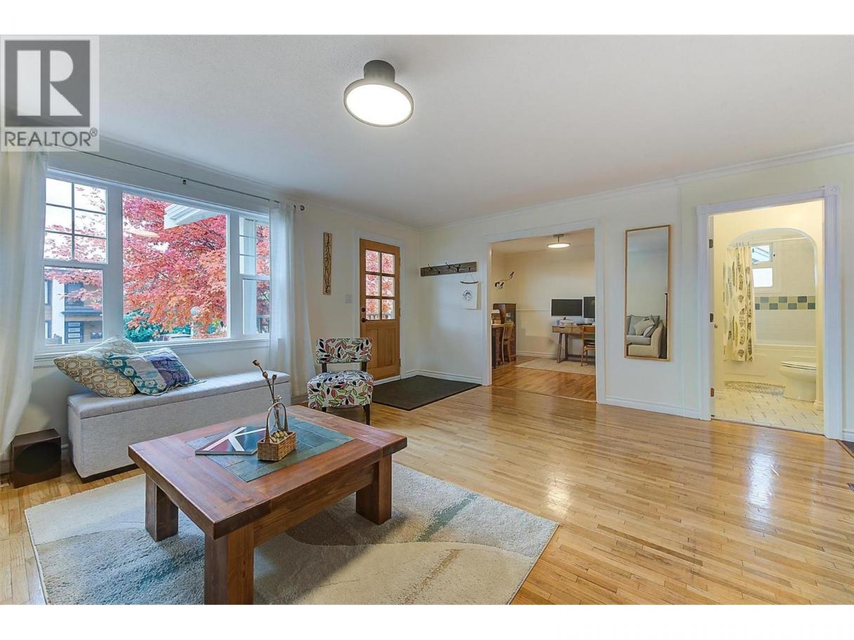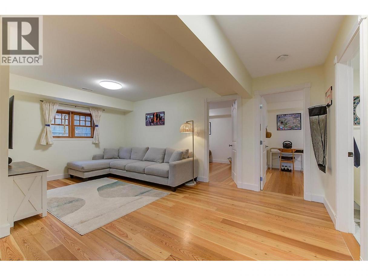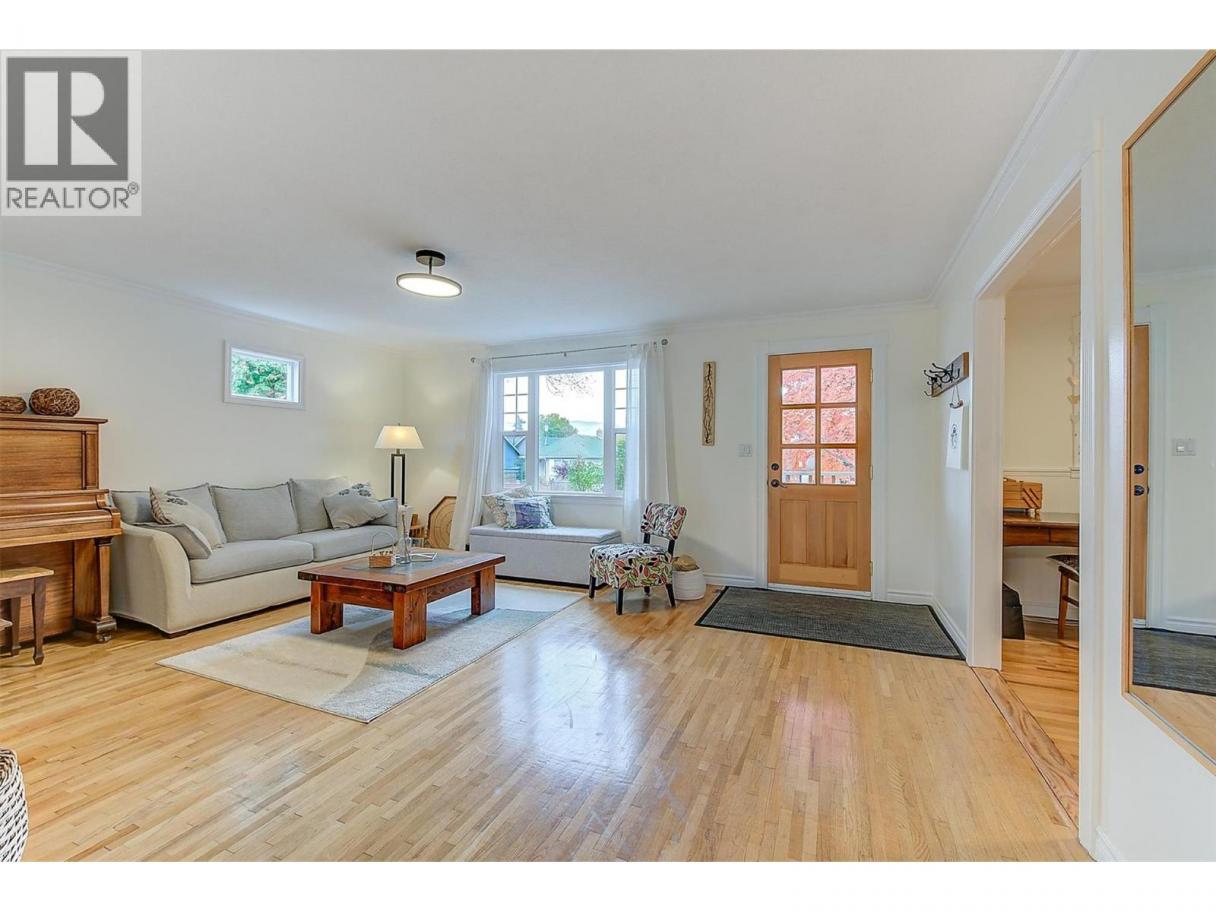 LIVE ONLY STEPS FROM KNOX TRAILS, LAKE AND BEACH. EXTENSIVELY RENOVATED Character home with Kitsilano Vibe. This home blends restored charm with modern comfort..just move in! Solid wood posted fencing, mature landscaping and a covered veranda deck create standout Curb Appeal. Inside you’ll find restored oak hardwood, extensive warm fir floors and trims, crown mouldings, wood-encased windows and curved archways. The bright main floor offers a spacious living room, big and bright front family room (or could be made into 4th bedroom). Large white Shaker wood kitchen with copper Café appliances. View of Knox mountain from sink. Huge separate dining area. Main floor Primary bedroom features fir floors, custom floor-to-ceiling built-ins and picture window view toward Knox. Large feature Back Bay window foyer overlooks back yard, with open fir stairs down. Downstairs offers a full grade-level daylight basement with amazing Suite potential — 2 large bedrooms, Family room, Updated 3-piece bath with heated tile and pebble stone shower. Huge mudroom. Updated Hi-eff furnace, Central Air, PEX plumbing, 200 AMP Electrical with 2 panels, 3 Yr old 5.74KW SOLAR PANELS for Energy and Green Utility Cost savings! Private backyard with raised gardens, stamped patio, cedar outdoor shower and heated chicken coop. 2023-built Heated Sports 1 Car Garage/workshop) with on-demand hot water. Quick possession possible. Couple minute walk to the Trails of Knox Mountain, Park and Beach, Lake and Town. (id:6769)