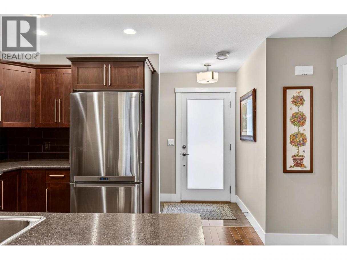 Welcome to one of North Kelowna’s best kept secrets, Eleven70 Brant! This exclusive 18-unit townhouse development, is minutes from downtown, but tucked away on a hill offering you ultimate privacy, and city views. This 2 bed & den + 1 bath home is the perfect alternative to condo living. From the moment you walk in you will fall in love, we promise! The functional floor plan offers open concept living, with a spacious kitchen complete with stainless appliances including a gas stove. The den off of the kitchen is a great multi-use flex space, that can be used as an office, kids play area, or guest room. The cozy living room gives you direct access to the stunning backyard space. It truly is your own little oasis, with room to BBQ, garden, sit out on your patio furniture and relax! This community has geothermal heating and cooling (field is owned by Fortis and fee is included in your strata), and natural gas on-demand hot water. There’s space for 2 vehicles parked side by side (1 covered). It truly is about the lifestyle here in the North end! Bike to work or downtown and enjoy the breweries, restaurants, shopping, Knox Mountain and all of the amazing local amenities Kelowna has to offer. (id:6769)