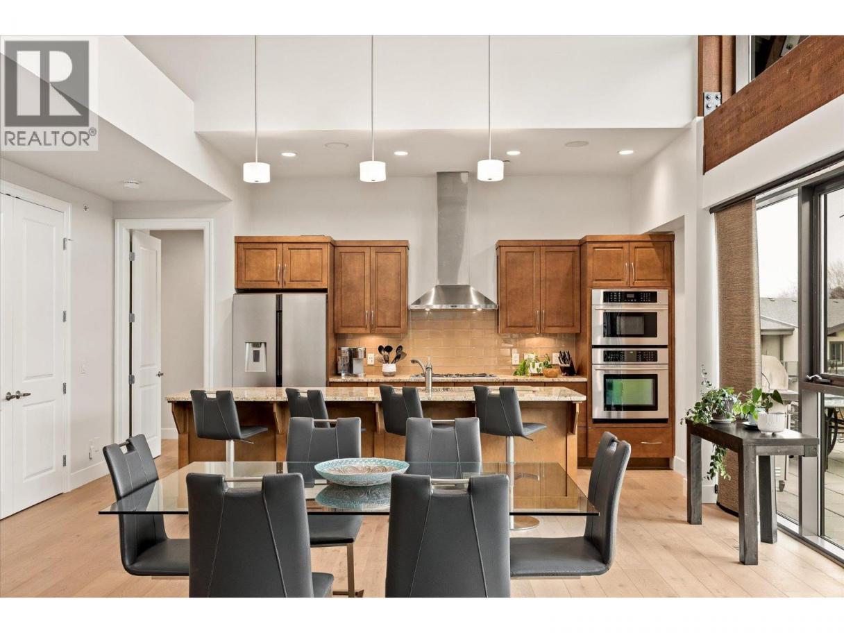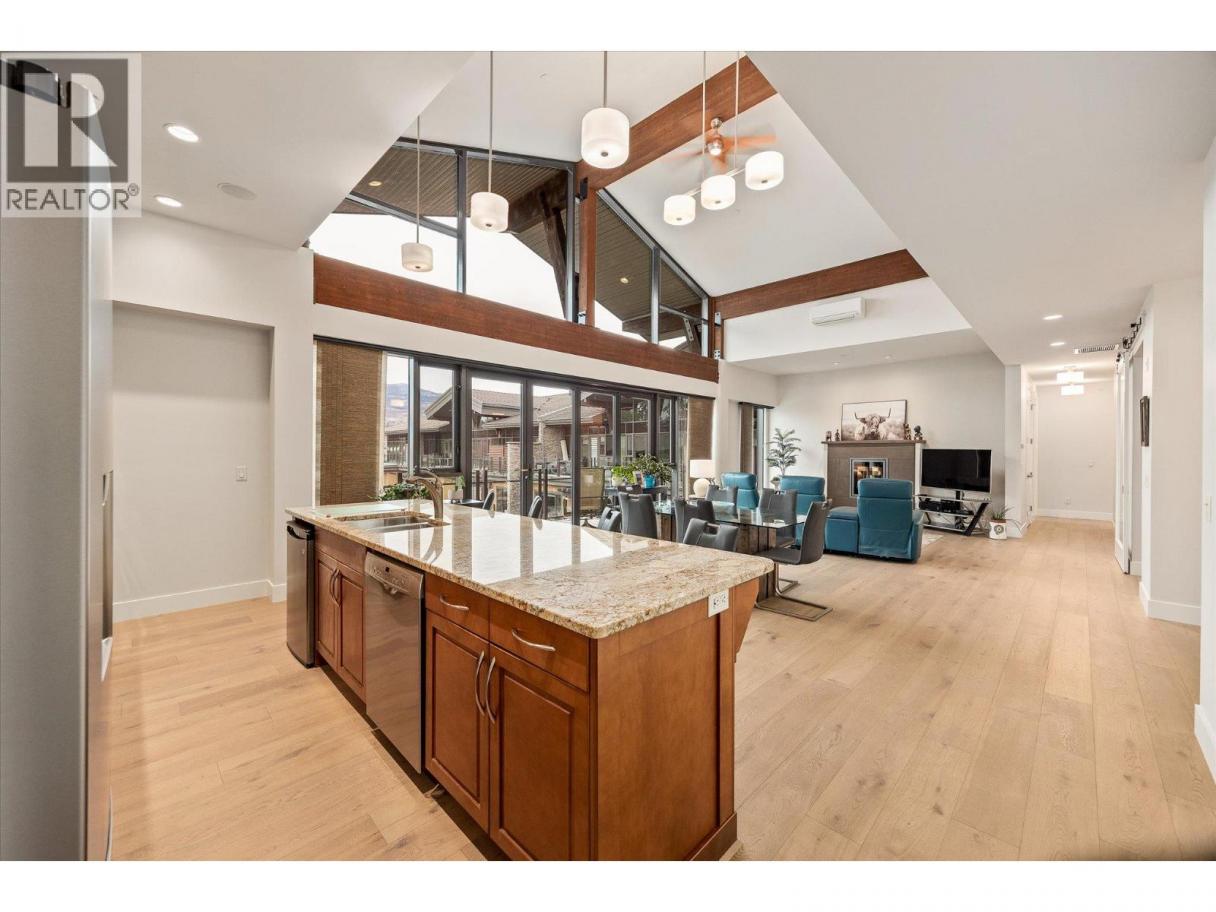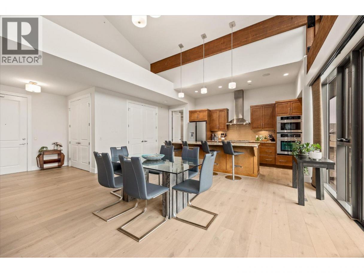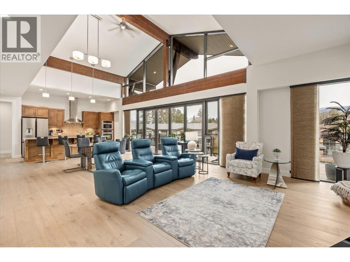 Top-floor penthouse living at Southwind at Sarsons. Offering over 2,020 sq ft of single-level living, this beautifully maintained and updated 2 bed + den, 2 bath residence delivers the space of a home with the ease of condo living. A functional split-bedroom layout, soaring vaulted ceilings, and expansive windows create a bright, open feel throughout. The open-concept kitchen, dining, and living area is anchored by a large island and a stunning 25-ft Nano Wall, opening seamlessly onto an 835 sq ft east-facing deck overlooking quiet, landscaped gardens with mountain views. With access from both bedrooms and the main living area, the deck becomes a true extension of the home ideal for morning coffee, outdoor dining, and entertaining. Recent updates include new hardwood and carpet (2023), fresh paint (2023), and electric blackout blinds in both bedrooms. Enjoy no stairs, generous living space, and lock-and-leave convenience, all within a meticulously maintained community offering resort-style amenities including an indoor pool, gym, and beautifully landscaped grounds. A rare opportunity to enjoy penthouse living without compromising space, comfort, or lifestyle. (id:6769)