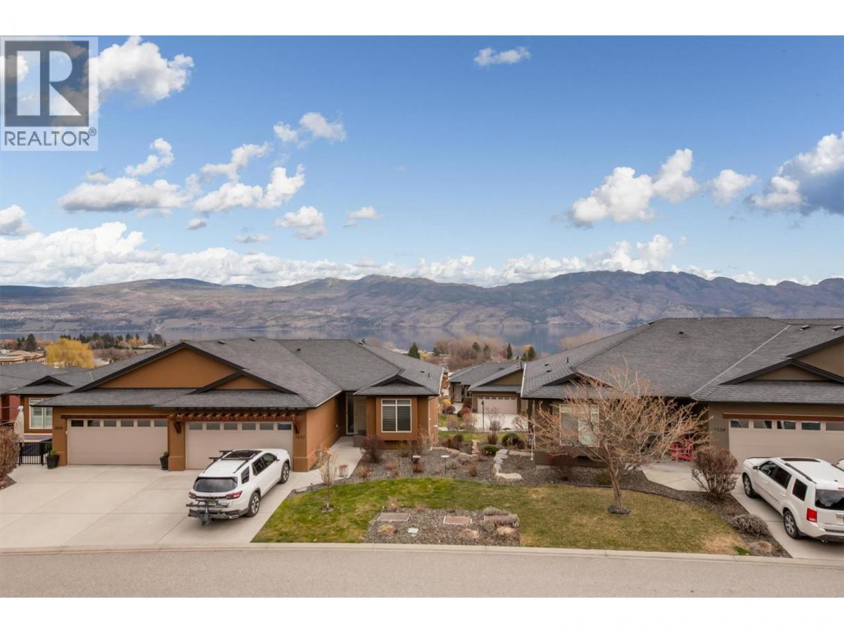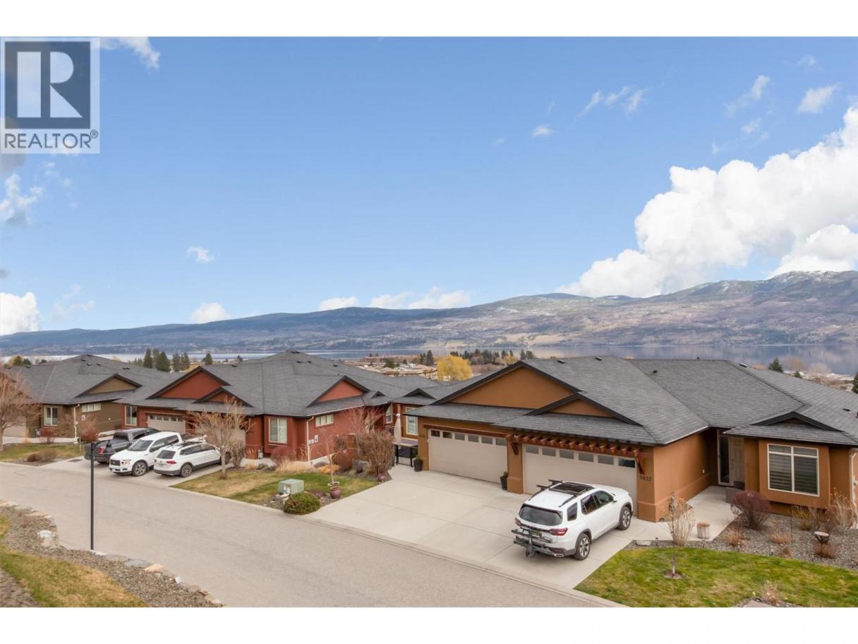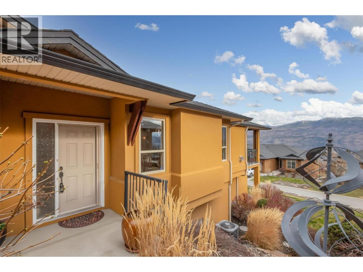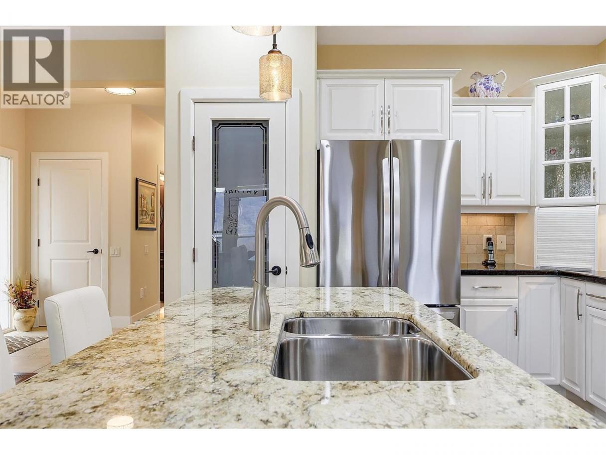 One of the largest homes in Sonoma Pines! This well maintained semi-detached home offers 3 bedrooms + den, 3 bathrooms, and a double car garage, just minutes from Okanagan Lake. Bright open concept main floor featuring a den, powder room, and spacious living/dining area. The kitchen impresses with granite countertops, a large island, pantry, and newer stainless steel appliances. The living room includes a gas fireplace and access to a view deck with motorized blinds and beautiful lake and mountain views. Main floor primary bedroom with walk-in closet and ensuite with double sinks and walk in shower. Laundry on the main with access to the oversized 400+ sq ft garage. Fully finished lower level includes a rec room with lake views and covered patio, 2 bedrooms, full bath, and hobby room (currently set up with free standing model train). Additional features: built-in vacuum, hot water tank (2022), recently serviced furnace, elegant main floor tiles, engineered hardwood flooring and new backyard rock wall (landscaping to be completed in Spring). Located in the desirable Sonoma Pines community at Two Eagles Golf Course, close to shopping, restaurants, and recreation. Clubhouse amenities include fitness room, library, billiards, and social spaces. RV & boat parking available. (id:6769)