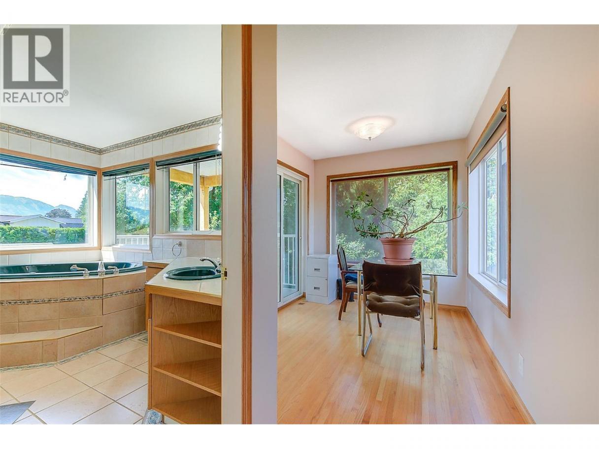 Country living just steps from the lake. Set on one of the area’s most desirable streets, 3982 Hitchner Road offers a rare combination of privacy, usable land, and easy walkable access to the shoreline. This 0.3-acre property backs onto a peaceful creek and is surrounded by orchards, while being just one block from two sandy beaches and only minutes to town amenities. The 2,026 sq ft home offers 3 bedrooms plus a den, 2 full bathrooms, and a flexible layout with potential for a fourth bedroom. The spacious primary suite features two private balconies overlooking neighbouring orchards. The main level includes a country-style kitchen with hickory cabinetry, bright living space with views of mature trees, and a cozy den with direct access to the backyard. Downstairs provides 386 sq ft of additional space with a separate entrance, suitable for a home office, studio, or guest area. Recent updates include new roof, high-efficiency furnace and central A/C, water softener, private and shared water licences, and connection to city sewer. The property offers a large deck, hot tub, mature trees, and an oversized garage with ample parking for multiple vehicles, RV, and boat. Located on a quiet, established road known for larger lots, orchards, and close proximity to the lake, this is a well-kept property with space, privacy, and flexibility. (id:6769)