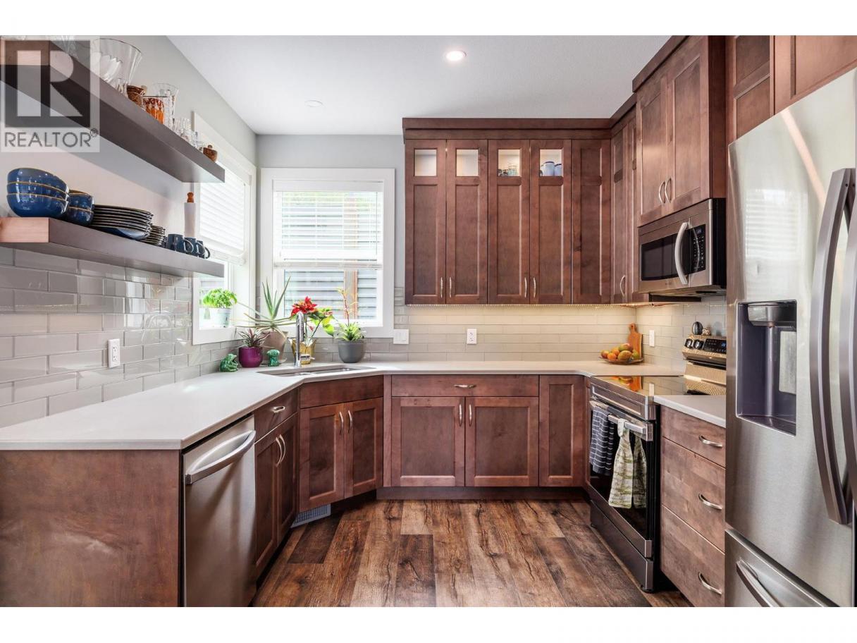 Newer Craftsman style 4 bed, 3.5 bath home in a friendly, family oriented neighbourhood. Custom built with large windows that fill the home with natural light, this residence offers a warm and welcoming feel throughout. The south facing backyard is fenced and private, perfect for relaxing or entertaining. A double car garage provides plenty of space for vehicles and storage. Enjoy the nearby neighbourhood park Blair Pond Park featuring pickleball courts and a playground. Conveniently located close to Watson Road Elementary School, Dr. Knox Middle School, and Kelowna Secondary School, making it an excellent choice for families. Measurements are from I- Guide - please verify if important. 2 Property -Strata is self managed and $300 per month for Property Insurance. (id:6769)