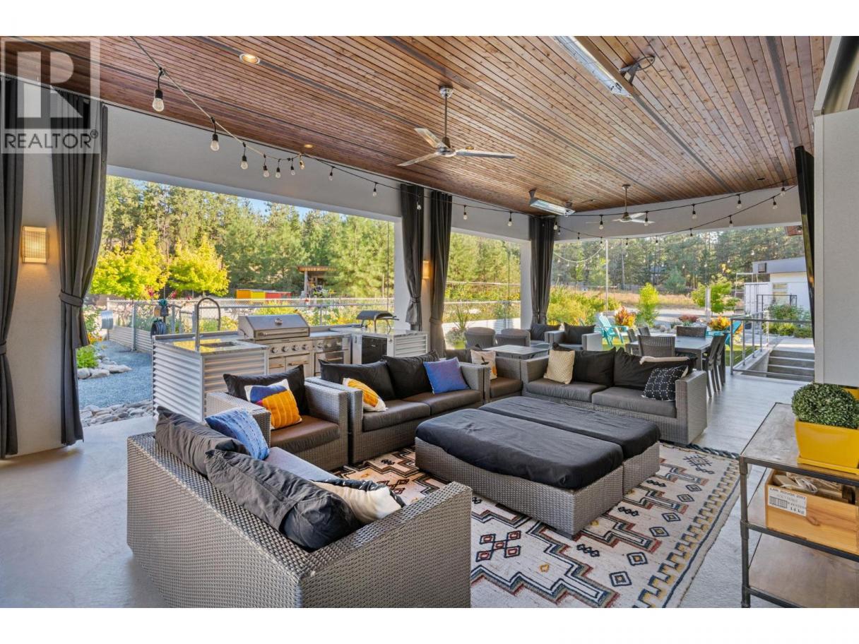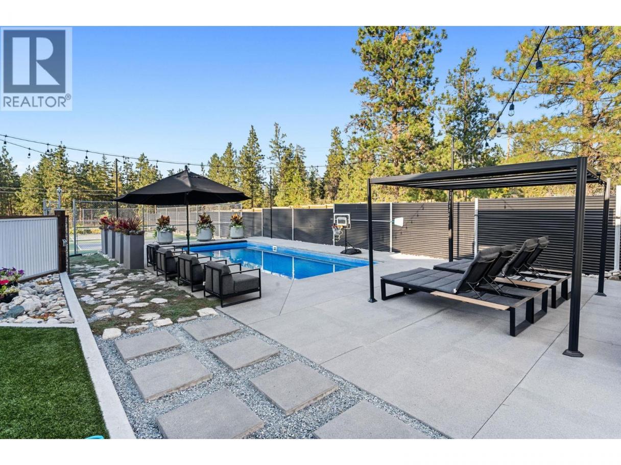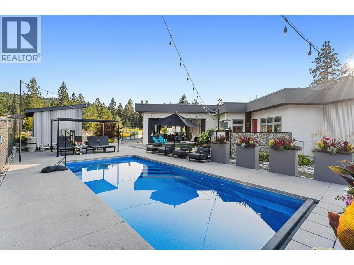 Looking for luxury? This secluded South East Kelowna rests on 2.47 acres zoned RR1- not ALR- an anomaly in this acreage enriched neighborhood surrounded with easy access to trail systems, golf, wineries, and Kelowna amenities! A true resort property - featuring multi-generational living spaces thanks to a legal suite, detached shop, a swimming pool, two hot tubs, pickleball court all fused with a vibrant organic honeyberry /haskap farm with $30k in potential income. The custom rancher features two separate self-contained residences yet is internally connected ideal for multigenerational families. The main home features a full basement with 4 total bedrooms plus a legal 1-bedroom suite—each side finished with quality throughout- polished concrete floors, bamboo cabinetry and premier appliances. Both overlook and share the resort inspired backyard anchored by an elaborate outdoor covered patio kitchen facing swimming pool fun creating the perfect venue for seamless indoor-outdoor living. An additional detached shop features ample storage, walk-in refrigeration storage, and in-law 1 bed 1 bath office space. Clean architectural lines, abundant natural light, and exceptional craftsmanship define the home’s airy, modern aesthetic. Non-ALR zoning opens doors for potential development,, making this a rare offering for discerning buyers, boutique farmers, or those seeking upscale rural living with a sustainable twist. Come see this exceptional resort style property! (id:6769)