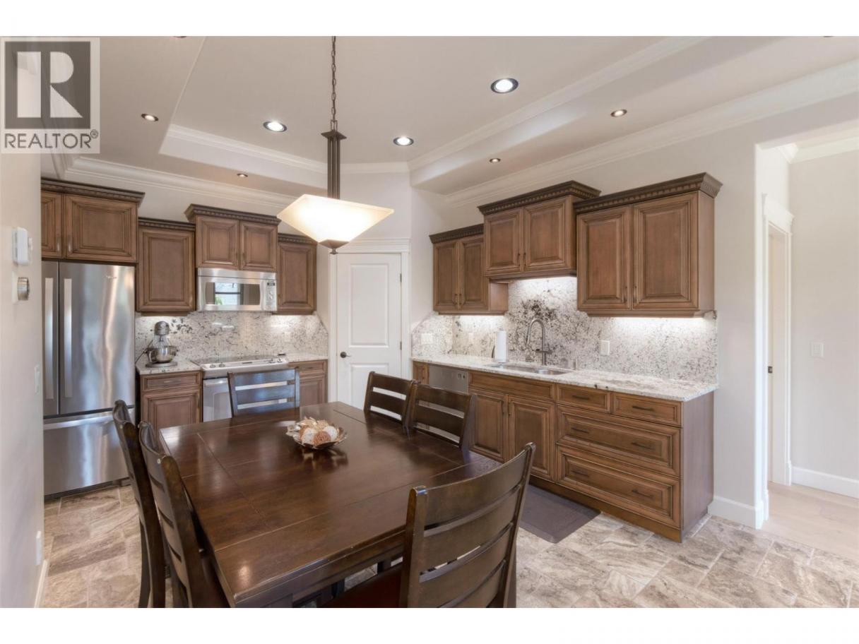 Situated along the prestigious Abbott Street Corridor, this beautiful half-duplex executive home offers refined living in one of Kelowna’s most sought-after neighborhoods. Surrounded by tree-lined streets, scenic bike paths, and just steps to multiple sandy beaches, boutique cafes, acclaimed restaurants, and KGH, this location delivers the ultimate Okanagan lifestyle. Inside, timeless finishes include crown molding, tray ceilings, rich hardwood floors, and custom wood cabinetry complemented by granite countertops. The open-concept kitchen, living, and dining areas are designed for effortless entertaining, with large windows flooding the space in natural light. The kitchen features stainless steel appliances and space for a full dining table, while sliding glass doors lead to a fully fenced yard and patio—perfect for outdoor dining or a safe retreat for pets. The main-floor primary bedroom offers a 3-piece ensuite for comfort and convenience. Upstairs, two additional bedrooms, a 4-piece bath, and laundry complete the home. An exceptional opportunity to own in the heart of Kelowna South, where upscale living meets (id:6769)