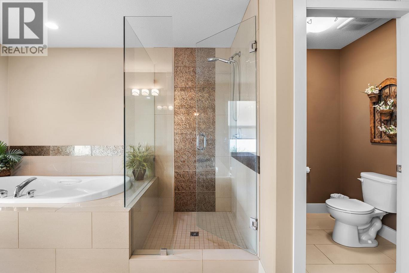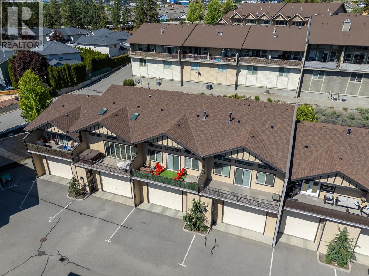 This former show home at Tesoro Arca stands out as one of the largest units in the complex. The RV sized heated garage stretches nearly 50 ft long with 14 ft ceilings, complete with epoxy flooring, a 30 amp RV plug in, sani-dump (a rare feature), RV water hookup, full workshop, bathroom & a mezzanine for an office or man cave (can be removed!). Inside, the home features an elevator servicing all three levels, vaulted ceilings, engineered hardwood flooring & a gas fireplace anchoring the open living space. The deck extends your living area outdoors and is equipped with water & gas hookups, along with wiring for a hot tub. The kitchen offers a wider layout than typically found in the complex, highlighted by an oversized island with bar style seating, soft close cabinetry, granite countertops, stainless steel appliances & a walk in pantry. The main floor also includes a bedroom, full bathroom, and a dedicated laundry room. Upstairs, the spacious primary bedroom is easily accessed by the elevator and features a generous walk in closet and a well appointed ensuite with granite countertops, dual sinks, a water closet, heated floors & a tiled walk in shower. Additional highlights include ample storage throughout, a prepaid lease & no Property Transfer Tax! Wider units like this are rarely available. Own one of the larger homes at Tesoro Arca with space to accommodate a 45 ft RV or boat. Ideally located just minutes from shopping, Two Eagles Golf Course & the shores of Okanagan Lake (id:6769)