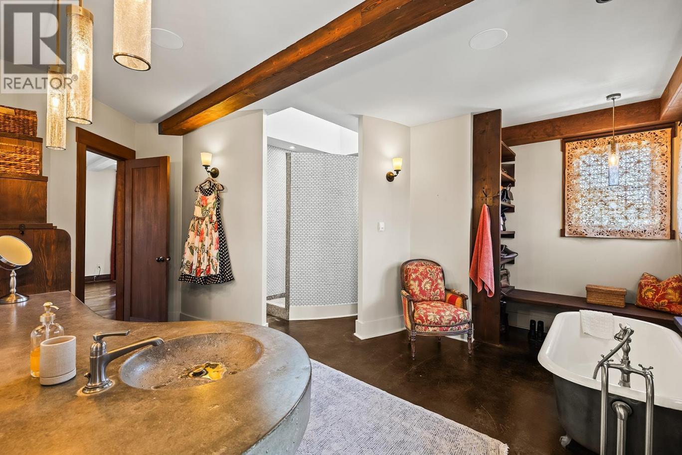Brownstone-Inspired Living Just Steps to Okanagan Lake & Pandosy Village. Tucked into one of the area’s most walkable and sought-after neighbourhoods, this distinctive custom built three-bedroom three bathroom plus office 3 storey residence offers a rare blend of Okanagan lifestyle and brownstone-inspired design, just steps to the lake and vibrant Pandosy Village amenities. The Pride of ownership is evident throughout this one of a kind properties, Architecturally striking, the home features concrete floors, exposed brick accents, vaulted ceilings, and reclaimed hardwood, creating a warm, sophisticated space with a refined, loft-style feel. The home offers stunning master suite with adjoining sitting room with fireplace. Top of the line appliances & window coverings, a secured carport with electric gate, and offers plenty of storage The outdoor living is exceptional and thoughtfully designed for how people truly live in the Okanagan. A stunning interlocking brick patio anchors the space, surrounded by pond beautifully curated gardens and multiple seating areas. The covered outdoor dining area invites long summer evenings of effortless entertaining, while the low-maintenance design, allows for a true lock-and-leave lifestyle. Ideal for those seeking to simplify without compromise, this home offers the perfect balance of character, walkability, and indoor-outdoor living in one of the region’s most desirable lake communities. (id:6769)