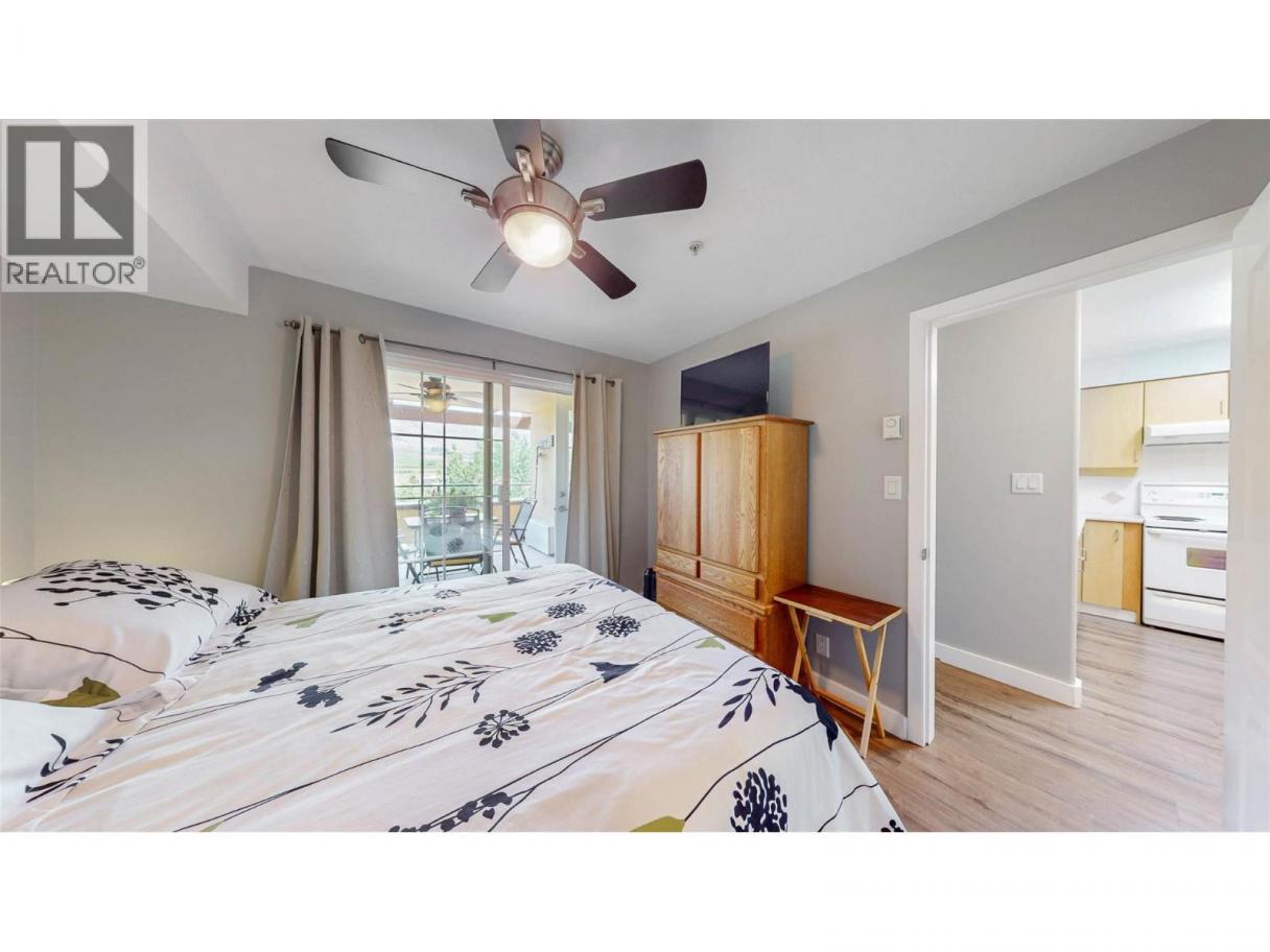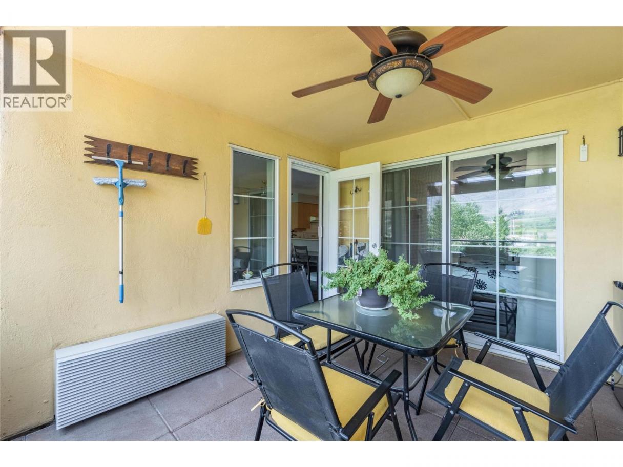 Quick possession available, move in for summer! Welcome to Casa del Lago. Discover easy living in this bright and inviting 1-bedroom + den condo in one of Osoyoos’s most desirable waterfront communities. Step inside to find a spacious open-concept layout featuring updated laminate flooring, in-suite laundry, and plenty of storage. The kitchen boasts classic hardwood cabinetry and a thoughtfully designed bar-style counter that connects perfectly with the dining and living areas—ideal for both entertaining and everyday comfort. Wake up to the morning sun streaming through large windows and sliding glass doors. The south-facing covered patio provides vineyard and mountain views—perfect for your morning coffee or relaxing evening meals. The primary bedroom is bright and airy, with direct patio access, while the versatile den offers space for a home office or extra sleeping area for visiting guests. Casa del Lago offers resort-style amenities including a clubhouse, outdoor pool, beautifully landscaped green spaces, and private beach with dock access—perfect for enjoying the Okanagan lifestyle to the fullest. Whether you're searching for a year-round residence, a seasonal getaway, or an investment property—this is your chance to join a friendly, sought-after community on the shores of Canada’s warmest lake. *All measurements are approximate, if important buyer to verify* (id:6769)
