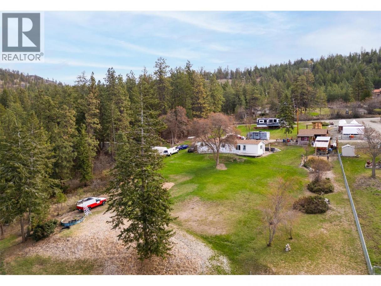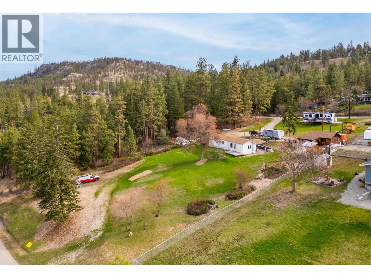 A rare opportunity to own a private 1.1 acre lake view property in one of Lake Country’s most desirable pockets, just moments from Lakestone! Tucked away on a quiet no-thru road, this well-maintained 2 bedroom 1 bathroom residence offers 985 sq ft of comfortable living, blending peaceful rural charm with convenient access to amenities just minutes away. The home features an open-concept layout that takes in the beautiful views of Okanagan Lake and surrounding mountains. Thoughtfully designed for privacy, the bedrooms are positioned at opposite ends of the home. A spacious foyer/mudroom leads to an extended covered patio finished with interlocking brick and framed by retaining walls, creating a private and inviting outdoor setting suited to both quiet enjoyment and entertaining. Two outbuildings provide flexibility for storage, workshop use, or hobbies, while the expansive property invites future possibilities. With additional access off Finch Road below, there is potential to build your dream home here while enjoying the existing residence. Ample parking accommodates all your recreational needs, including boats, trailers, and RVs—complete with a dedicated RV area featuring its own spacious view deck (trailer not included). Serviced by municipal water and septic, this is a great opportunity to secure a serene lifestyle property with both immediate appeal and long-term possibilities. (id:6769)