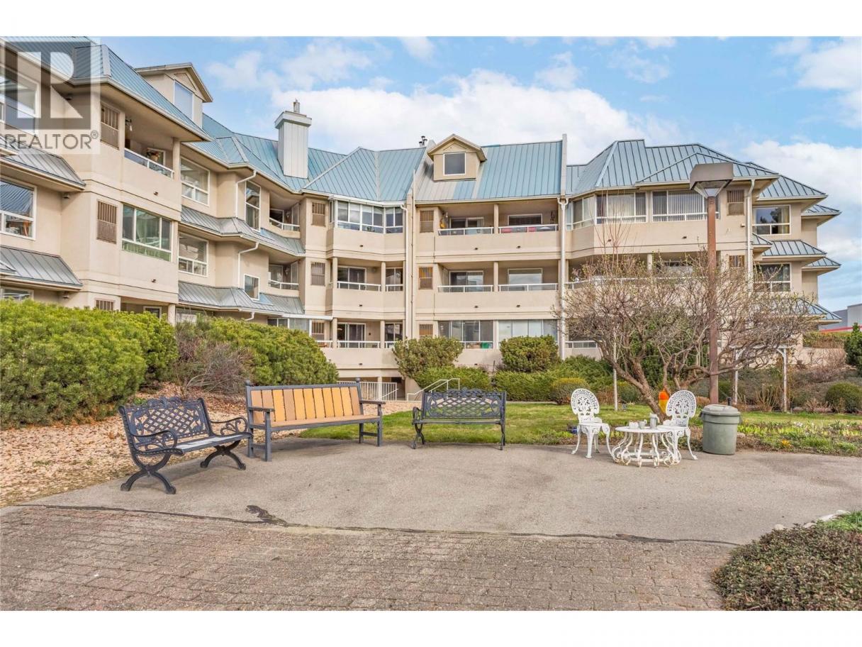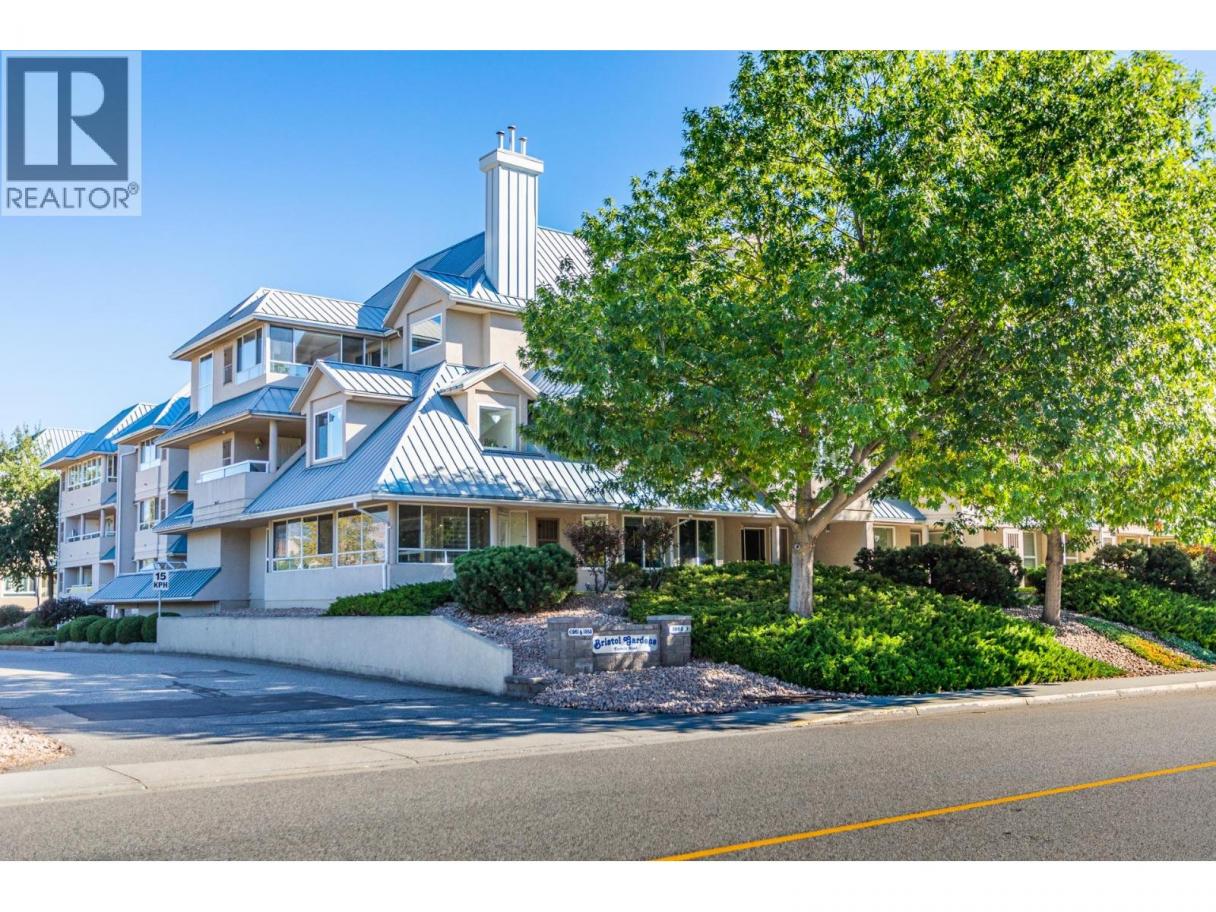 Welcome to Bristol Gardens! A beautiful 1,179 sq. ft. ground-floor residence that offers the spacious feel of a bungalow with all the conveniences of a professionally managed building. This impeccably maintained 2-bedroom, 2-bathroom home features a primary suite with a generous walk-in closet, a dedicated laundry room, and year-round central heat and A/C. The transition to outdoor living is seamless with a private walk-out patio perfect for pet owners or those who enjoy easy access without using the elevator. Speaking of pets, this friendly community welcomes one dog or cat, and the low strata fees make it a smart choice for both first-time buyers and those looking to simplify their lifestyle. The building truly stands apart with its exceptional amenities, including a workshop, a pool room, a library, a clubhouse, a heated parkade, and even a car wash bay. Best of all, you can leave the car behind as you are just a short stroll from Orchard Park Mall, Costco, Superstore, and an array of restaurants, with the scenic Mission Creek Greenway right nearby for your daily nature fix. Move in, and enjoy a home that truly makes life easier. (id:6769)