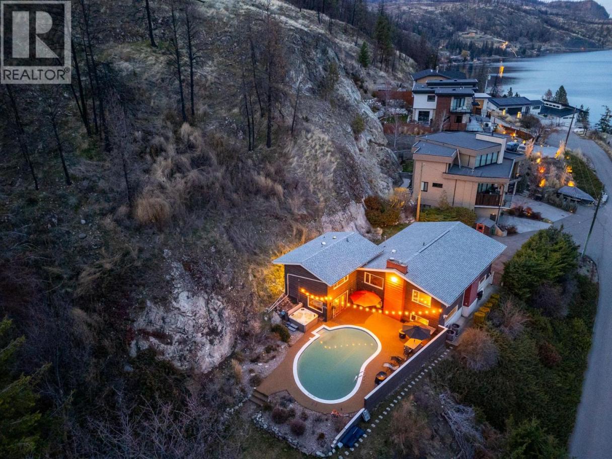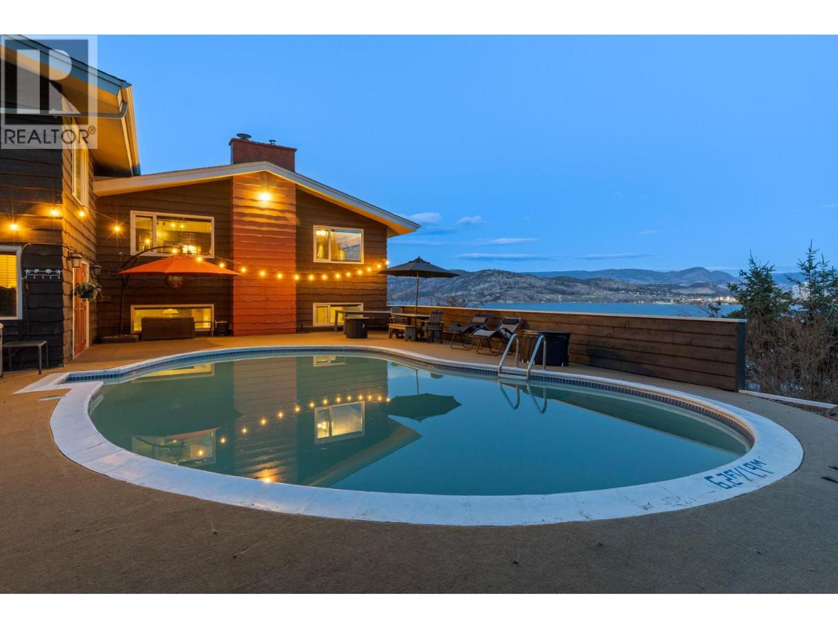1084 Westside Road presents a rare offering of refined Okanagan living, where timeless design meets an extraordinary natural setting overlooking Okanagan Lake. Set on a private 0.58-acre parcel and just minutes from downtown Kelowna, this beautifully renovated two-storey residence spans over 3,500 sq.ft. and captures uninterrupted lake views. Turn key, furnished, and thoughtfully designed for both elegant entertaining and everyday comfort, the open-concept interior is enhanced by vaulted ceilings, expansive windows, and a statement stone fireplace, while the kitchen is appointed with a stainless steel appliance package. The home offers four generously proportioned bedrooms and three bathrooms, including a serene primary retreat with a five-piece ensuite featuring dual vanities, a soaker tub, and walk-in shower. A self-contained in-law suite with private entrance provides flexibility for extended family or discreet income potential. Outdoors, the property transforms into a private resort-like setting, complete with a heated in-ground pool and hot tub perfectly positioned to take in the sweeping lake views, all framed by mature greenery and the natural backdrop of the mountainside. An expansive driveway accommodates multiple vehicles, including RVs, with ease. This is a distinguished residence offering privacy, scale, and an elevated lifestyle in one of the Okanagan’s most coveted locations. (id:6769)