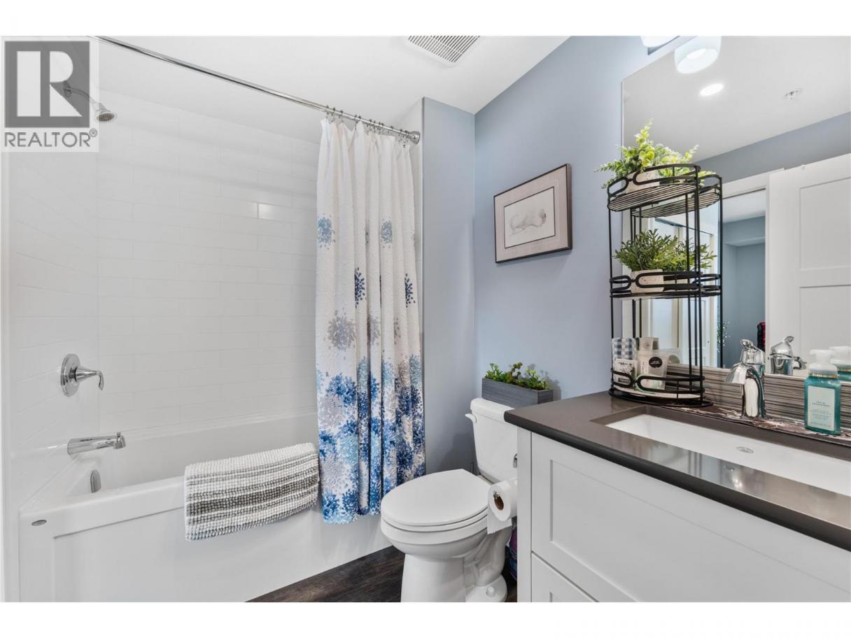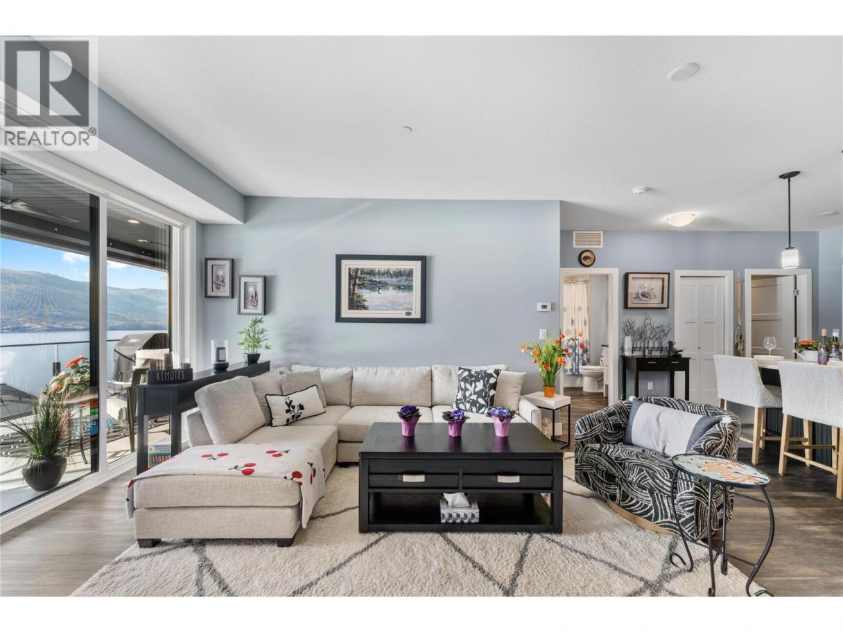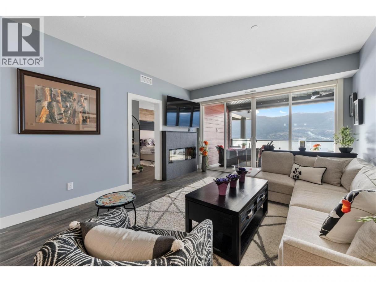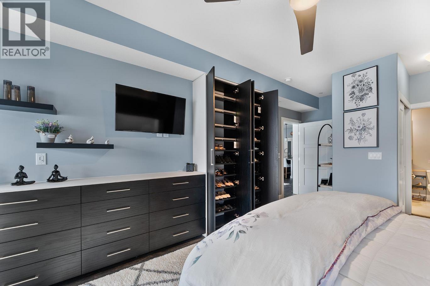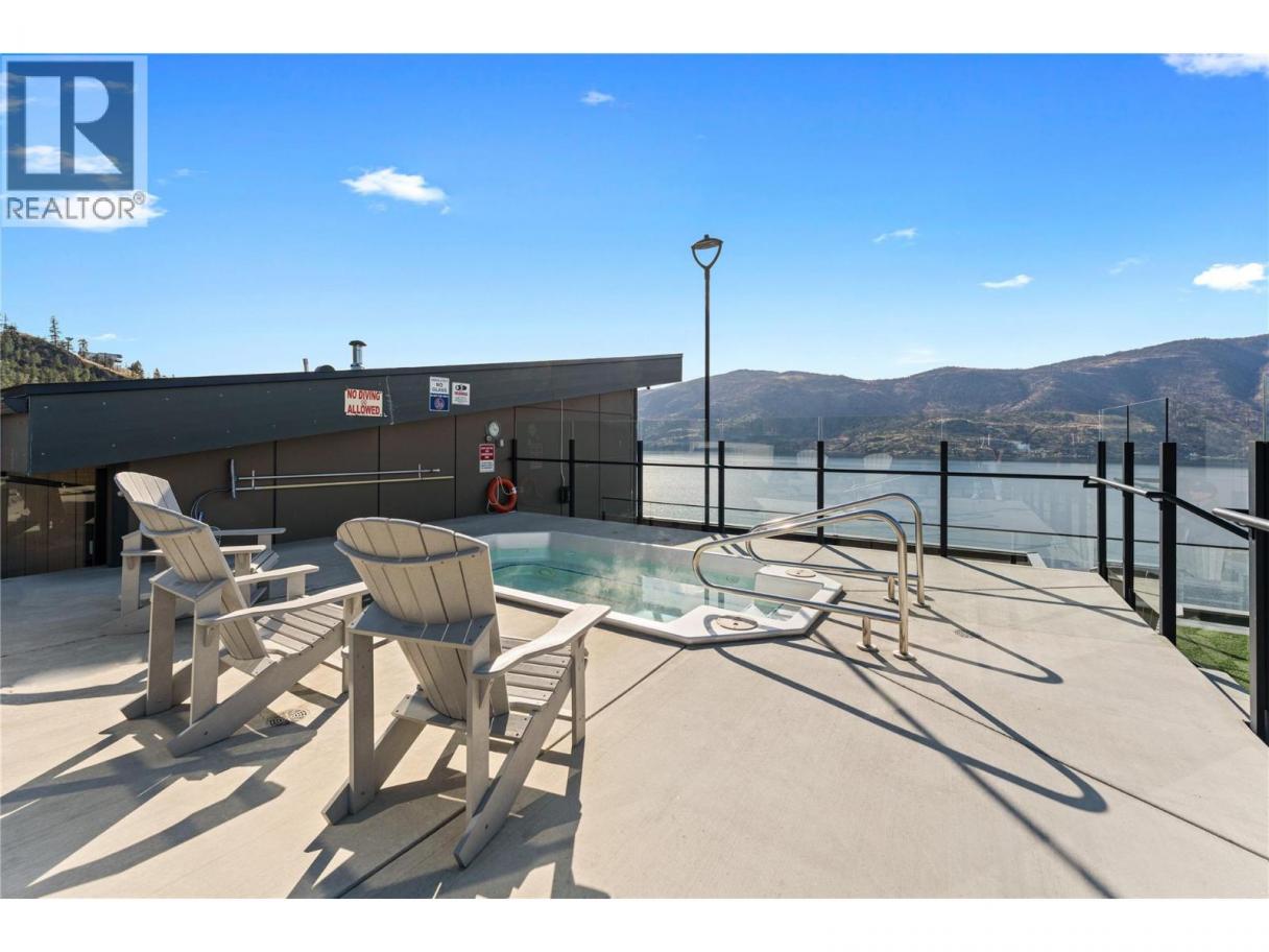 Stunning lakeview 2 bedroom, 2 bathroom condo offering two spacious balconies. This thoughtfully designed floorplan features custom finishes throughout, including over $30,000 in California Closets upgrades that add both function and a high-end, tailored feel. The chef inspired kitchen offers stainless steel appliances, custom cabinetry, a pantry, and a large island that anchors the open concept living and dining space, complete with a Dimplex electric fireplace and ideal for entertaining. The primary bedroom offers a private retreat with a beautifully appointed ensuite featuring a generous walk in shower, along with access to a covered deck perfect for morning coffee with breathtaking lake views. A second full bathroom with a bathtub provides comfort for guests or family. Enjoy year round comfort with forced air heating, central air conditioning, and on demand hot water, complemented by a fresh, modern designer colour palette that shows like new. An oversized storage locker on the same floor adds everyday convenience. At Granite, residents enjoy a rooftop hot tub outdoor pool, plus full access to McKinley Beach amenities including a marina, fitness centre, courts, gardens, and the Our Place Amenity Centre. Located 15 minutes to the airport, 20 minutes to downtown Kelowna, and 6 minutes to Glenmore shopping, this home offers the perfect blend of luxury, convenience, and lakeside living. (id:6769)