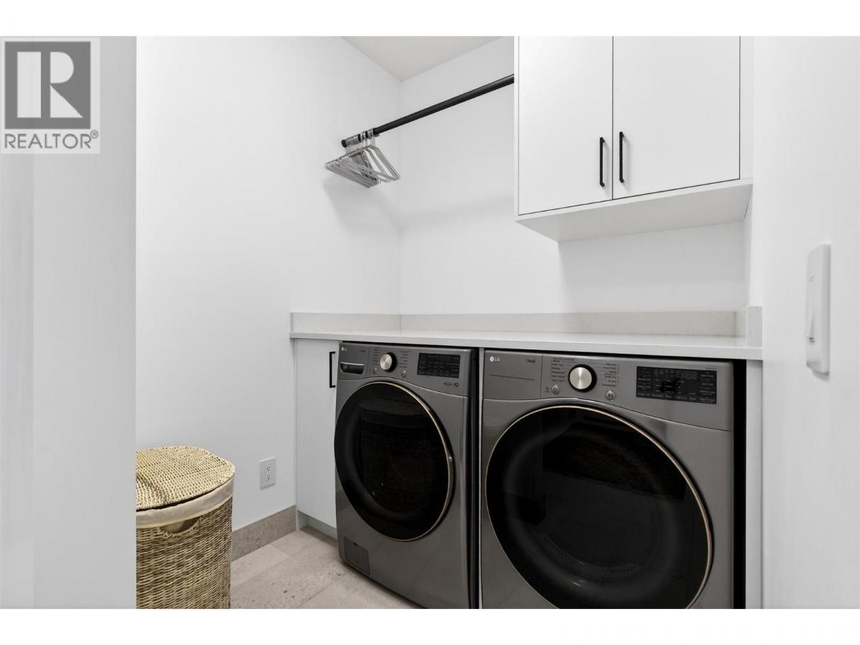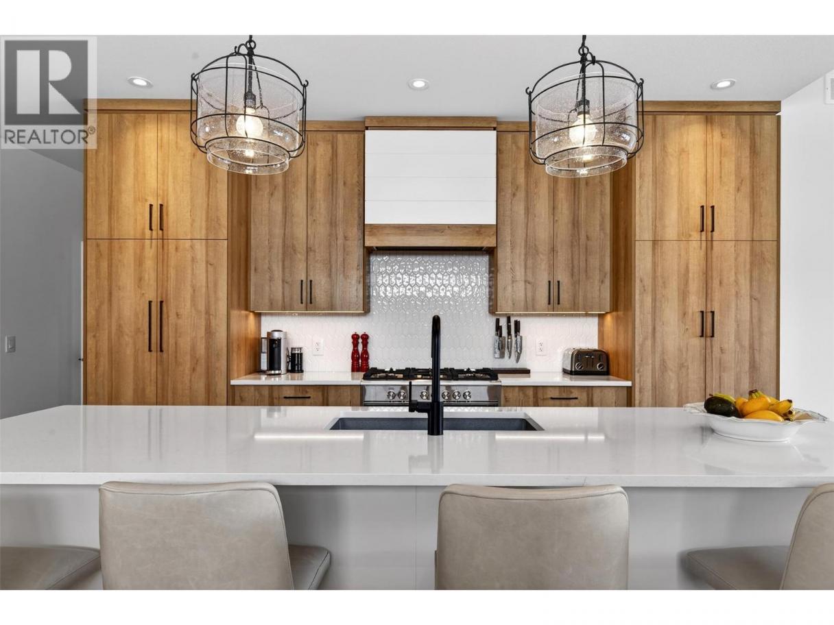 Perched above the sparkling waters of Okanagan Lake, this exceptional 4 bedroom walk-out rancher is a showcase of luxury, craftsmanship, and elevated Lake Country living. Spanning over 3,000 square feet this beautifully designed home captures breathtaking lake views from both levels and offers a seamless blend of sophistication and comfort. Soaring 9’ and 11’ ceilings on the main level, with 10’ ceilings below, create a bright, airy sense of grandeur throughout. The open-concept layout is enhanced by premium finishings, double patio doors for effortless indoor-outdoor flow, and two covered decks perfectly positioned to take in the spectacular setting. The designer kitchen is beautifully appointed with high-end integrated Fisher & Paykel appliances, quartz countertops, and thoughtful custom details, while the dining area is elevated with a dual-zone wine fridge and dimmable lighting for effortless entertaining. The living room is anchored by a stunning fireplace with a custom mantle and built-in shelving, adding warmth and style. Bespoke touches throughout, including a custom wall mural in the den and upgraded lighting in the primary bedroom, make this home feel truly special. With 4 spacious bedrooms, 2.5 luxurious bathrooms, sophisticated finishes, and an oversized double garage with room for all your Okanagan lifestyle essentials, this home offers the perfect balance of comfort and upscale design. Energy-efficient features provide year-round comfort, while the unbeatable location—just minutes from 7+ award-winning wineries—makes this an ideal lock-and-leave retreat or full-time luxury residence. Dare to compare—this is a rare opportunity to own a remarkable home that redefines modern Okanagan luxury. (GST paid) (id:6769)