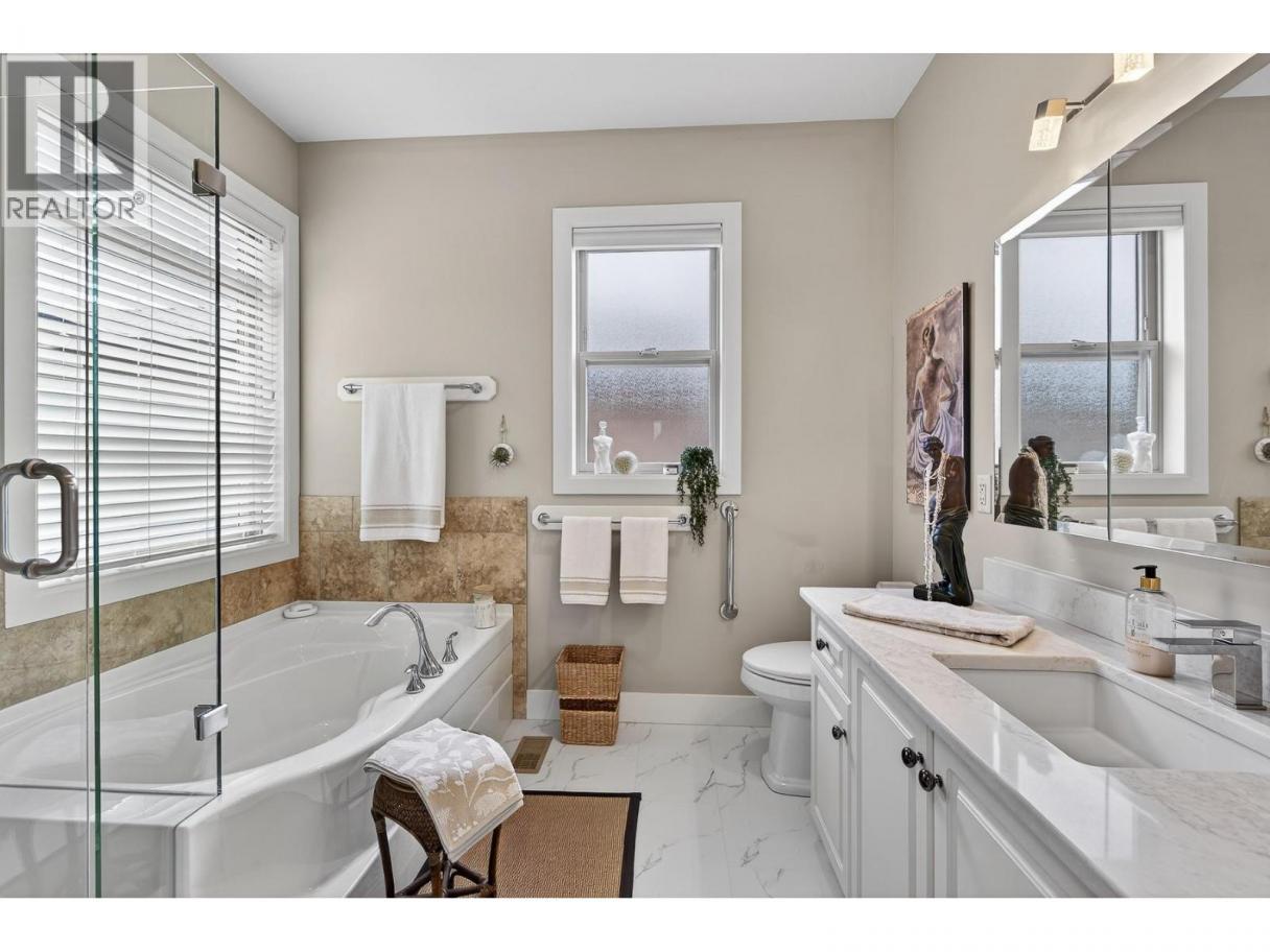 Welcome to Sonoma Pines—where easy living meets a touch of wow. Step inside and you’re instantly welcomed by a bright, open-concept space filled with natural light, rich flooring, and a cozy gas fireplace that sets the tone for relaxed everyday living. The kitchen is a standout, featuring sleek quartz countertops, stainless steel appliances, and plenty of room to cook, gather, and entertain with ease. From the main living area, step out onto your spacious deck—perfect for morning coffee or evening wine—while the private backyard offers a peaceful extension of your living space, ideal for gardening, pets, or simply unwinding. The primary suite is a true retreat, complete with a walk-in closet and a beautifully updated ensuite. Downstairs adds even more flexibility with two additional bedrooms, a den or office, and a full bathroom—perfect for guests or hobbies. Move-in ready and effortless, this home lets you skip the projects and start enjoying right away. All set within Sonoma Pines, offering a clubhouse, fitness room, and social spaces—just minutes to golf, wineries, shops, and Okanagan Lake. This is the lifestyle you’ve been waiting for. (id:6769)