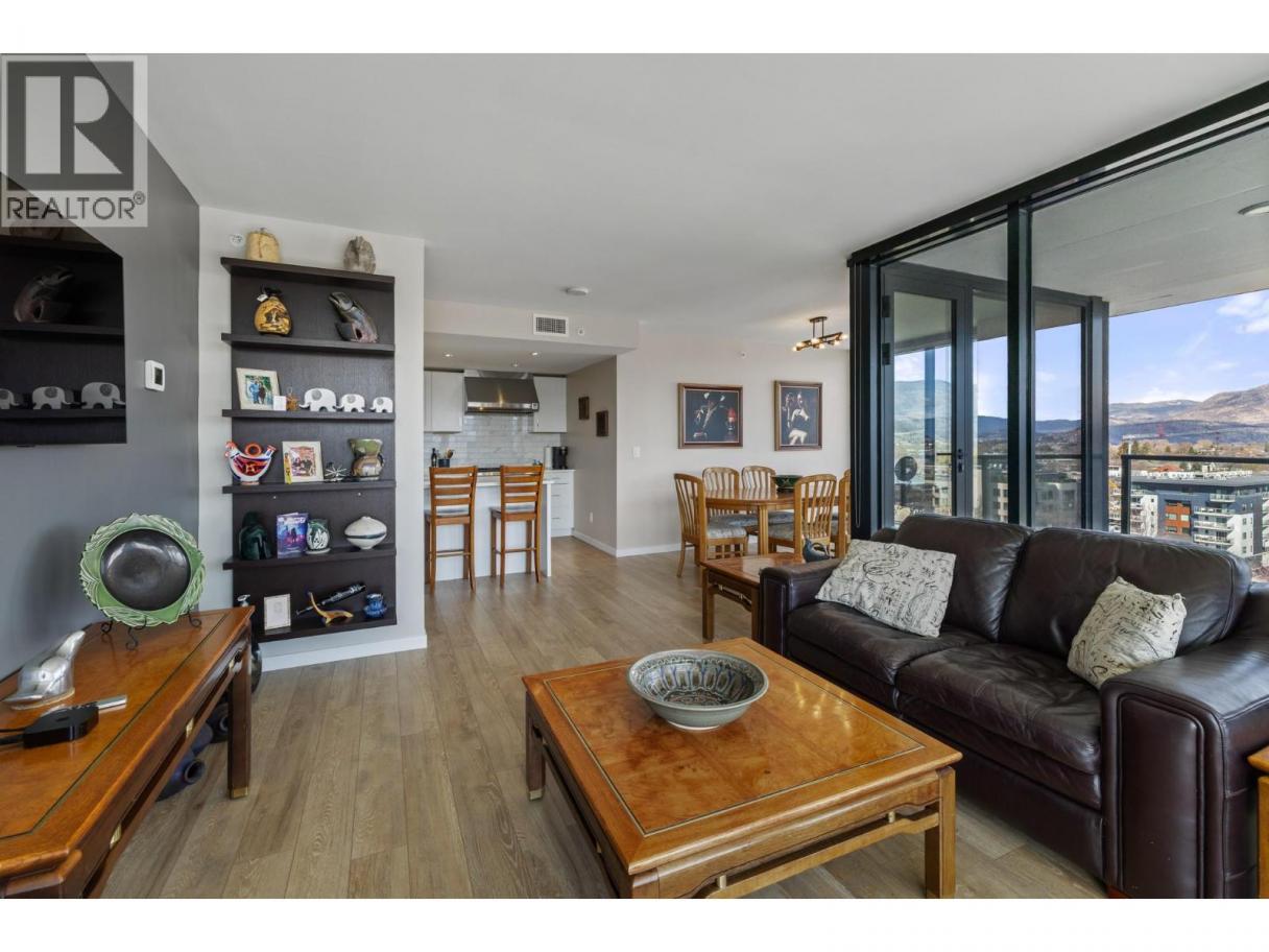 Welcome to the 9th floor of Sopa Square, ideally located in the heart of Pandosy Village—just steps to boutique shopping, cafés, restaurants, and Okanagan Lake. This 3-bedroom, 2-bathroom residence offers a northeast exposure, showcasing stunning views of the city, surrounding mountains, and the lake, while benefiting from the cooler, shaded side of the building—perfect for enjoying warm Okanagan summers. The open-concept living space is flooded with natural light through expansive floor-to-ceiling windows, framing the incredible views. The kitchen features quartz countertops, a Wolf gas range, stainless steel appliances, and ample storage, along with a convenient eat-in layout. Step out onto the spacious patio, accessible from two points, with plenty of room for multiple seating areas to take in both north and west-facing views. The king-sized primary bedroom includes a walk-through closet and a 4-piece ensuite with dual vanity, quartz counters, and a tiled shower. On the opposite side, you’ll find two additional bedrooms and a well-appointed main bathroom with dual vanity, tile flooring, and a separate tub and shower. Complete with underground parking, a storage locker, and access to resort-style amenities including an outdoor pool, hot tub, and fitness centre—this is urban Okanagan living at its finest. (id:6769)