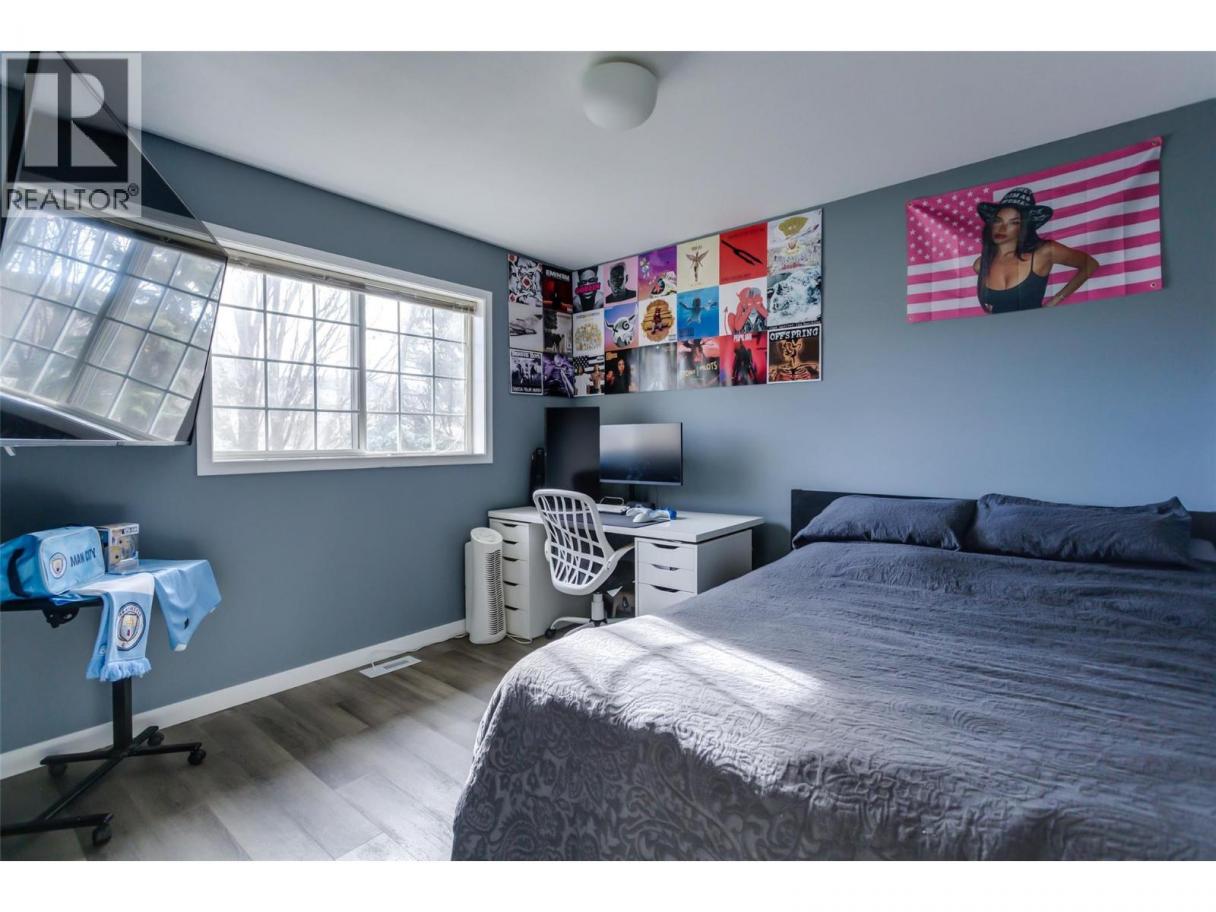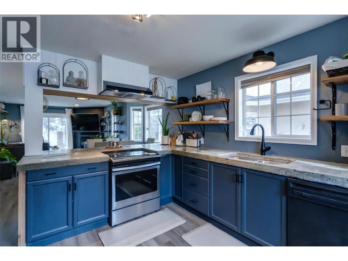 Four bedrooms. Glenmore location. A standout price for the space. A great opportunity for buyers looking for something a little different, with room to bring two pets (with restrictions) and three kids who can each enjoy their own private space. Extensively renovated since 2023, this home confidently steps outside the expected with industrial-inspired aesthetic and a high-efficiency dual-fuel heating and cooling system, including a 3-ton heat pump and modern smart-home climate control. The kitchen is a true statement piece, featuring concrete countertops, rich grey-blue cabinetry, open wood shelving, and an oversized peninsula with seating. The open-concept main floor is spacious with an easy flow between the kitchen, dining, and living areas and a convenient powder room for guests and in-suite laundry. The primary bedroom is also on this level, complete with its own ensuite! Upstairs, you’ll find three additional bedrooms and a full bathroom — the only four-bedroom layout in this complex, enhanced by a vaulted foyer that adds to the sense of space. Whether you need room for family, guests, or a home office, this flexible layout delivers. Additional features include updated fixtures, ample storage, an attached garage, and a private patio space for relaxing outdoors. Located in the highly sought-after Glenmore neighbourhood, Chelsea Gardens offers a quiet, established setting just minutes from shopping, schools, parks, hiking trails, UBCO, and Kelowna International Airport. (id:6769)