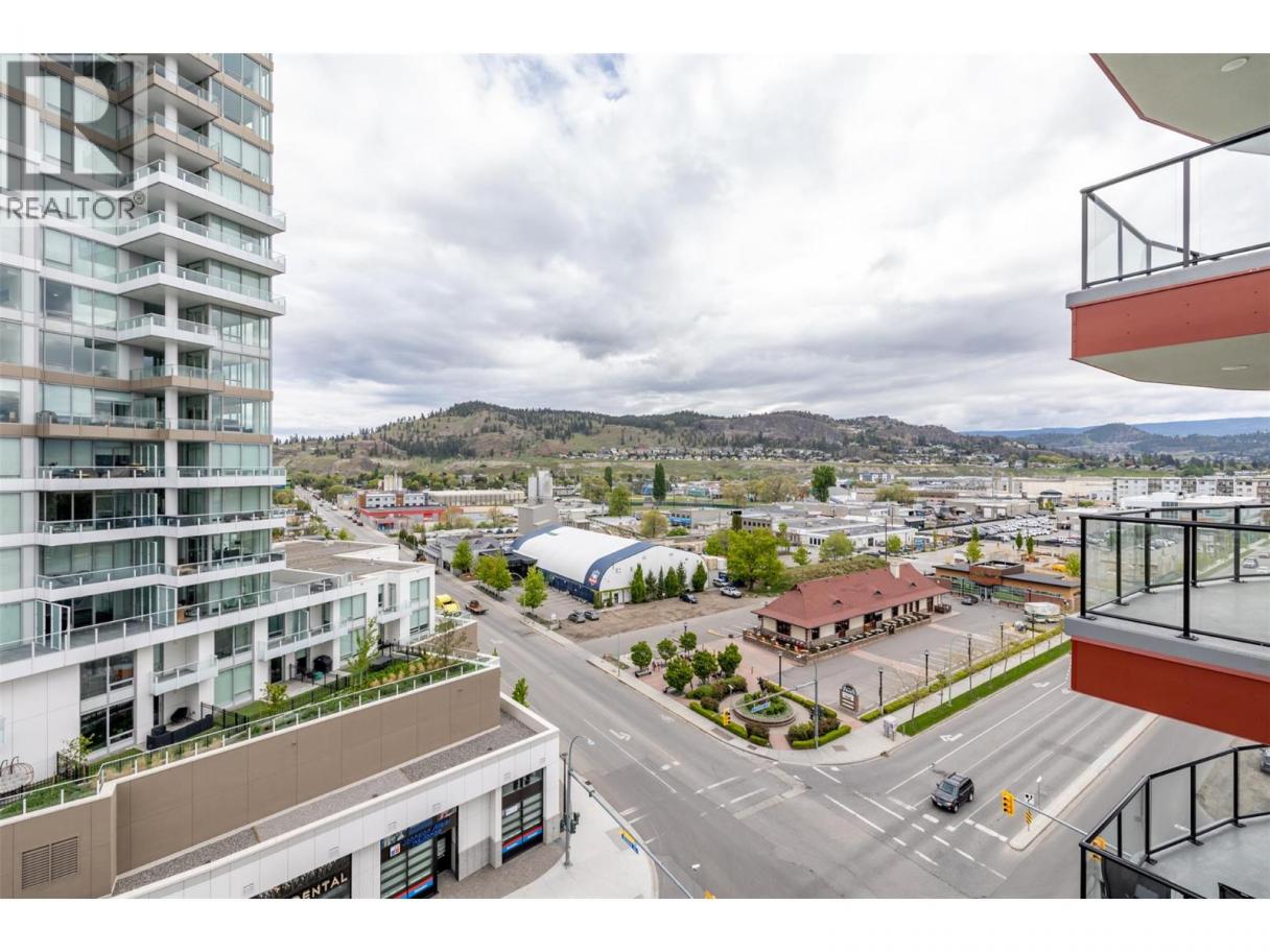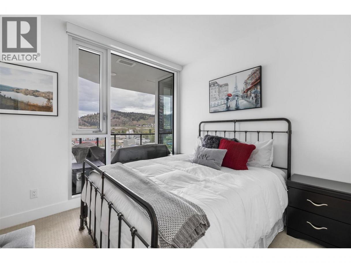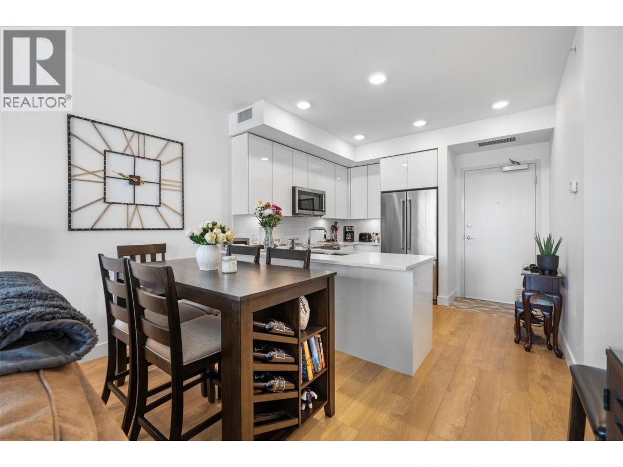 This spacious unit features 2 bedrooms plus den/bedroom, all surrounded by floor-to-ceiling windows that flood the apartment with natural light, creating a warm and inviting atmosphere. The entertainer's kitchen boasts KitchenAid stainless steel appliances, high gloss soft-close cabinets & sit-up island. The open-concept living and dining with natural light. The spacious master bedroom includes stunning ensuite with a large walk-in tile and glass shower. The second bedroom features ample closet space, while the den serves as a versatile work-from-home area or third bedroom. Ellis Parc offers an array of amenities, including fully-equipped gym, well-appointed boardroom, and outdoor terrace for relaxation and BBQ. Additional conveniences include in-suite laundry, covered secured parking stall, storage locker, luxury vinyl and tile flooring. Nestled in the heart of downtown Kelowna, Ellis Parc is just a short walk from restaurants, shopping, and Prospera Place, making it an ideal location for vibrant city living. (id:6769)