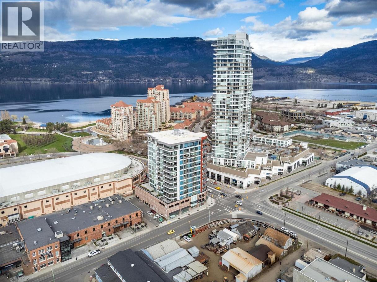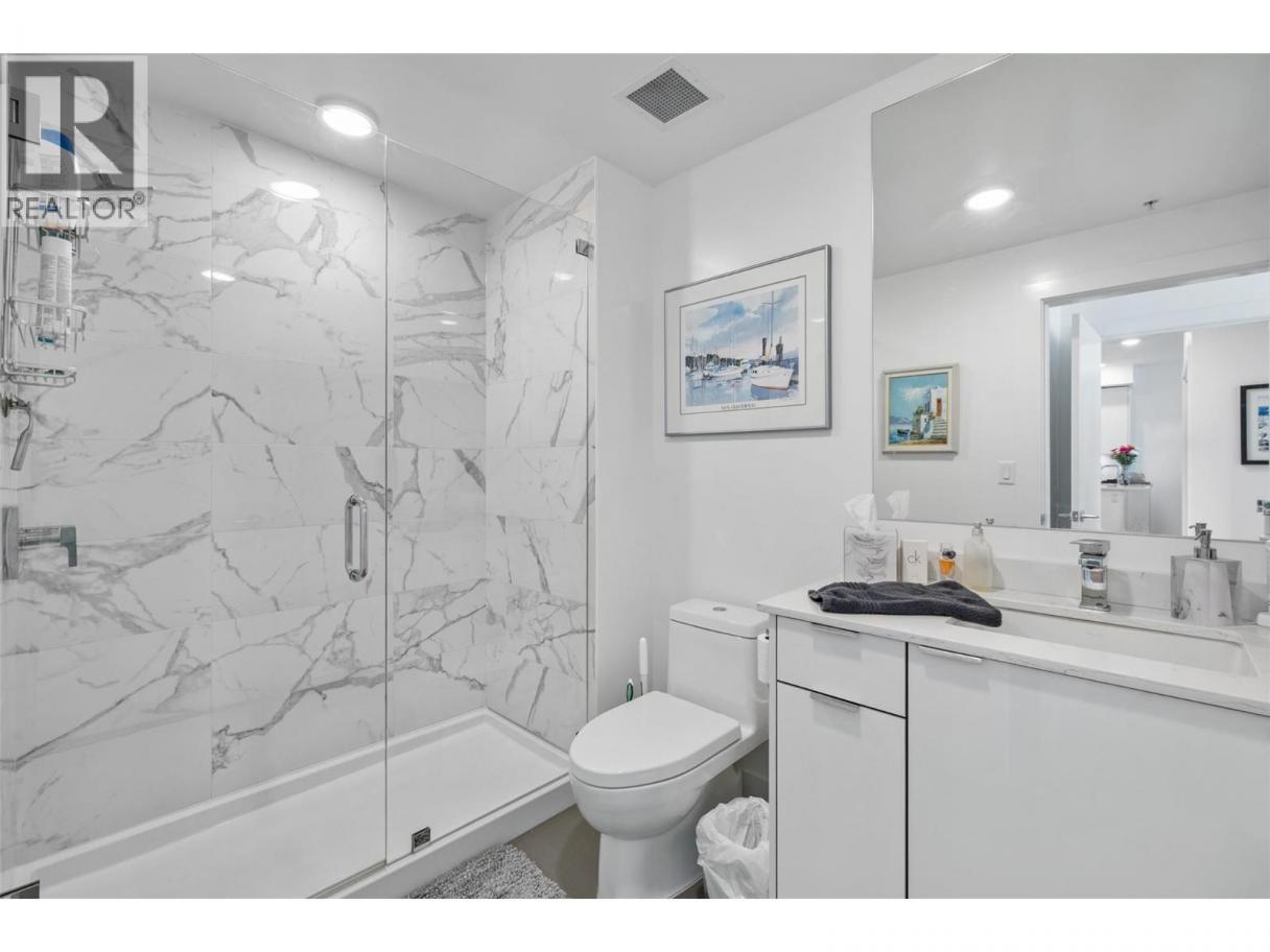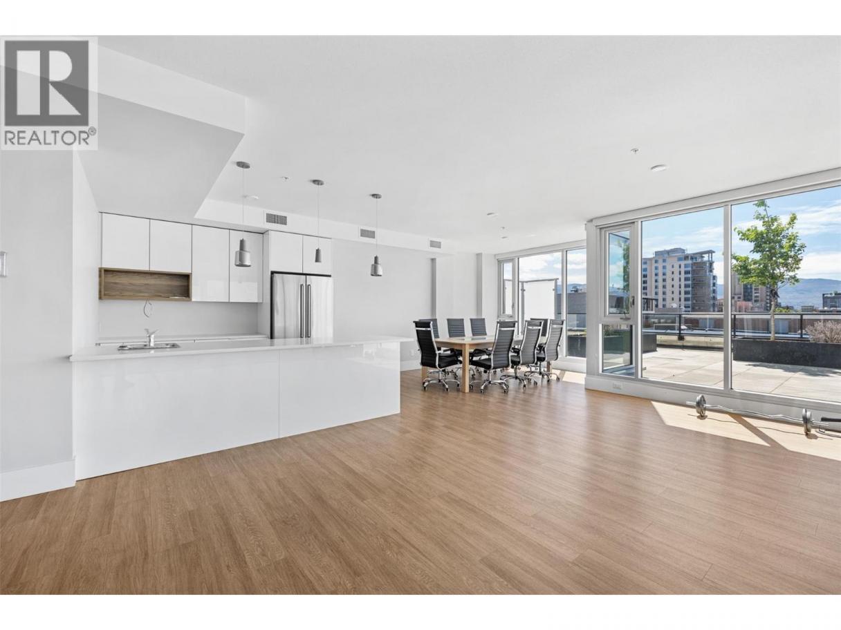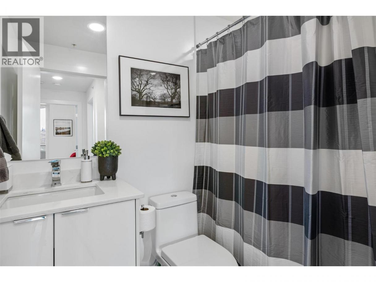 This spacious unit features 2 bedrooms plus den/bedroom, all surrounded by floor-to-ceiling windows that flood the apartment with natural light, creating a warm and inviting atmosphere. The entertainer's kitchen boasts KitchenAid stainless steel appliances, high gloss soft-close cabinets & sit-up island. The open-concept living and dining with natural light. The spacious master bedroom includes stunning ensuite with a large walk-in tile and glass shower. The second bedroom features ample closet space, while the den serves as a versatile work-from-home area or third bedroom. Ellis Parc offers an array of amenities, including fully-equipped gym, well-appointed boardroom, and outdoor terrace for relaxation and BBQ. Additional conveniences include in-suite laundry, covered secured parking stall, storage locker, luxury vinyl and tile flooring. Nestled in the heart of downtown Kelowna, Ellis Parc is just a short walk from restaurants, shopping, and Prospera Place, making it an ideal location for vibrant city living. (id:6769)