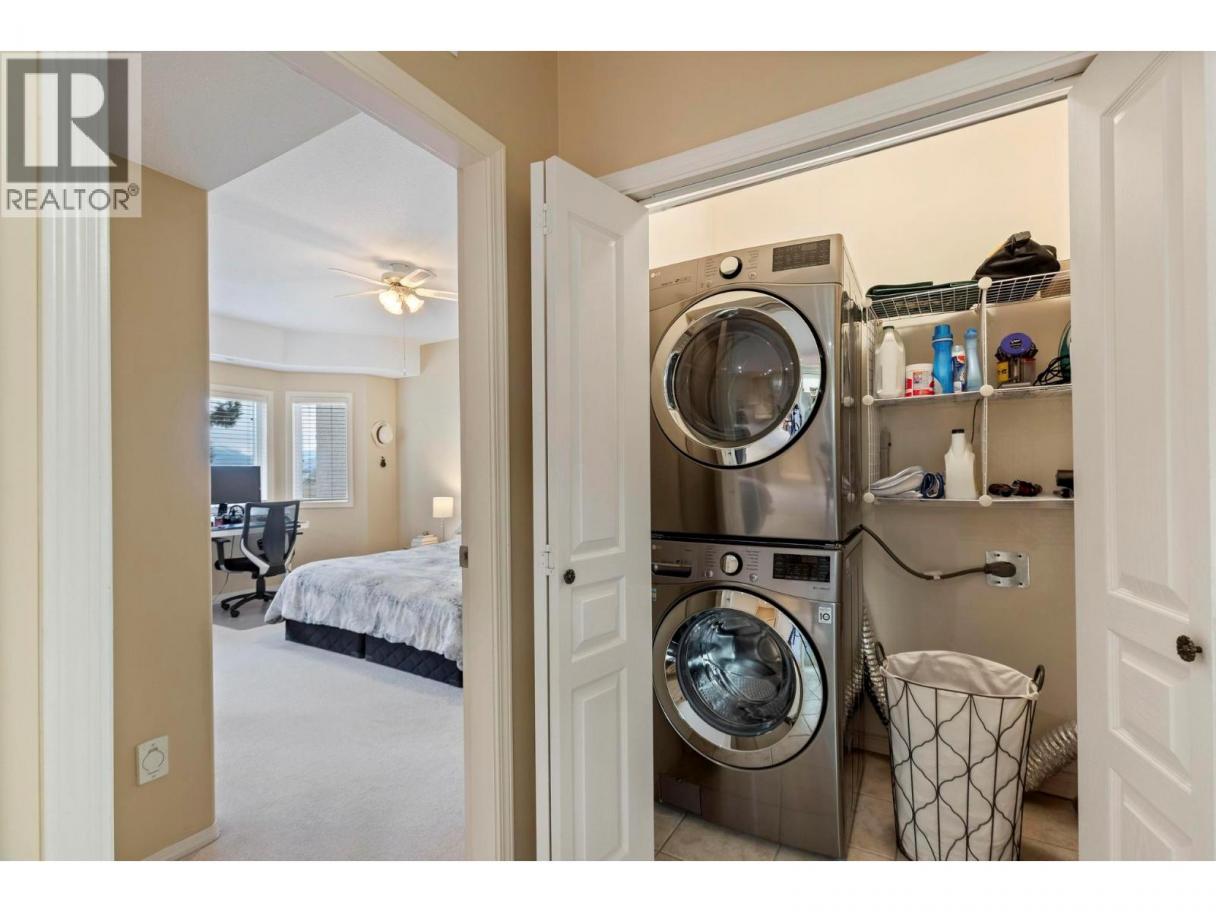 Welcome to The Arboretum! This non-age restricted complex is ready for you to call home. With all new paint & appliances/upgrades that include a new washer & dryer, fridge, stove, dishwasher & beautiful pot lights added throughout & new bathroom flooring. This well cared for 2nd floor gem faces the quiet side of the complex, featuring a split floor plan, plus a cozy gas fireplace. There is a gorgeous large covered back patio that overlooks a seasonal corn field on A1/ALR land & is fantastic for enjoying a truly peaceful setting like no other, plus very nice afternoon sunshine on those beautiful spring/summer days, with an easy to use electric awning on the patio to provide some shade when needed. This unit features a great formal dining space, central air, a secured underground parking spot & the convenience of having the storage locker right outside your front door. This complex has a wonderful central location where you can walk/bike to the Mission Creek Greenway, several schools nearby, local restaurants, grocery stores & shopping/retail. The Arboretum amenities give you the ability to enjoy an outdoor pool to stay cool in the summer, a hot tub to enjoy all year, fitness room to stay active, a communal clubhouse that features a full kitchen, a library & a pool table to use when desired.There is also a guest room on the 3rd floor that can be booked in advance for your visitors who may want extra privacy.This is also a pet friendly building with young families also welcomed! (id:6769)