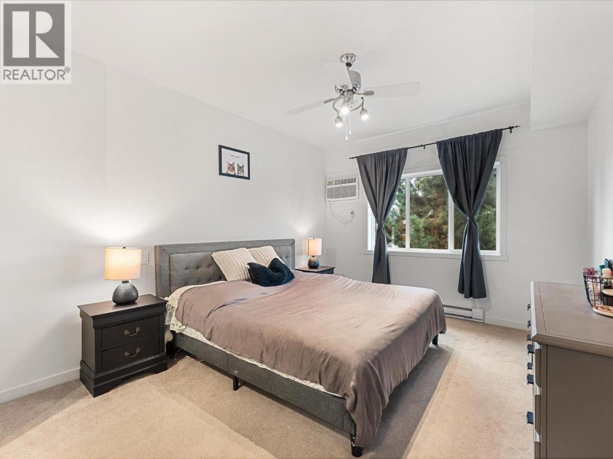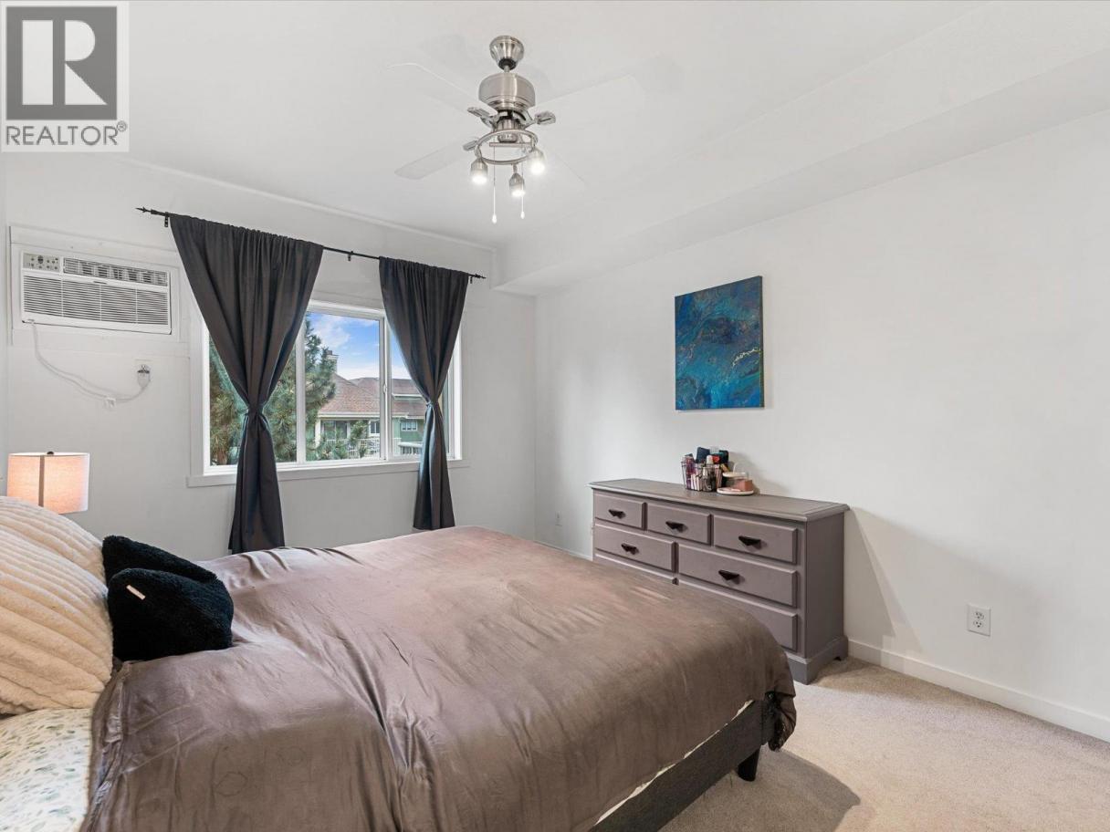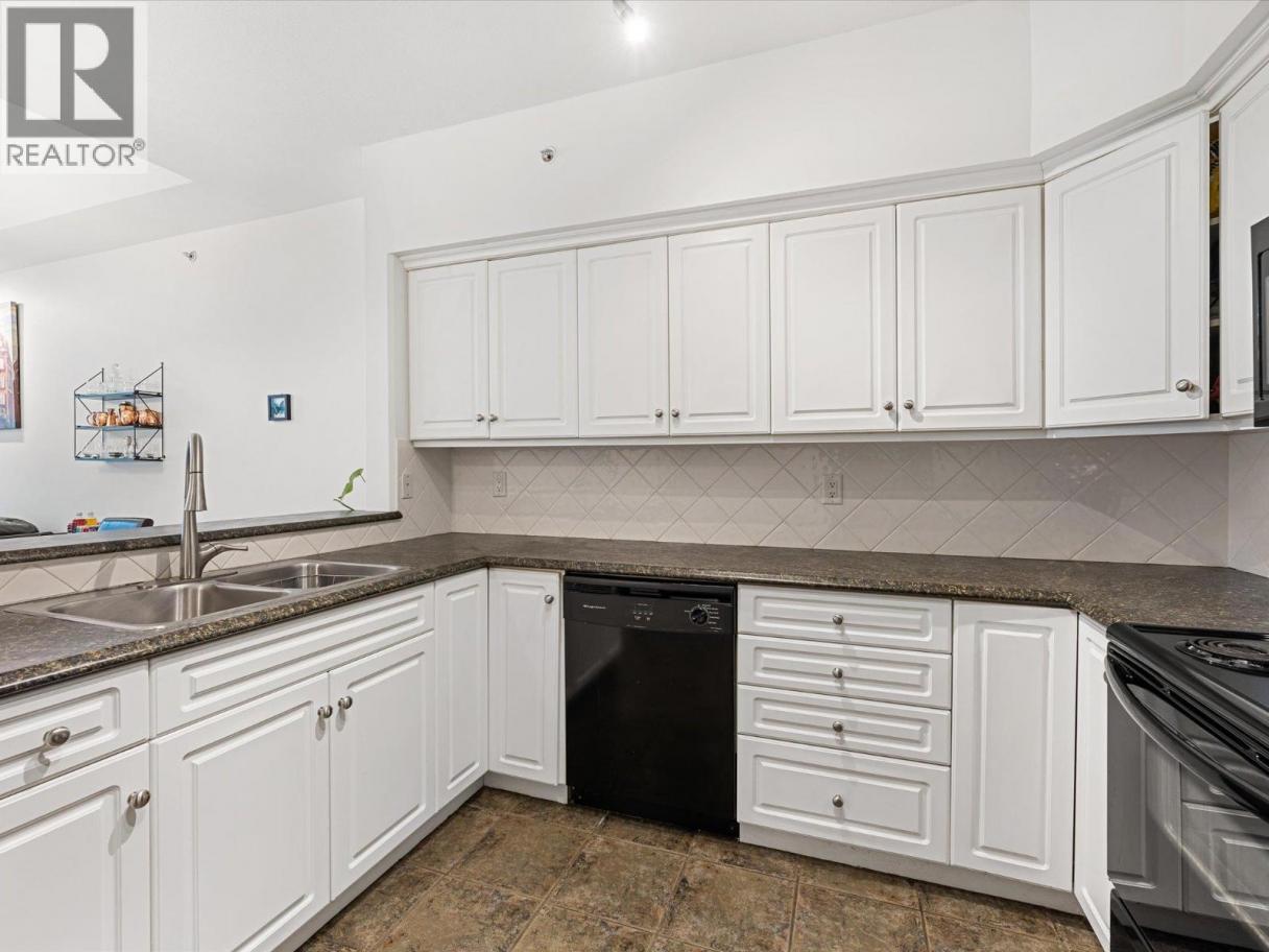 Perched on the top floor, this large condo delivers that bright, open feel you've been looking for. Freshly painted with vaulted ceilings and a great layout that connects kitchen, dining, and living space. The kitchen offers white cabinetry, a tiled backsplash, and a practical peninsula for casual meals. In the living room, a fireplace anchors the space, while large, southeast-facing windows pull in natural light. Step out to the covered balcony for fresh air and a peek at the surrounding views. It is an ideal spot for a BBQ, morning coffee, or winding down in the evening. Located in Kelowna’s sought-after Lower Mission, you’re minutes to parks, a short walk to beach access, plus your are close to H2O Adventure + Fitness Centre, and MNP Place for year-round recreation. One underground parking stall is included, with an abundance of additional outdoor parking available on a first come, first served basis. Bonus: the building offers a common room, a guest suite (approx. $50/night) for visiting friends and family. (id:6769)